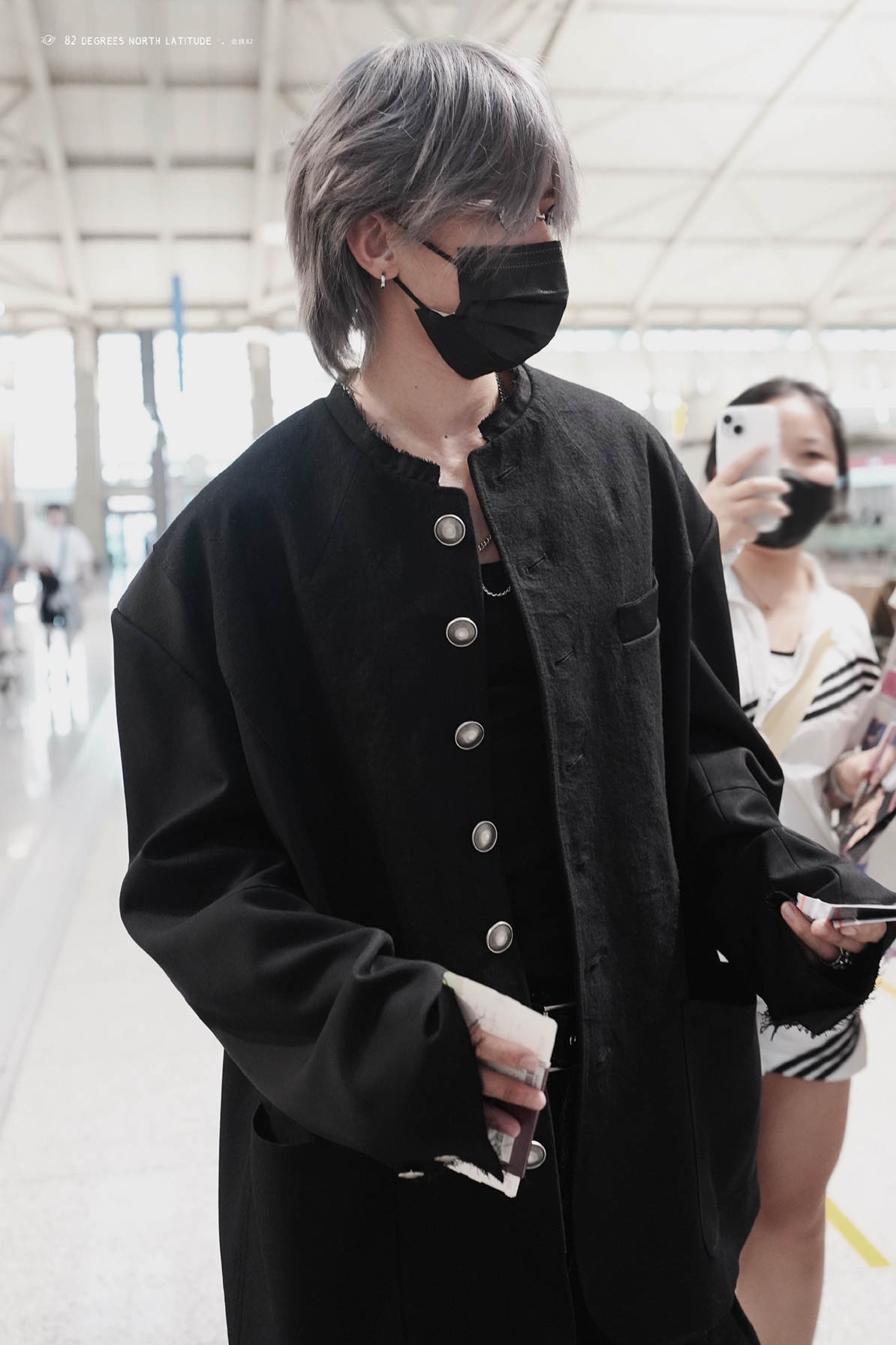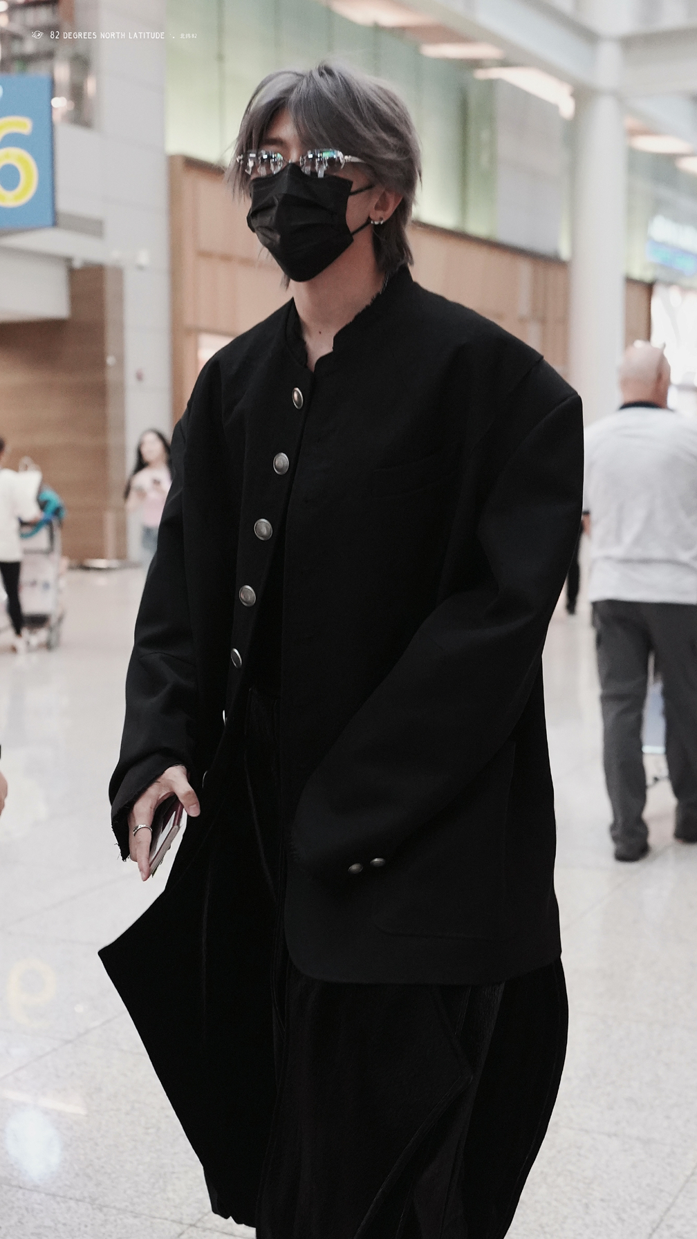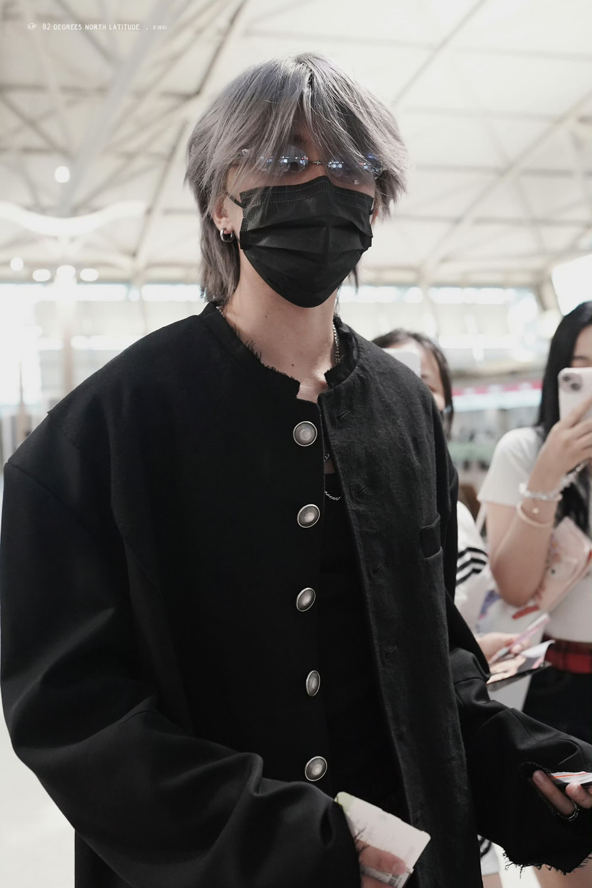 蔡徐坤更新了9月5日机场私服,灰色发型简直帅疯了,all black 穿搭的神回来了!简约帅气又高级,这样的坤很难不爱呀! CR:@北纬82|蔡徐坤 眼镜: GENTLE MONSTER 口罩:🍑