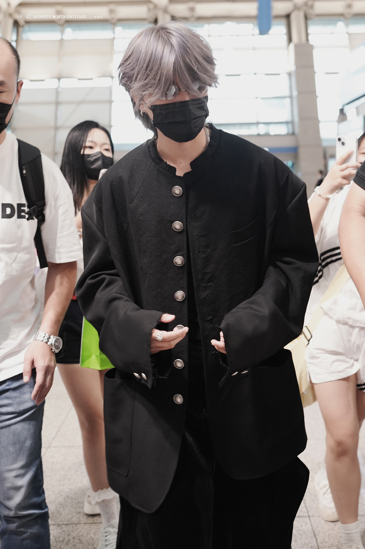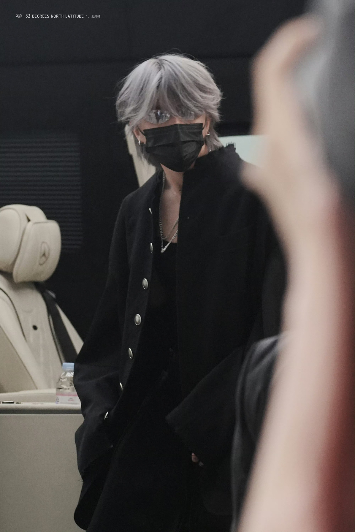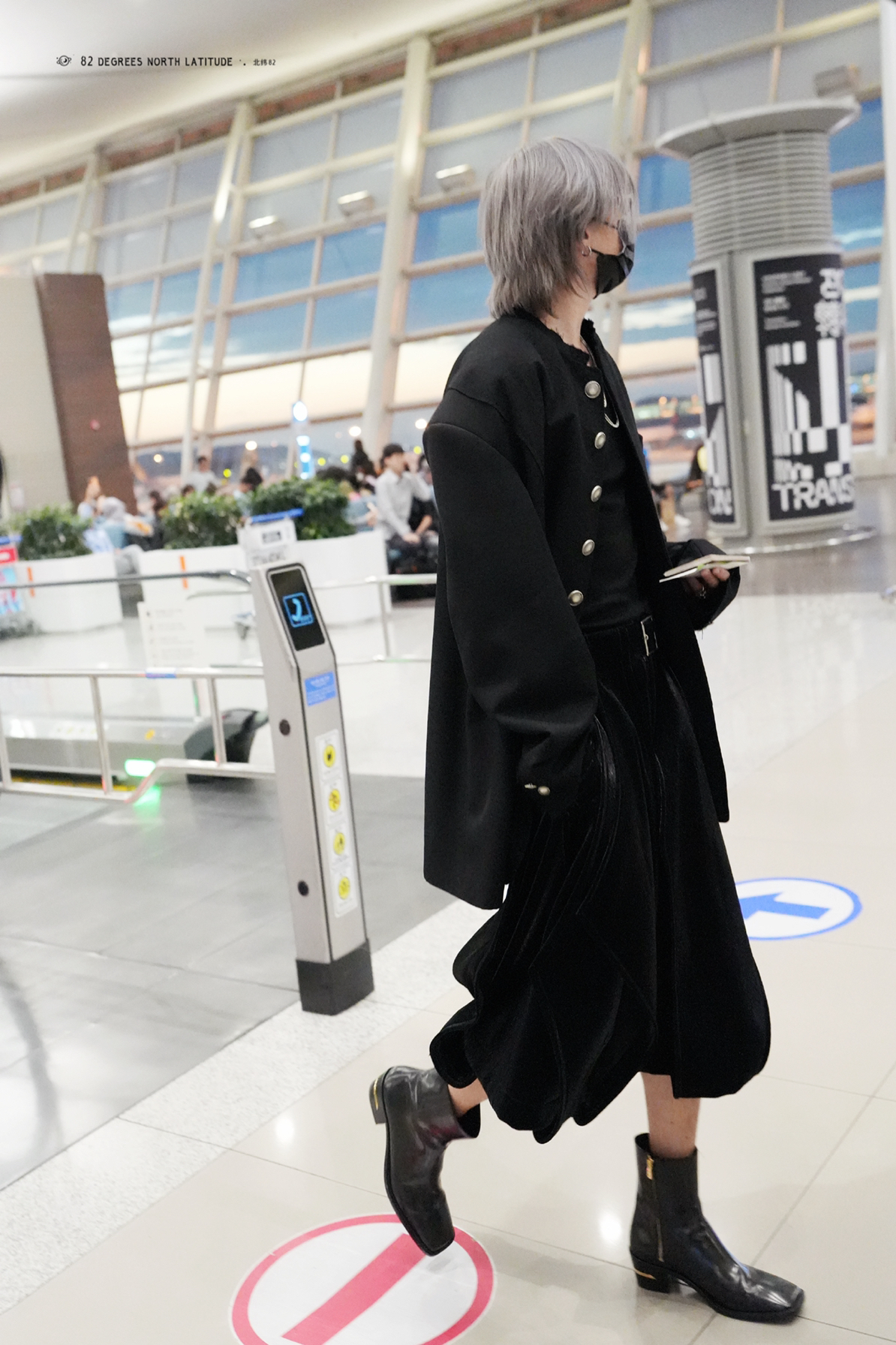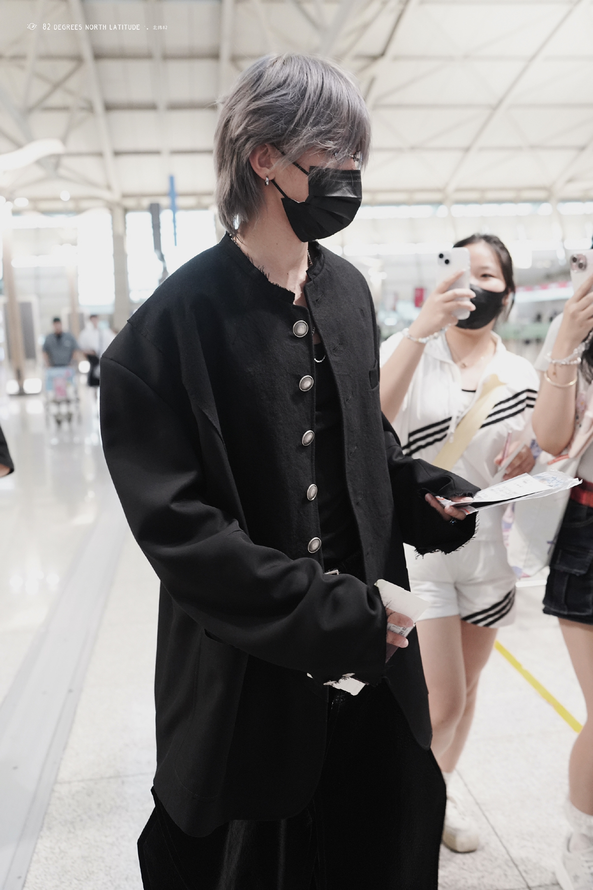 蔡徐坤更新了9月5日机场私服,灰色发型简直帅疯了,all black 穿搭的神回来了!简约帅气又高级,这样的坤很难不爱呀! CR:@北纬82|蔡徐坤 眼镜: GENTLE MONSTER 口罩:🍑