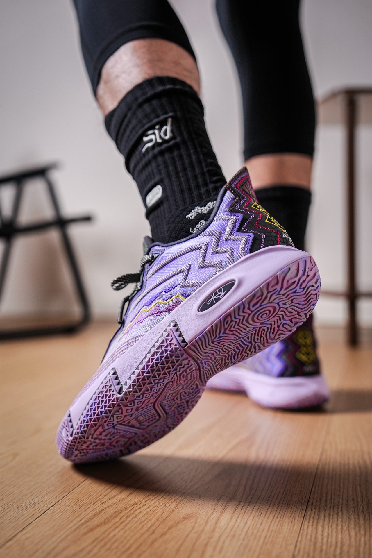 紫色的鞋身和些许黄色的细节,后跟一条首尾相连的蛇组成的8,鞋舌也能看到蛇纹纹理。大家都还记着他 对吧。能在欧文的球鞋上继续看到曼巴精神的延续这真是太好了。 #球鞋真心话 #暑假球鞋穿哪双 #新鞋零时差 #球鞋坦白局 #破茧新物种