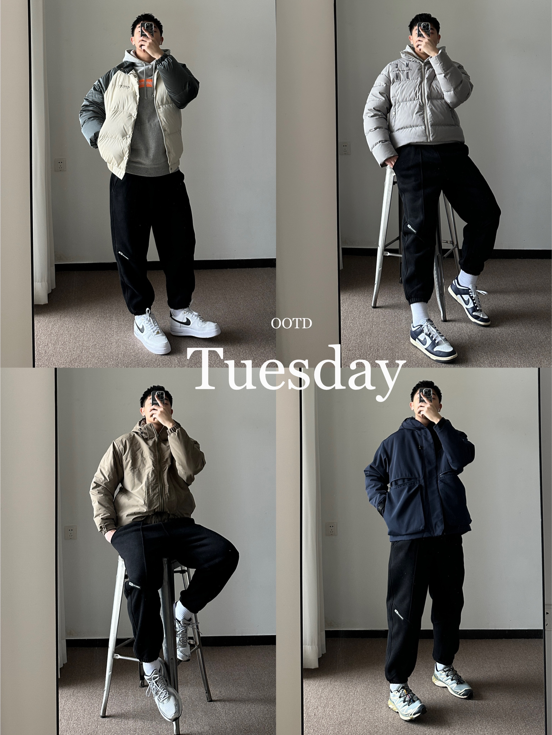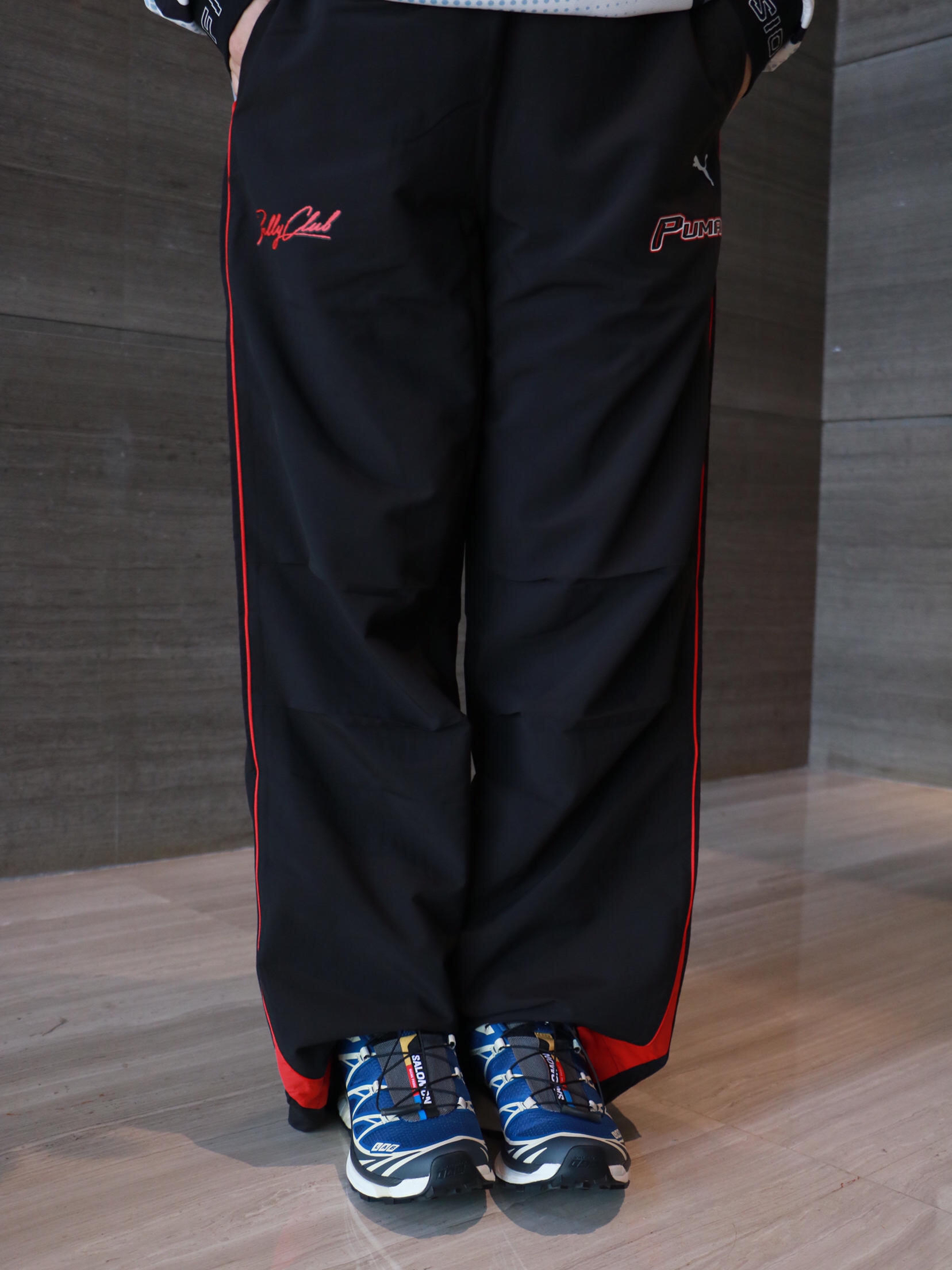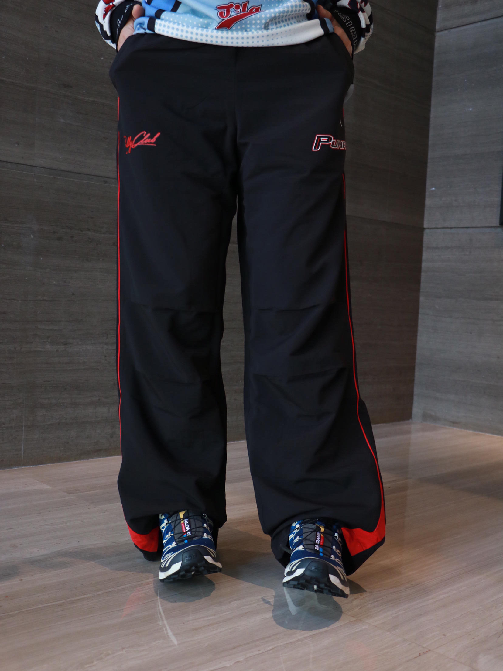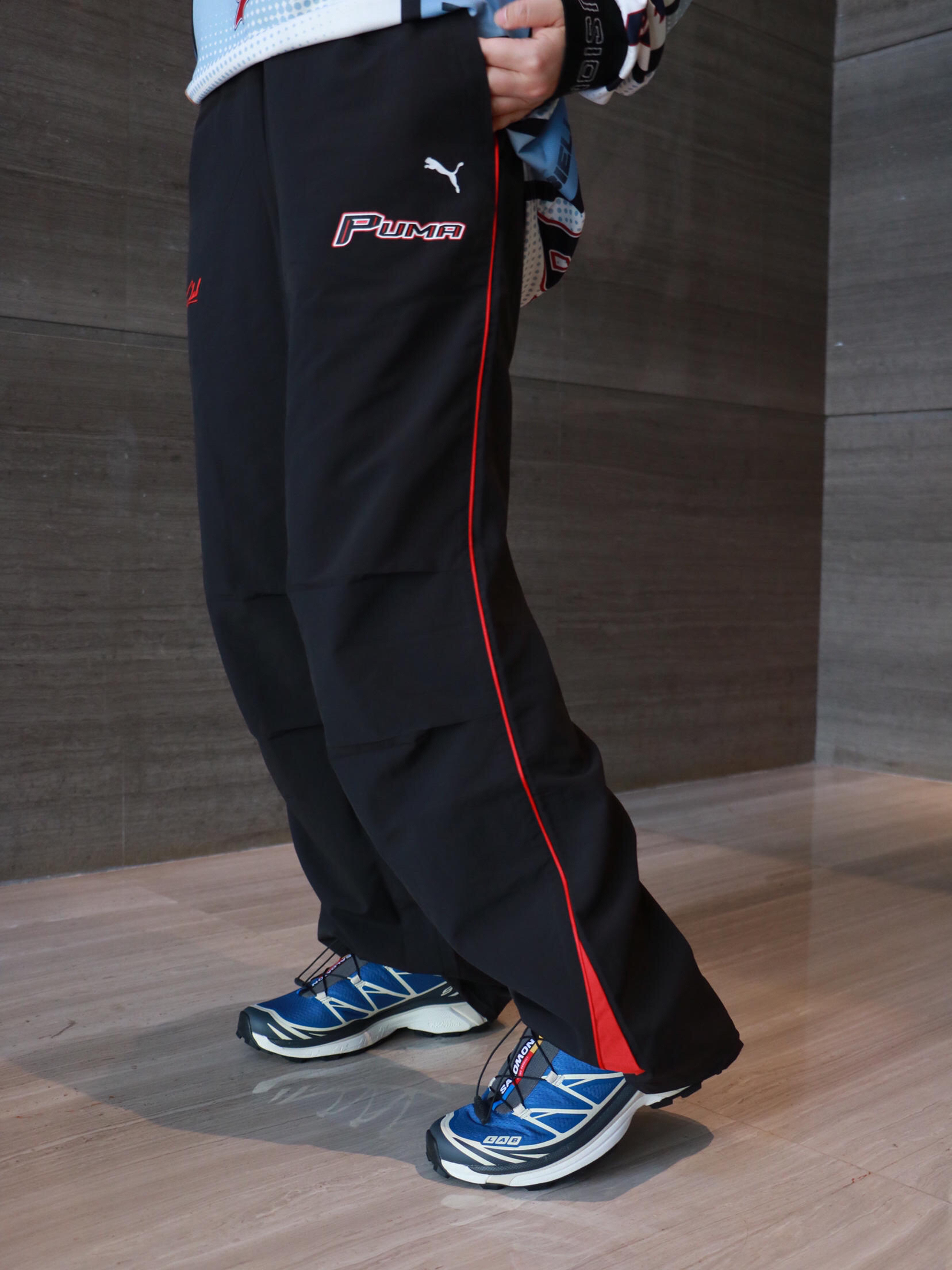 上衣:FILA 足球风休闲长袖T恤 上衣:puma 休闲运动长裤 鞋子:salomon xt6