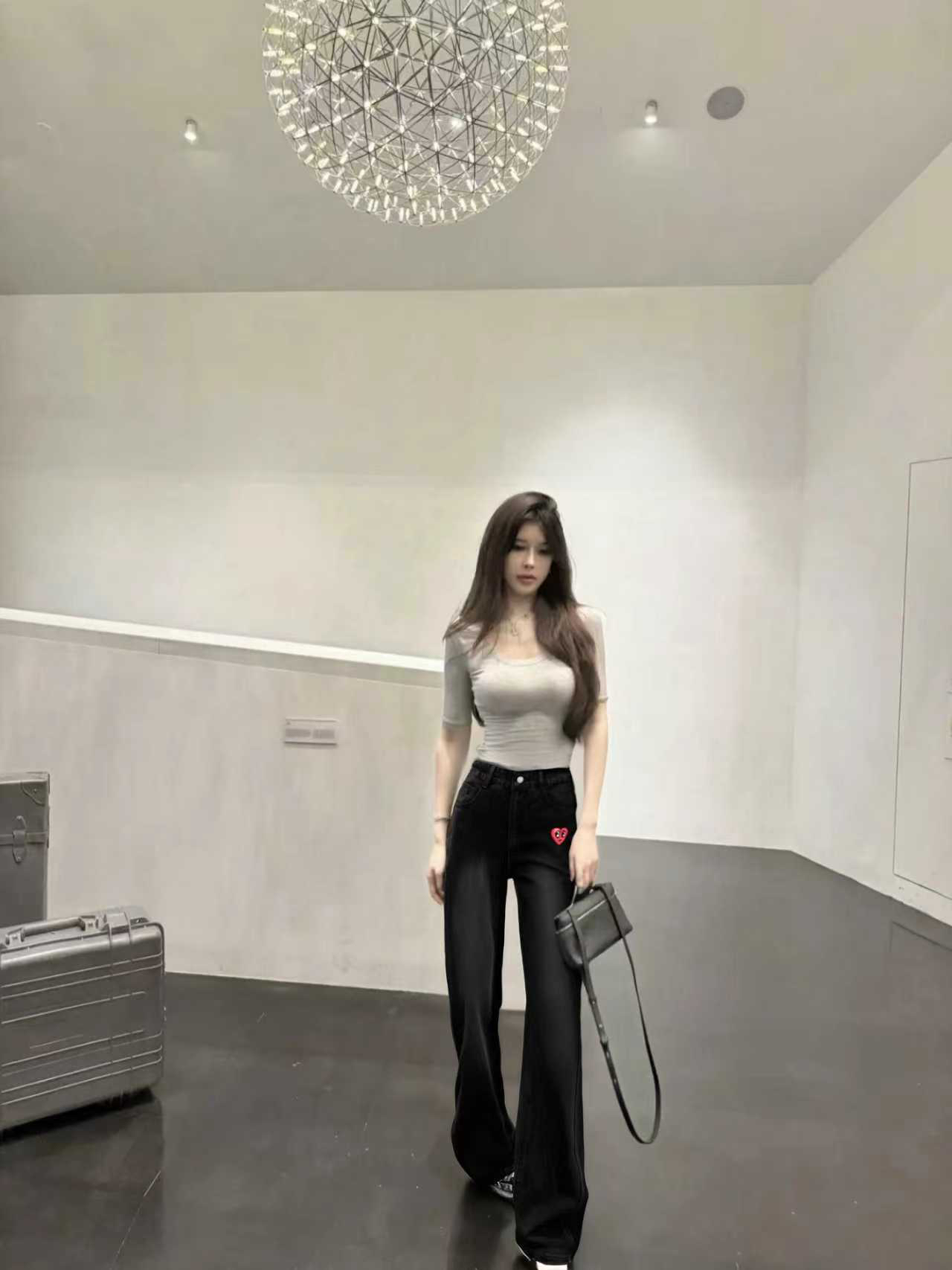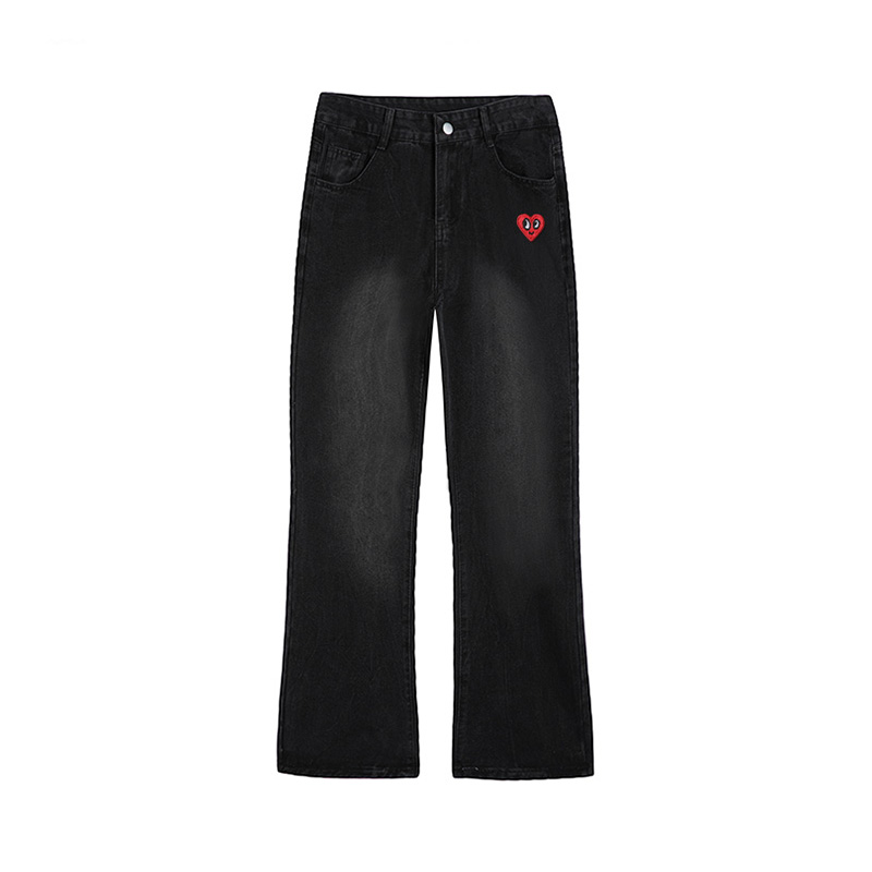 查尔斯桃心美式高街微喇牛仔裤,连小细节都拉满~ 磨白做旧超自然~视觉效果超级显瘦的~