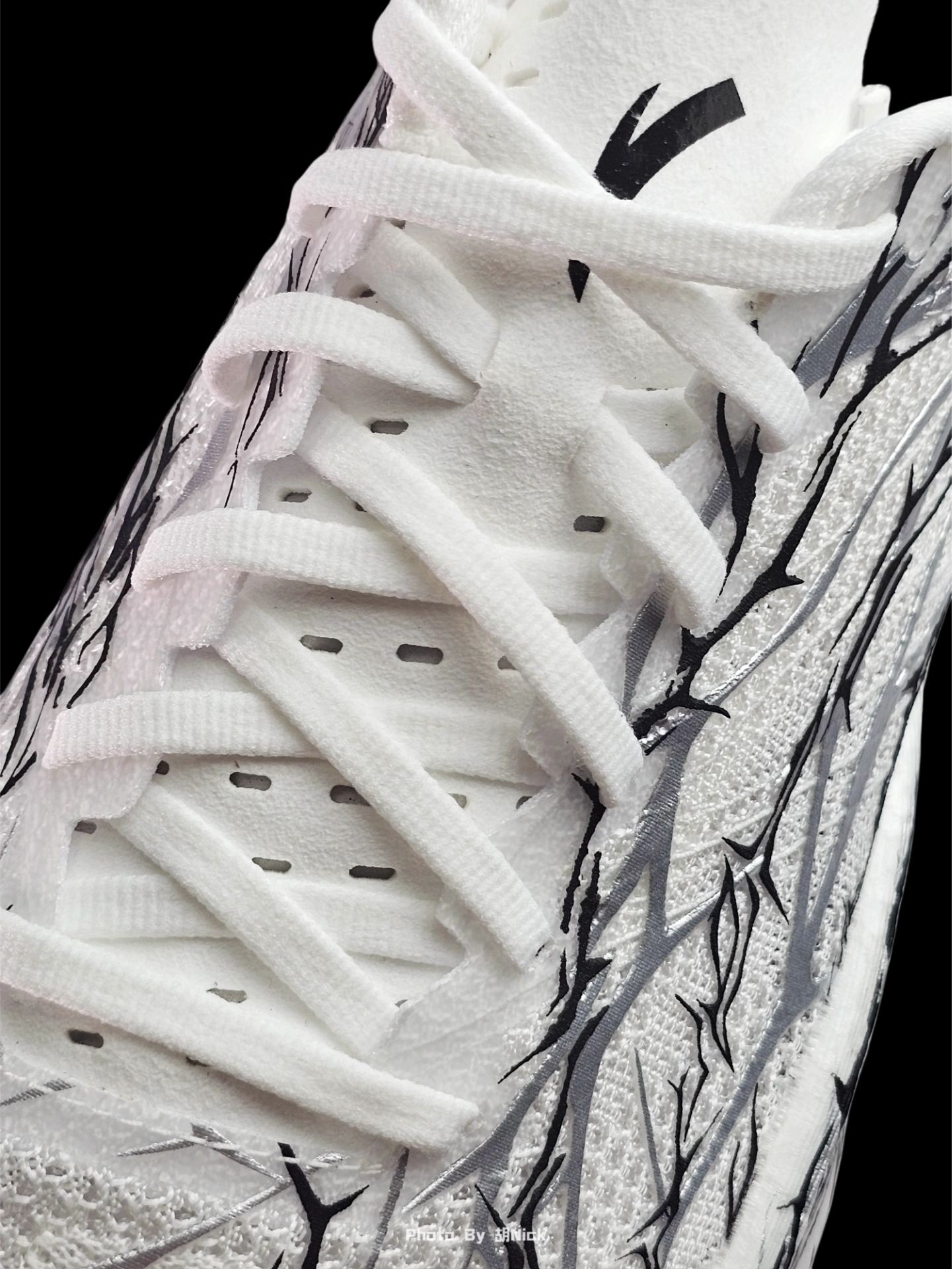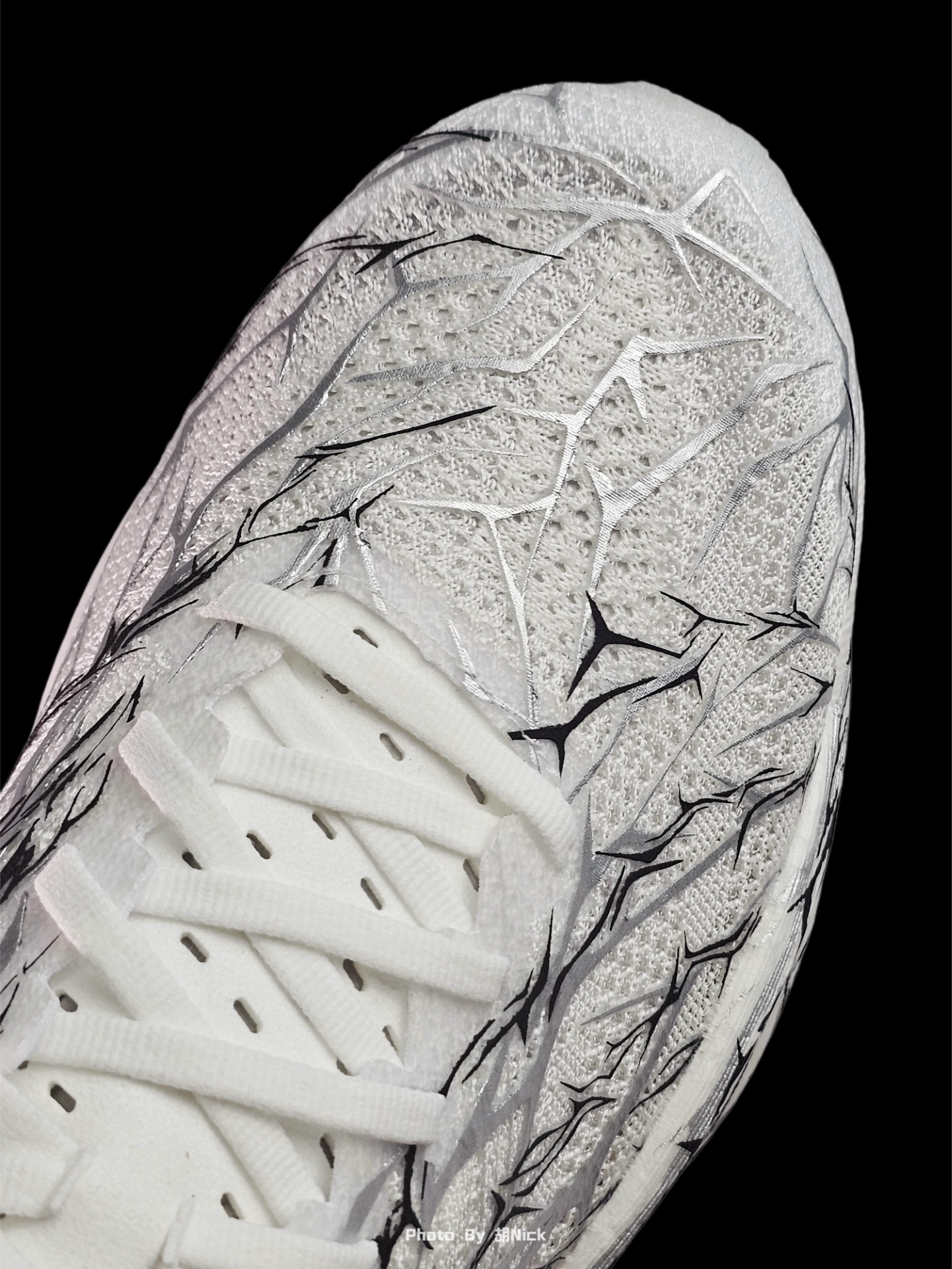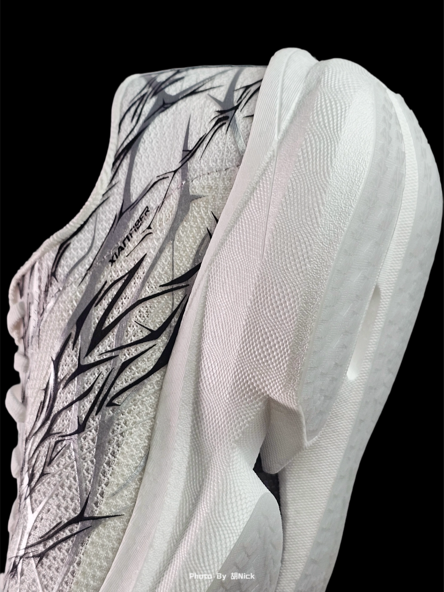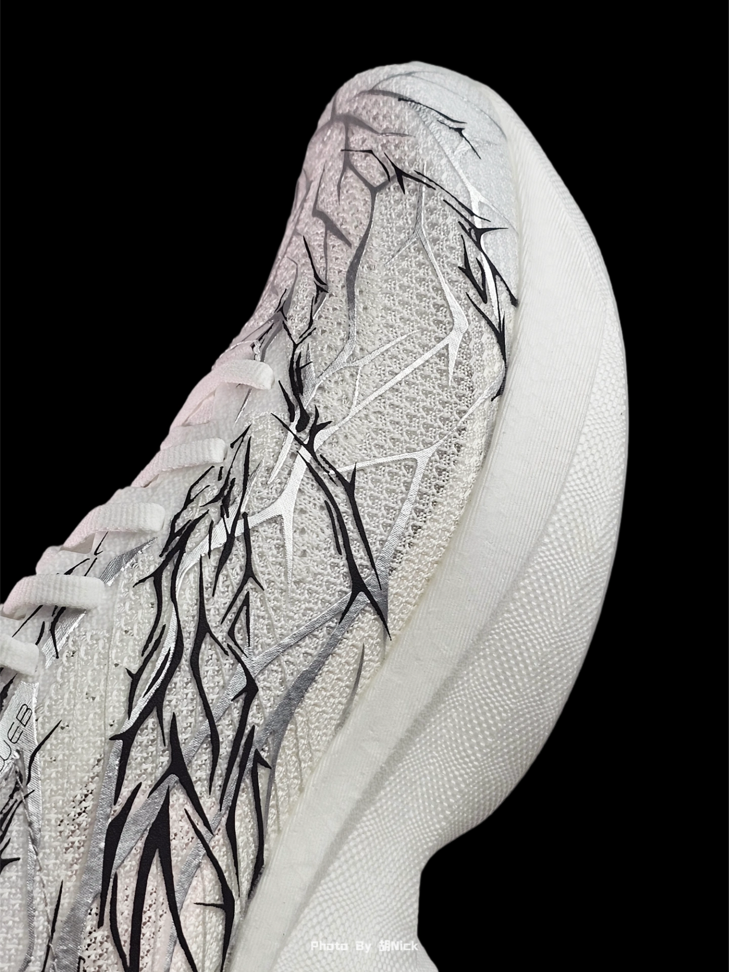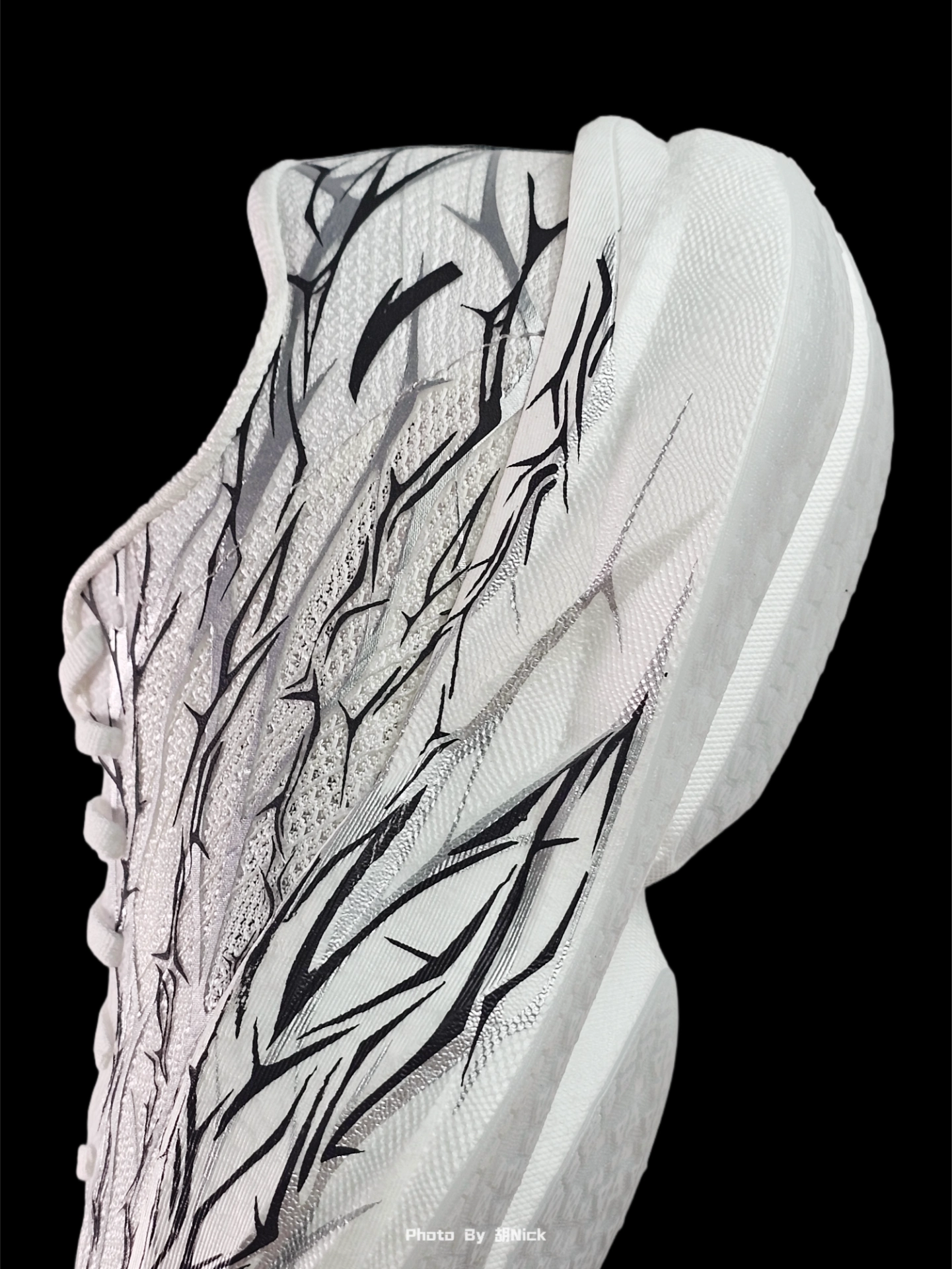 原本以为心跳配色已经是C202 6.0的颜值巅峰了,没想到设计师还在发力!这双白荆棘配色居然更夸张! 布满鞋身的黑银色荆棘线条在中底位置融入着踏子的logo,要说心跳配色是奔跑时跳动的脉搏,那荆棘配色就是面对挑战坚韧不拔的运动精神! 作为一双竞速和马拉松实战跑鞋荆棘之路的理念也使得这双鞋更具“韧性”,双层氮科技搭配碳板的“三明治 ”结构的中底,从颜值到性能都让我很难不爱! #新鞋零时差 #安踏...