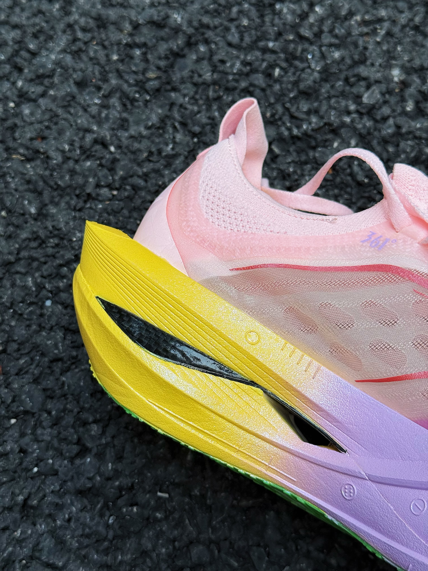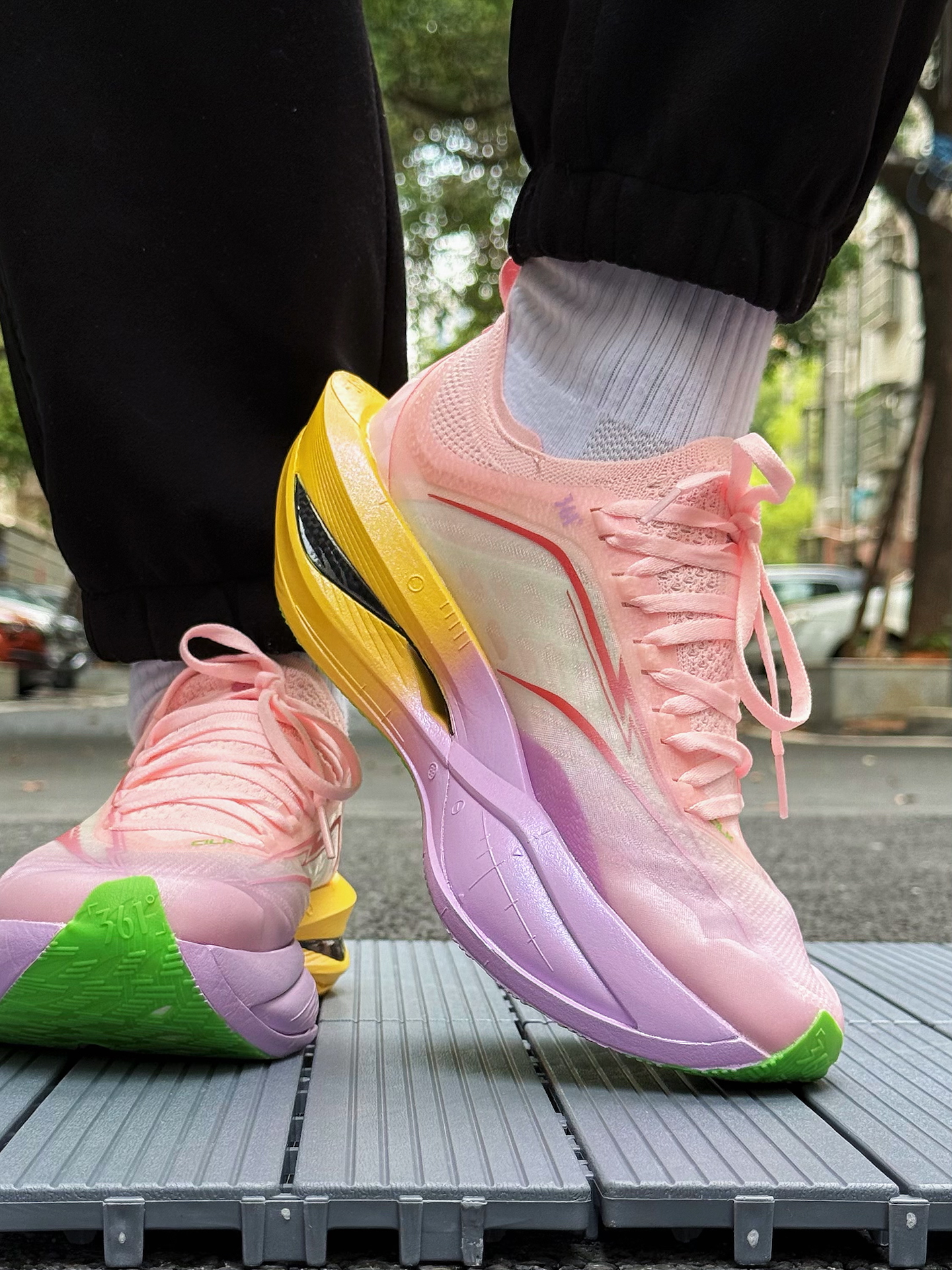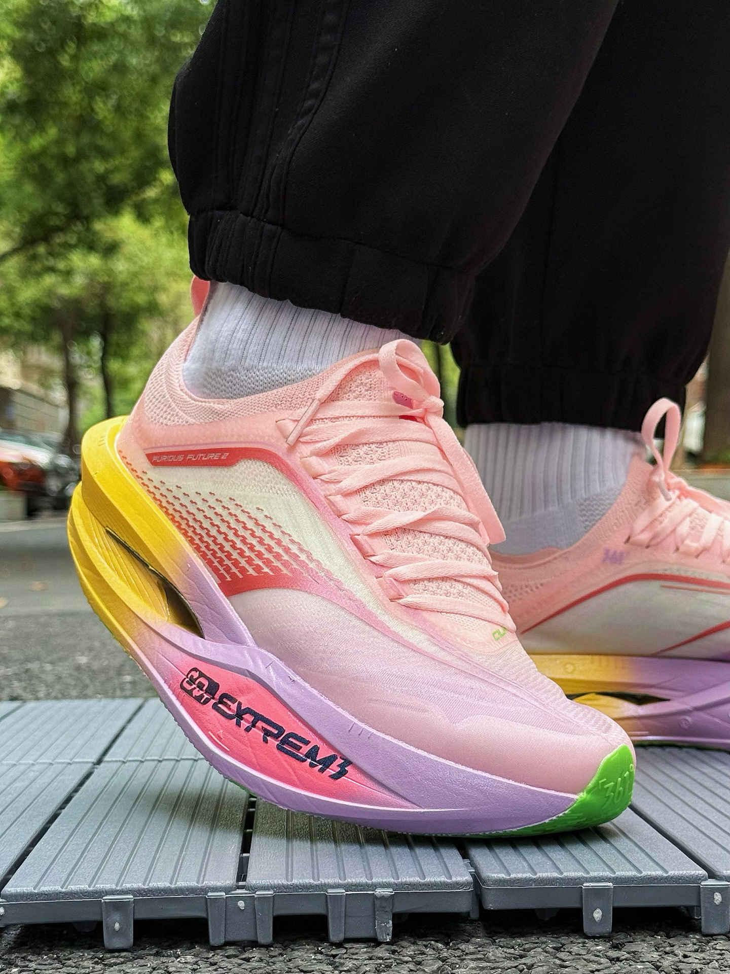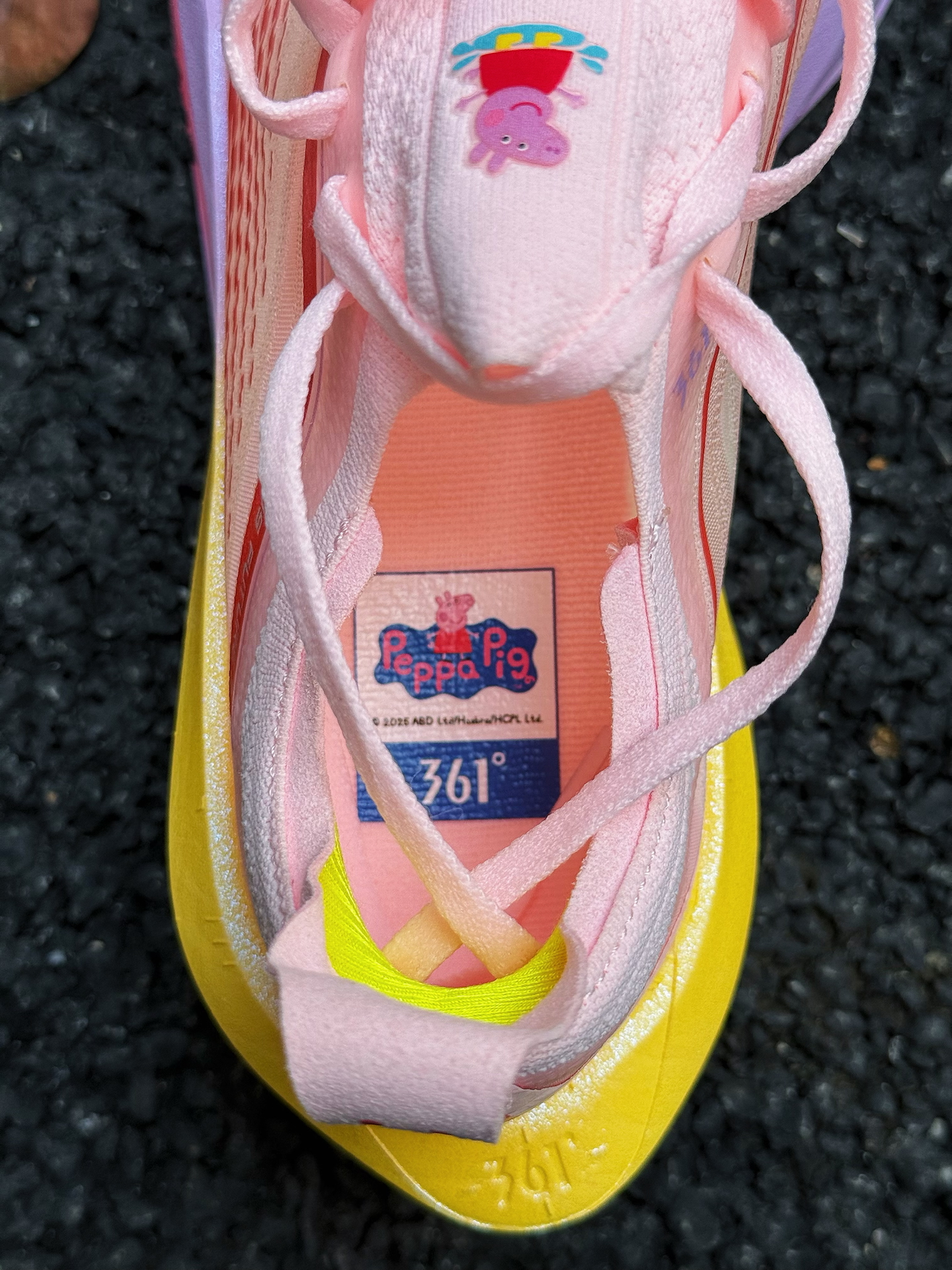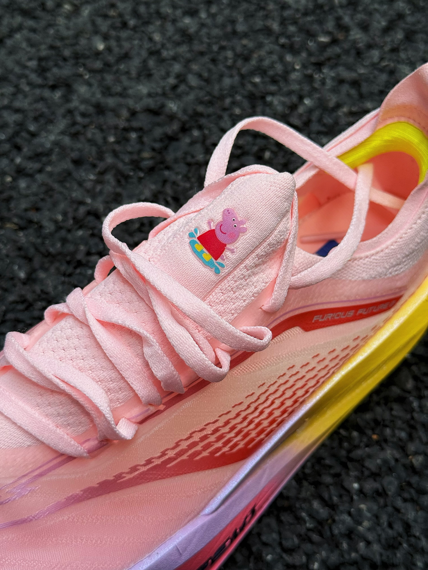 361度飞飚Future 2.0小猪佩奇跑鞋体验分享 被这双鞋的颜值吸引,小猪佩奇配色太可爱了,粉色鞋面,鞋舌上佩奇图案很吸睛,完全长在我的审美点上。 上脚感觉轻盈,跑步时不闷脚 ,一体式袜套设计包裹性强,中底采用双层材料,按压软弹感明显。慢跑时,落地反馈快,前掌蹬地有推进力,适合追求速度的跑者。RPU大底纹路清晰,耐磨防滑效果不错 不过,这双鞋也有缺点,内侧支撑偏弱,窄脚穿足弓处有点空,极...