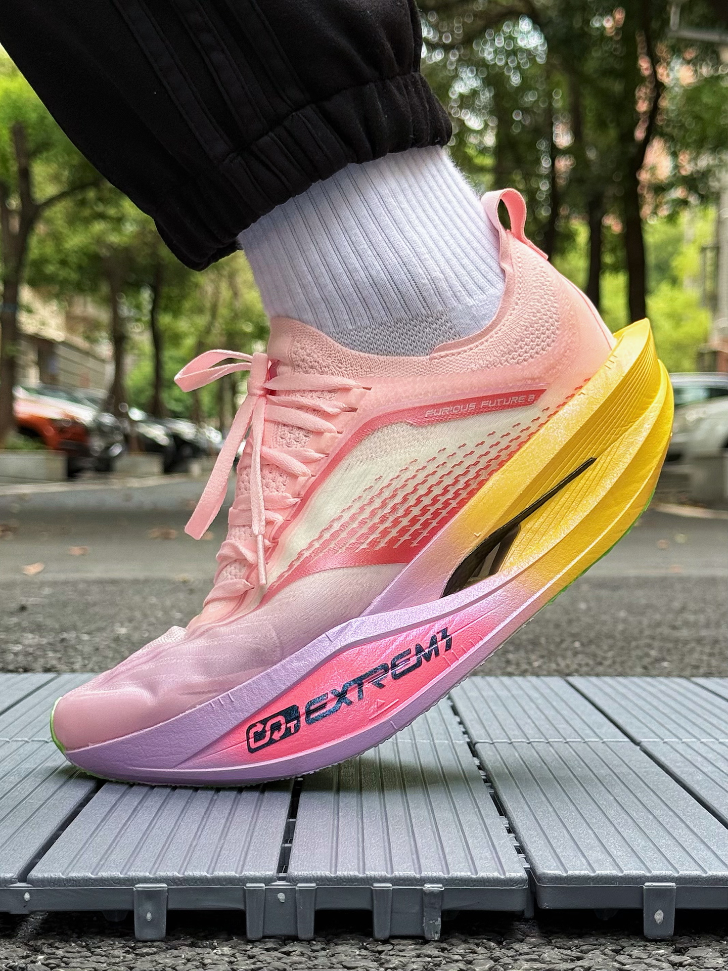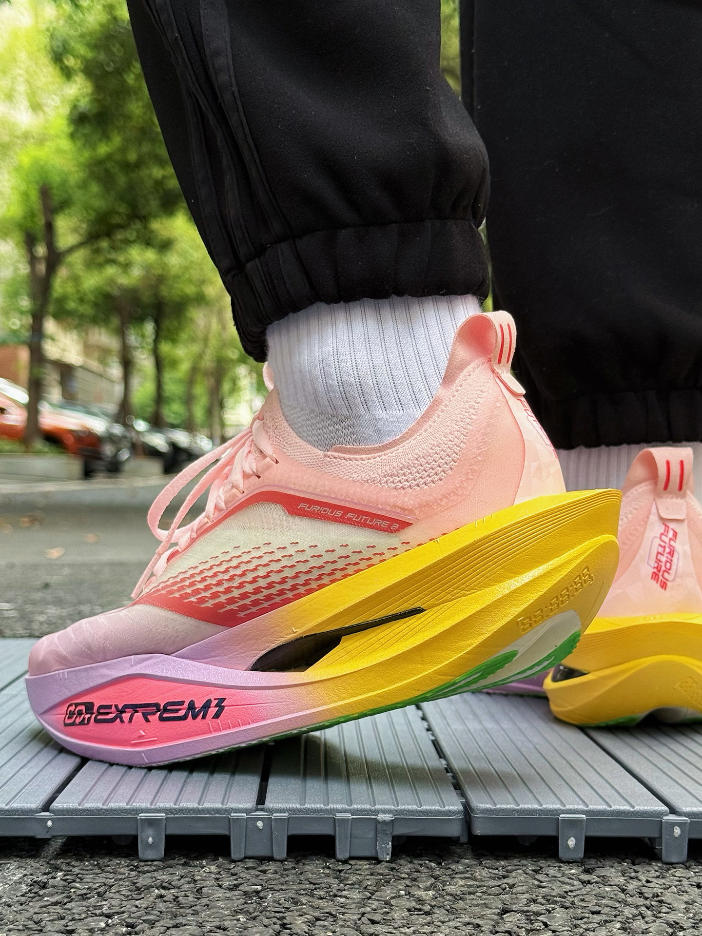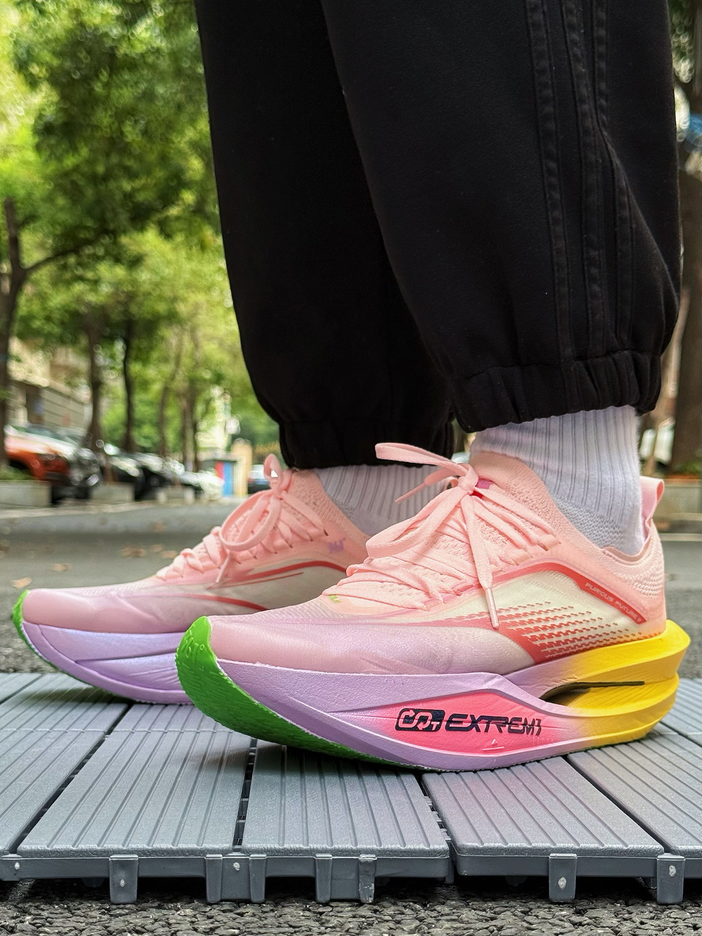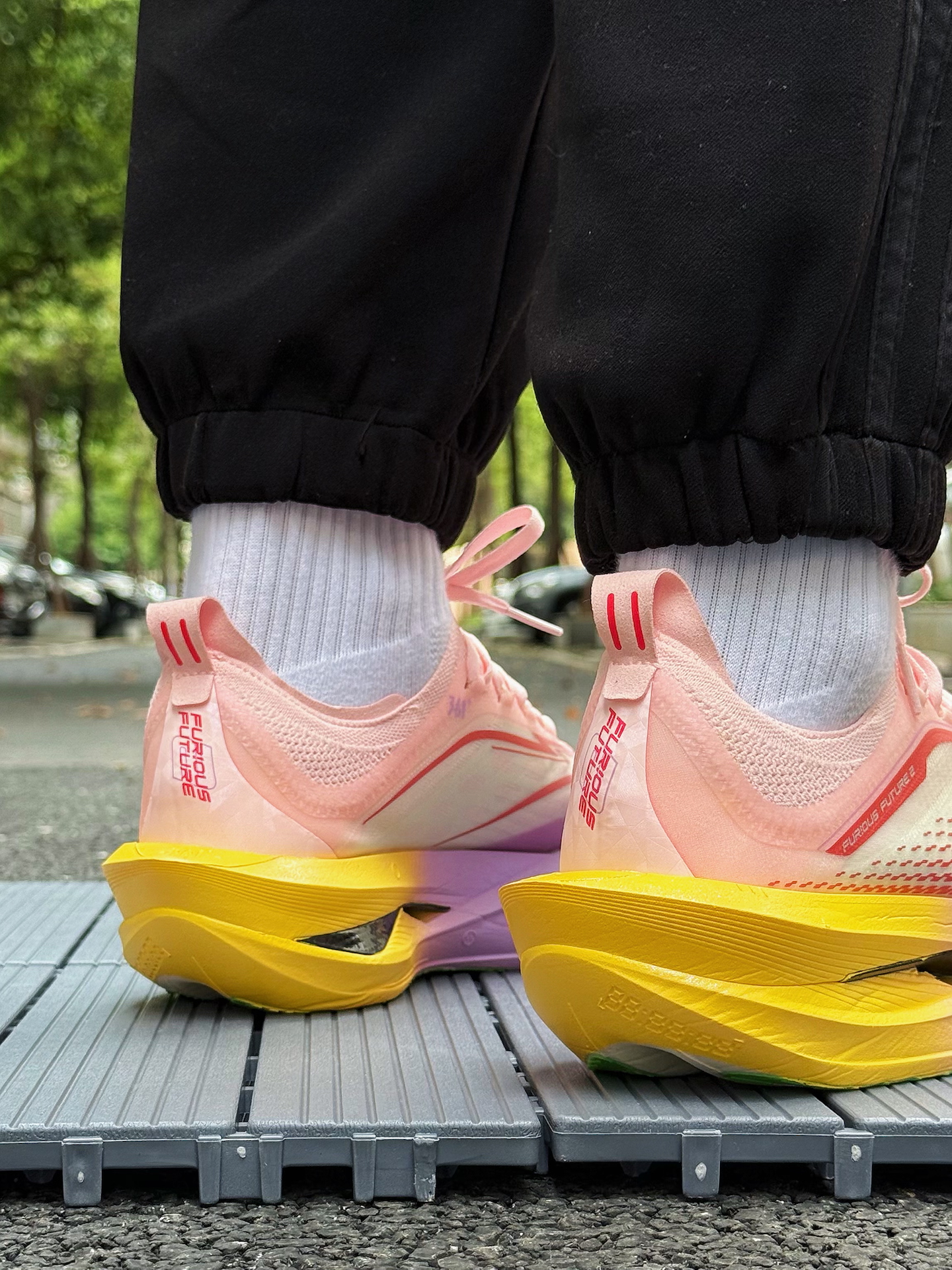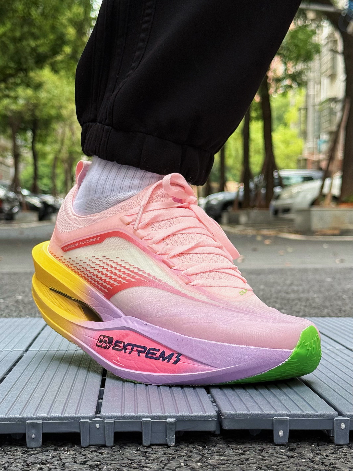 361度飞飚Future 2.0小猪佩奇跑鞋体验分享 被这双鞋的颜值吸引,小猪佩奇配色太可爱了,粉色鞋面,鞋舌上佩奇图案很吸睛,完全长在我的审美点上。 上脚感觉轻盈,跑步时不闷脚 ,一体式袜套设计包裹性强,中底采用双层材料,按压软弹感明显。慢跑时,落地反馈快,前掌蹬地有推进力,适合追求速度的跑者。RPU大底纹路清晰,耐磨防滑效果不错 不过,这双鞋也有缺点,内侧支撑偏弱,窄脚穿足弓处有点空,极...