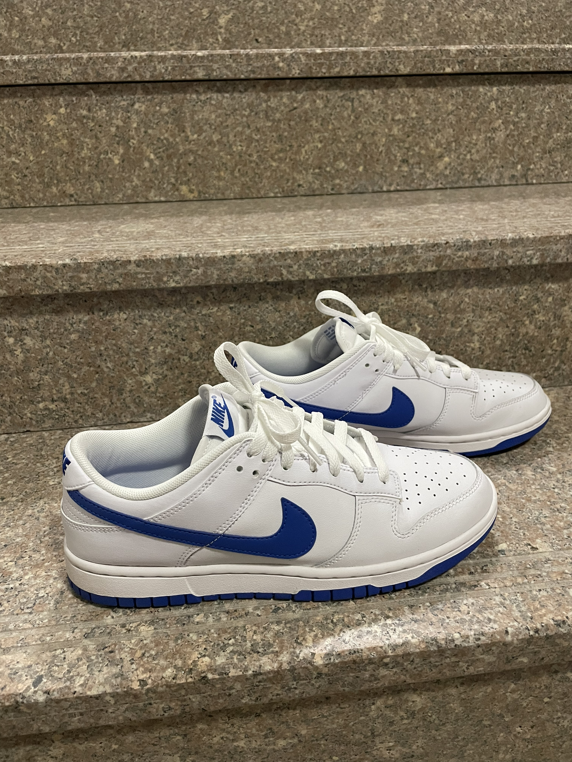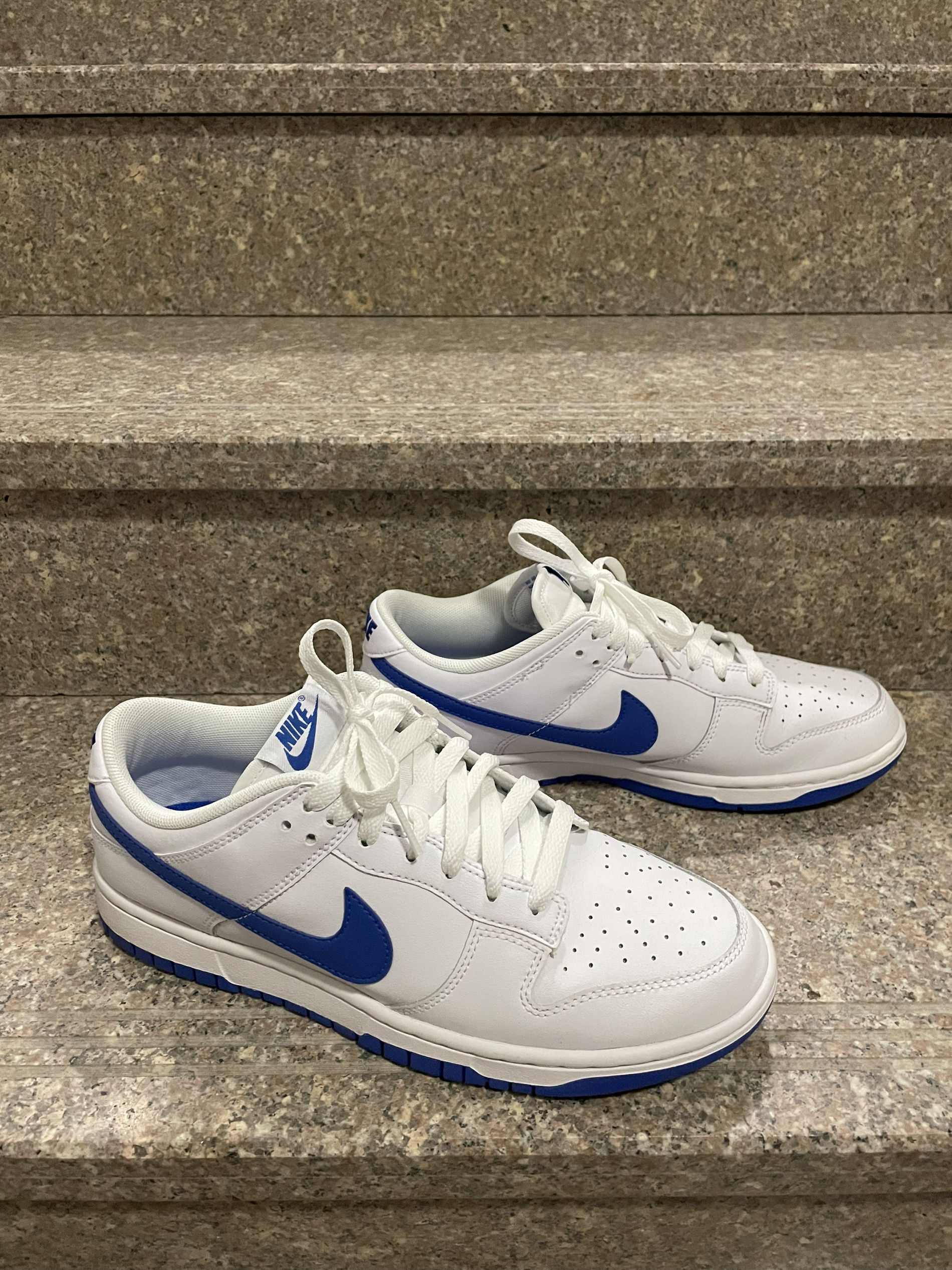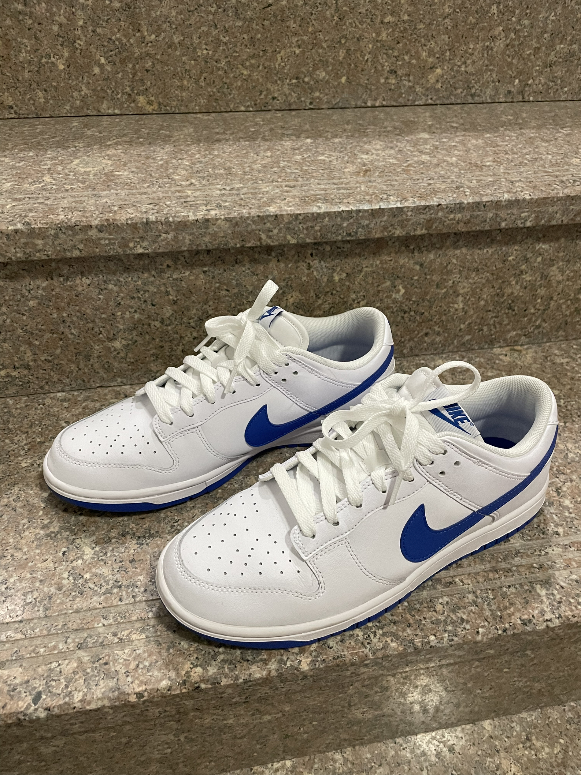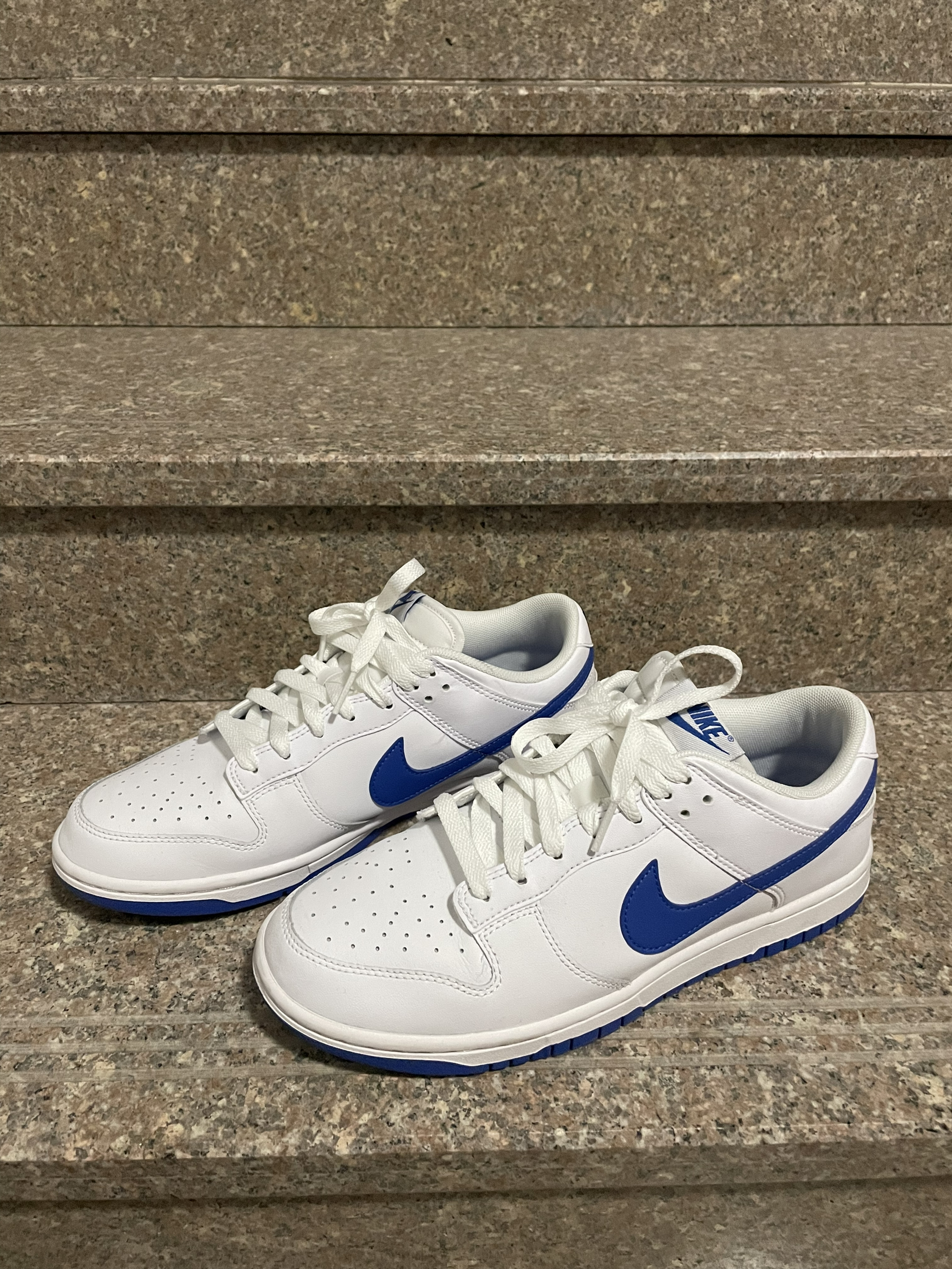 今天分享一双蓝白Dunk!! 鞋子以白色外表搭配蓝色nike标志 鞋后跟则是经典的蓝色nike点缀 整体设计清新时尚 颜值不用多说!高 鞋子脚感还是dunk通病 刚开始硬后面就软了 包裹性可以 透气性方面也做的不错 但是白色外表不好清新 不耐脏 皮革材质质感比较好 摸起来也舒服 就是会出现折痕或者破皮现象 鞋子搭配起来还是比较轻松的 特别是搭白色裤子 真的很好看 如果是你们会怎么选择呢?喜欢的朋友...