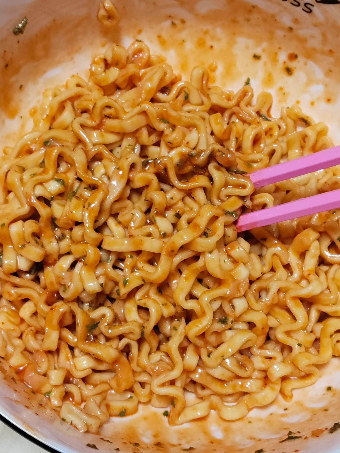 开水泡煮8分钟,拌匀瞬间奶油香裹着辣意直窜!面条挂满奶乎乎酱汁,辣得够劲还带甜,完全不腻喉。 不用等外卖,熬夜追剧、赶作业时来一碗,热乎又解馋。吃完连碗底都想刮干净,回购N次,每次吃都幸福感爆棚!