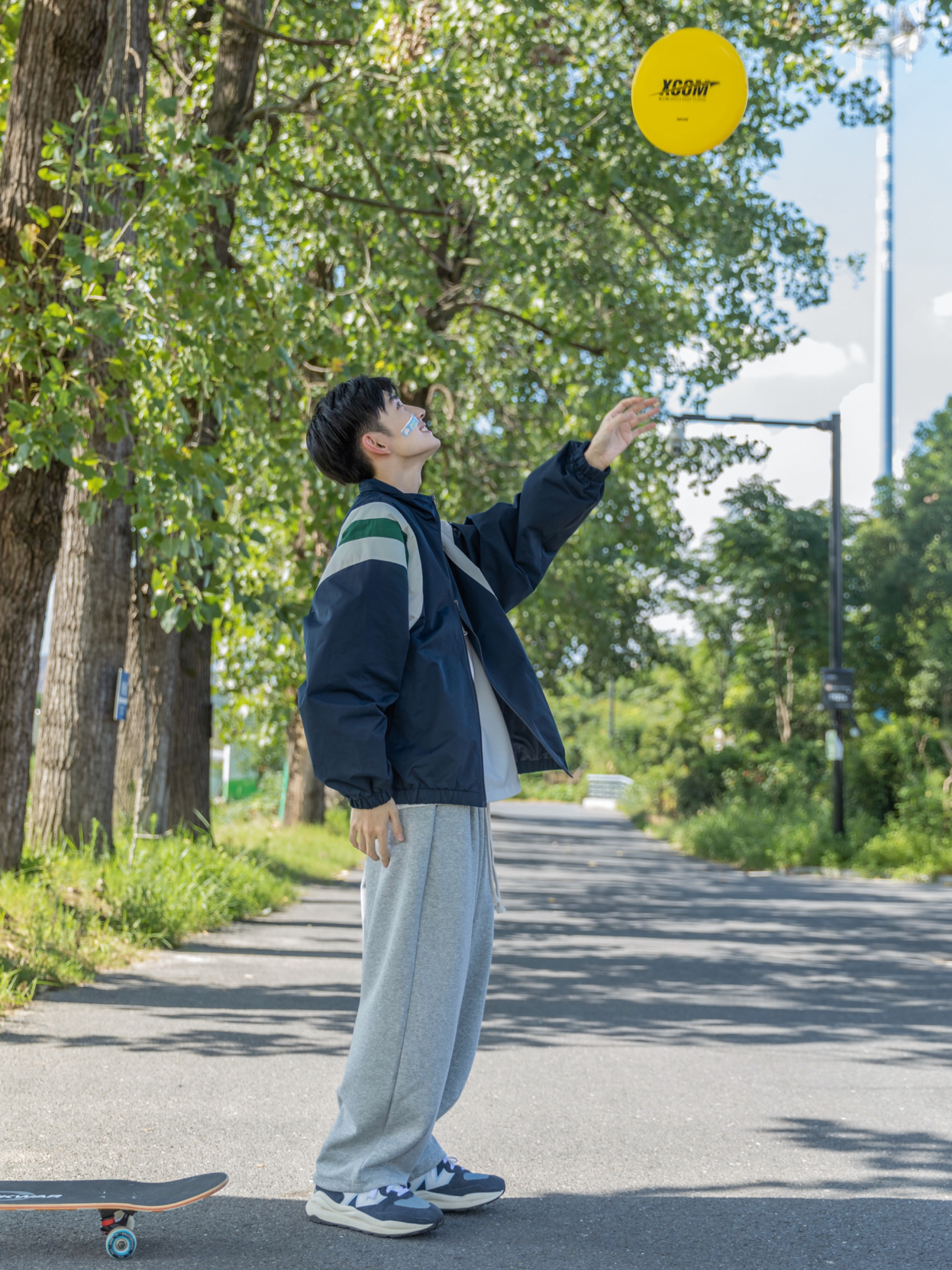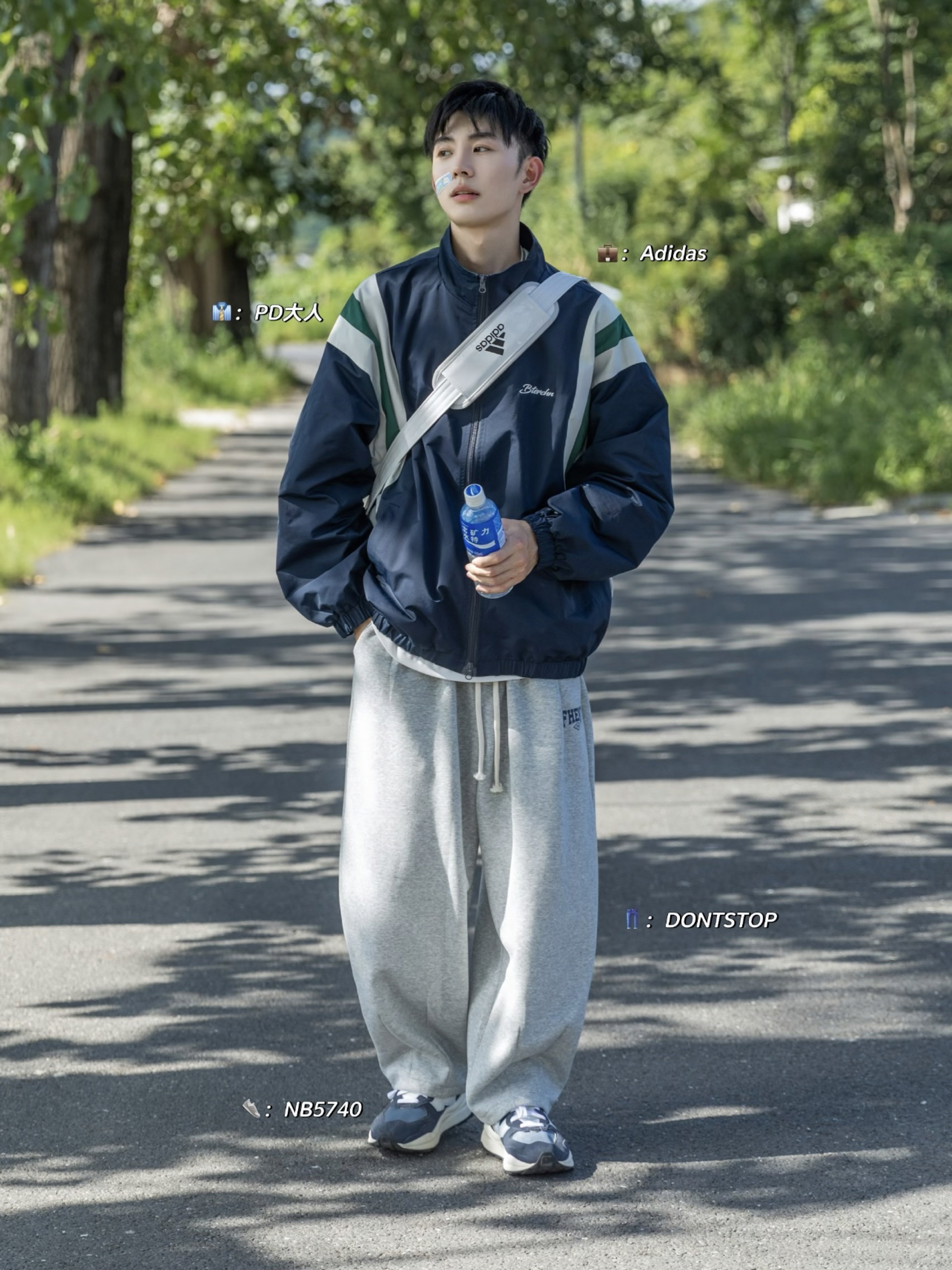 真的越老越喜欢户外运动风!立领冲锋衣搭配灰色运动裤!一整个就是活力满满的青春少年感!真的好适合男生初秋穿搭! — 简约干净的色彩搭配才是长期主义的重点!干干净净!清清爽爽!就真的好适合男孩子日常穿搭!好看的!