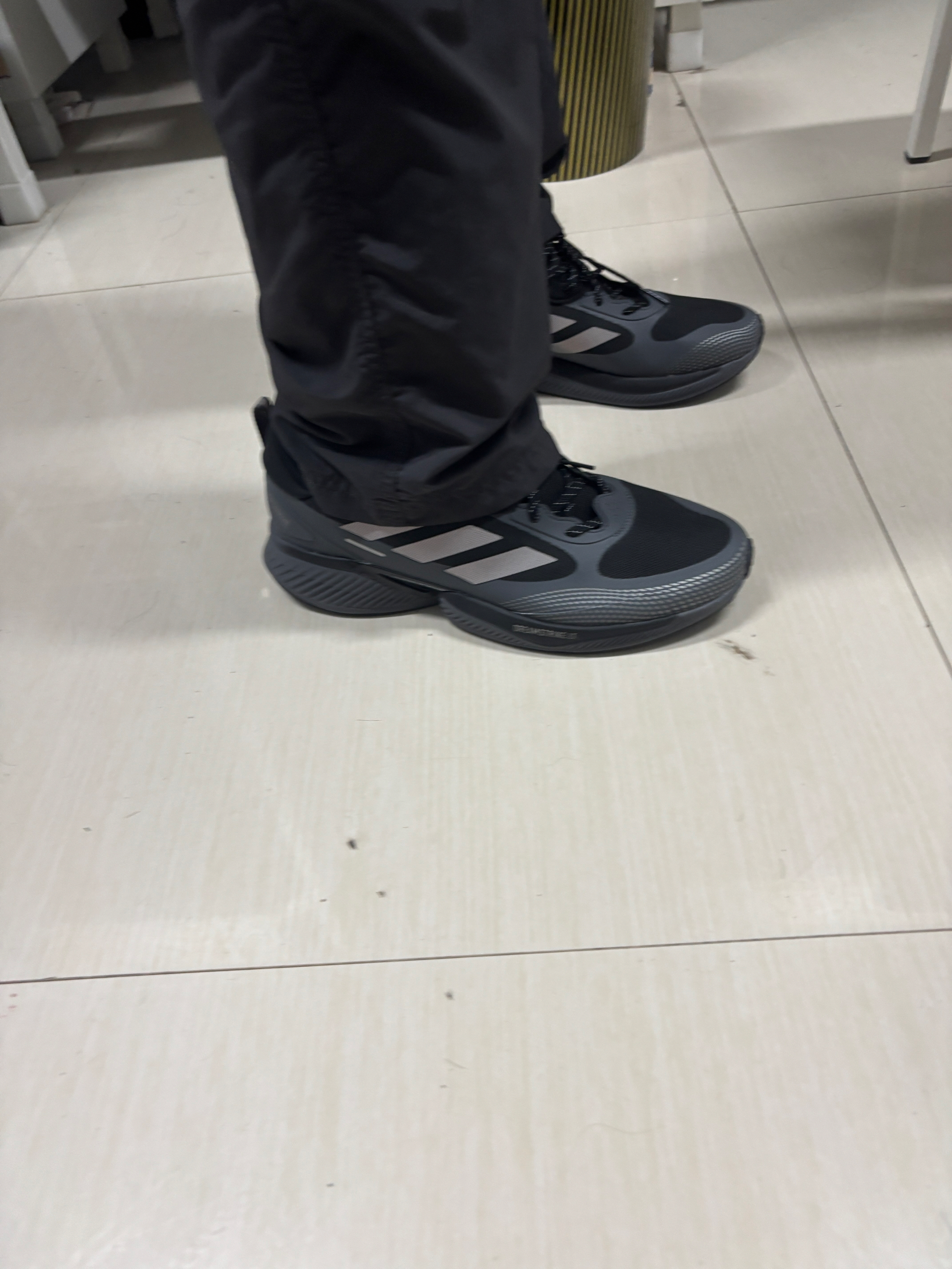 没想到被阿迪这双纯黑运动鞋种草了 纯黑的配色在哪都不会出错 记得买大半码 因为鞋头空间有点窄 推荐👍👍👍