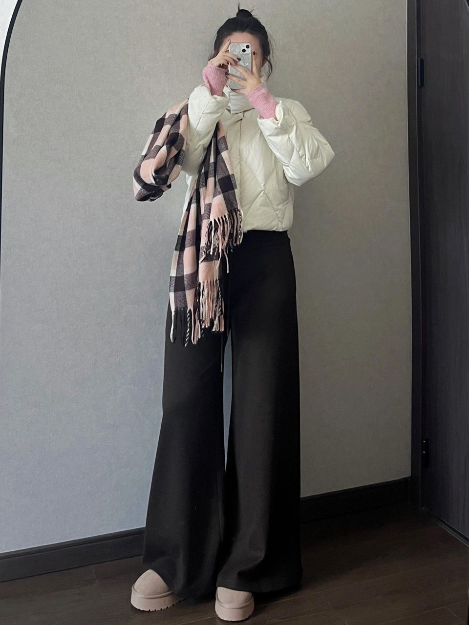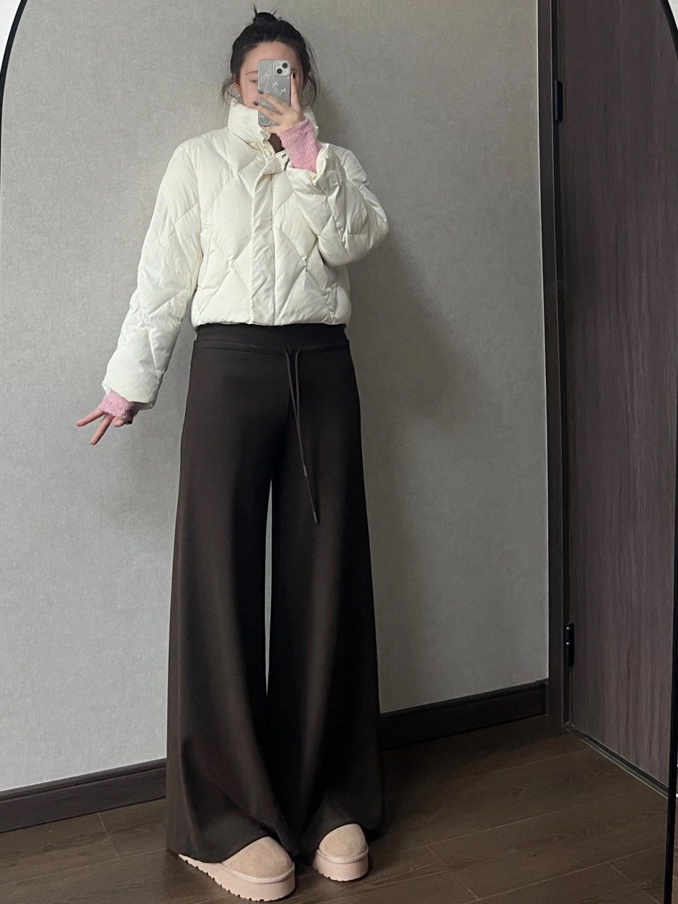 上短下长穿衣法则,超显瘦! 很喜欢的裤子呀~预计还会发很多次,我又囤了条灰色同款