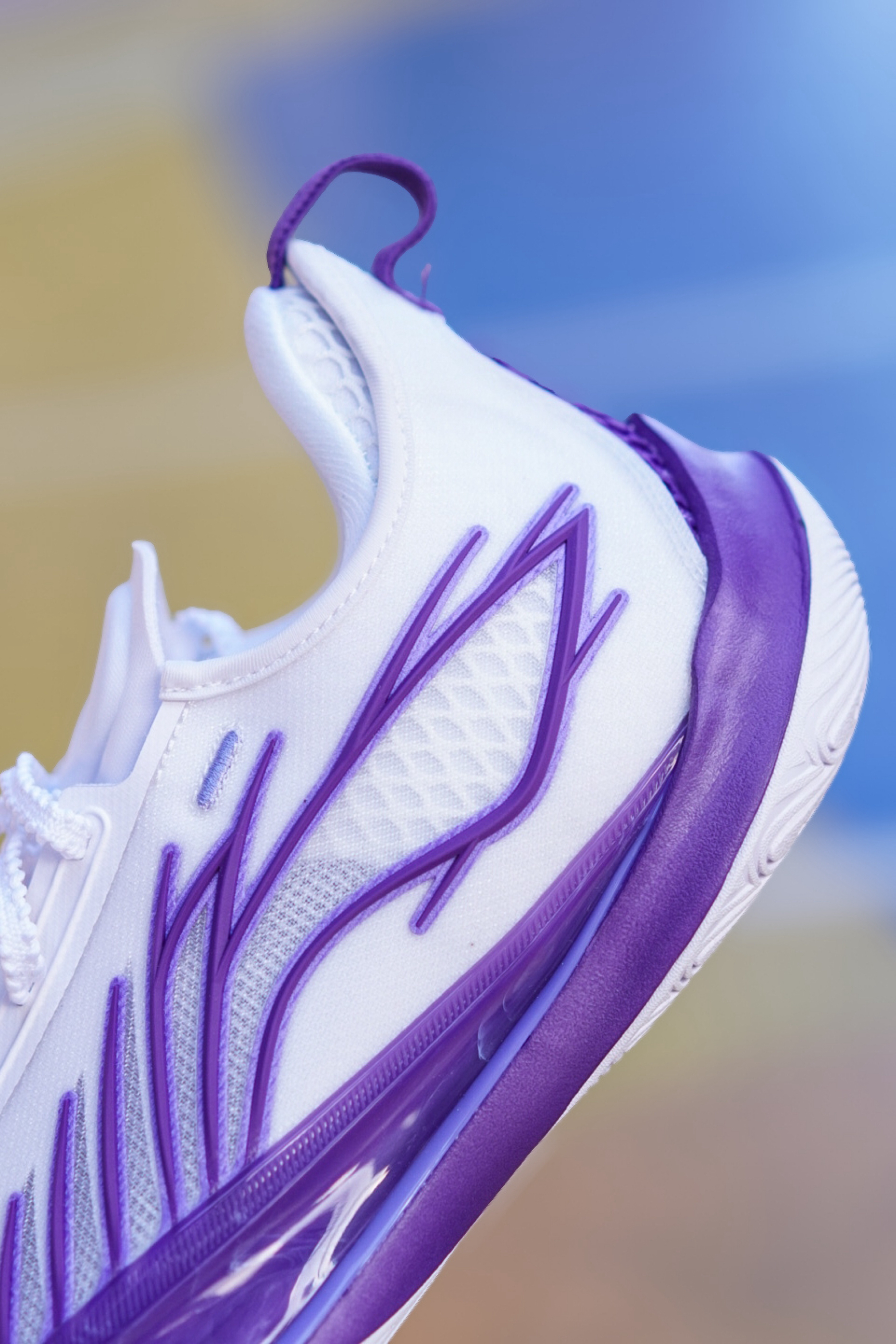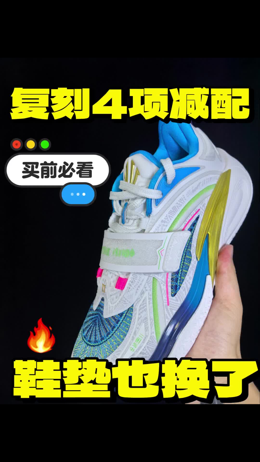 外观极具速度感并且线条感十足,整双鞋上脚感受下来完全能够配的上它1.4w的销量。 首先性能方面鞋面采用COOL - SHELL科技,肉眼可见的透气孔,像现在这个季节实战也能保持双脚干爽。 全掌䨻科技,前掌落地很明显的场地感的同时还有出色的回弹反馈,而后掌对于中小体重的我来说韧劲儿很强。 鞋楦适配度高,相对于我这高脚背宽脚来说也不会挤脚,整体的贴合感、支撑性、舒适度还是很优异。
