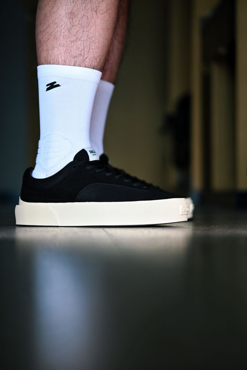 黑武士上脚果然就是帅 织物和翻毛皮的拼接鞋面是亮点🤔 加上氧化黄中底,简约又百搭的休闲板鞋get 不过的确有点吸灰不耐脏,特别是翻毛皮这一块😌😌 fault22发售这么多年来,依旧还是每次出门首选😋