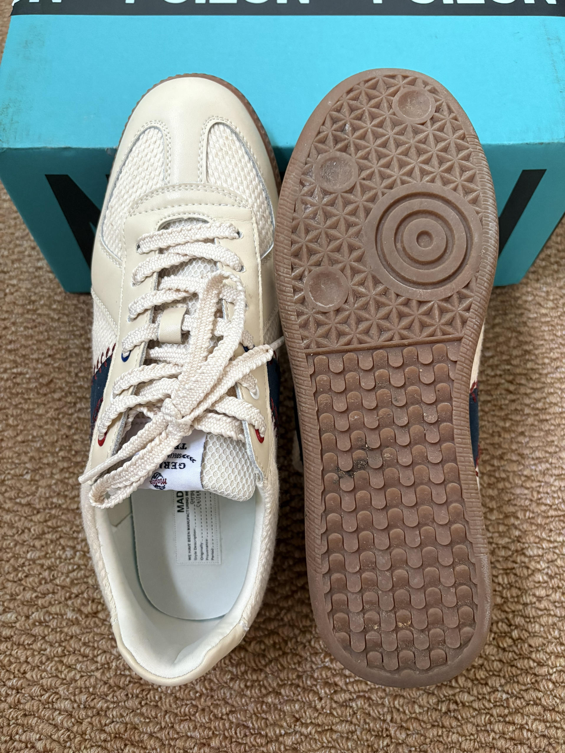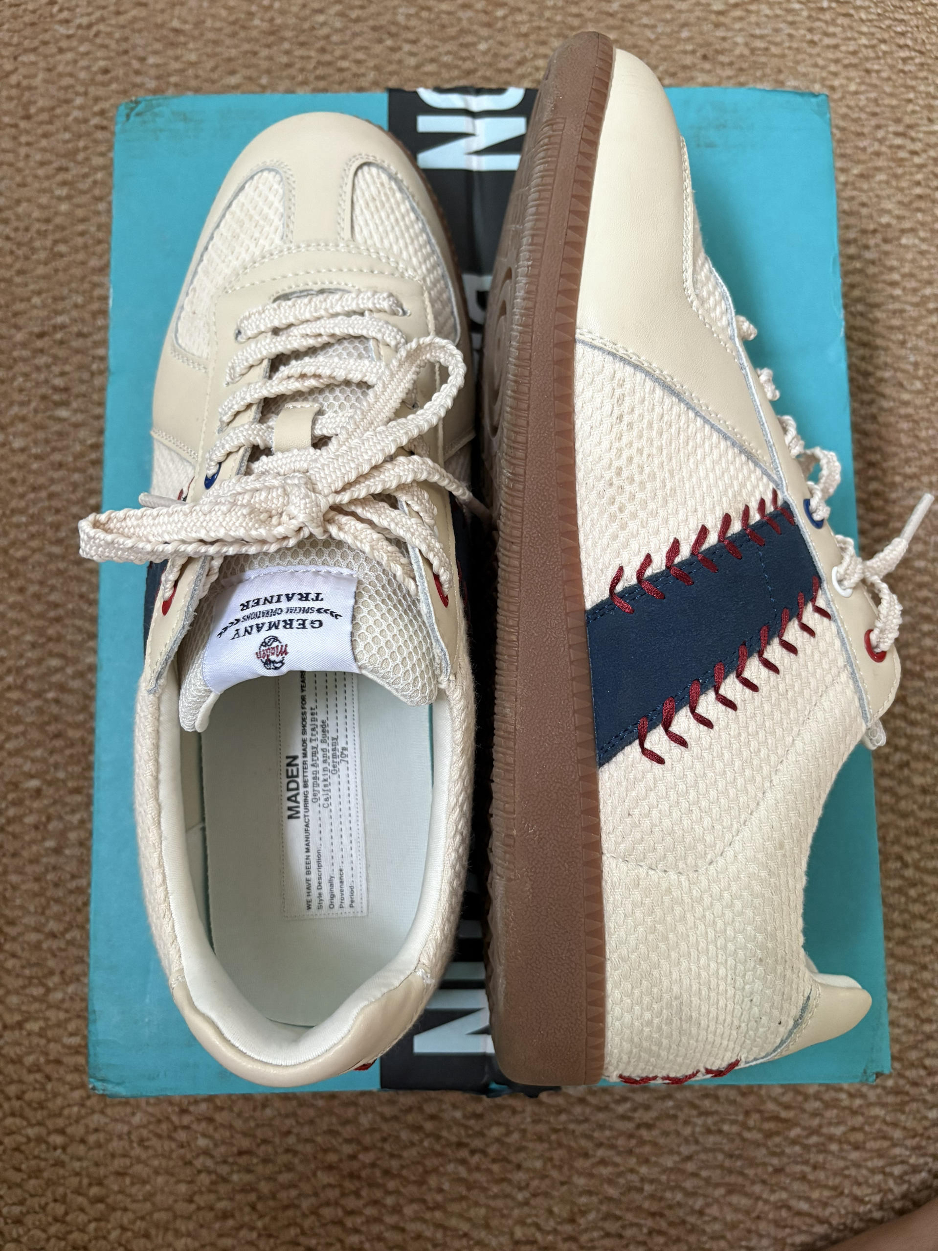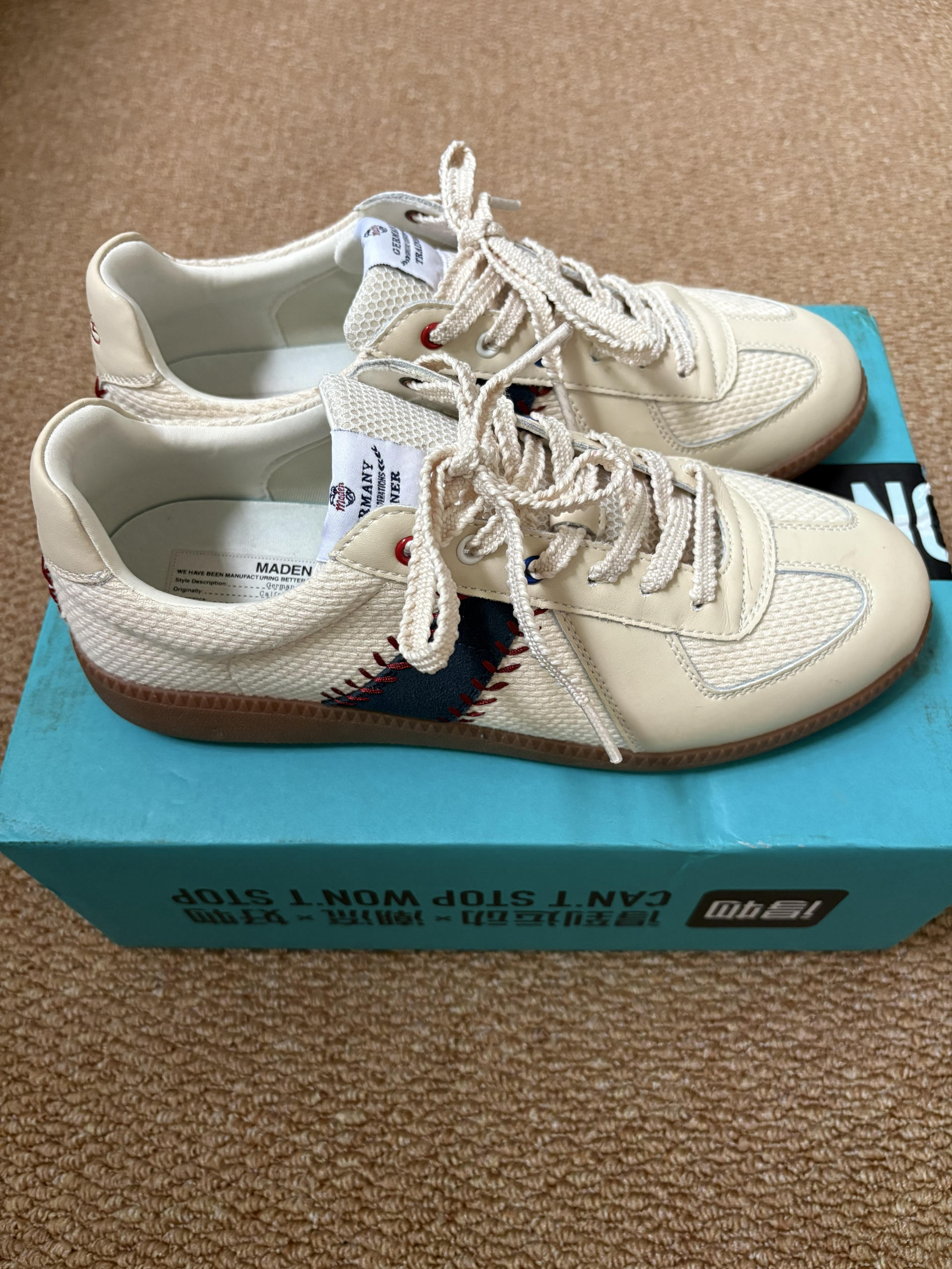 本篇笔记关联了Maden/马登 阿甘鞋 德训鞋 板鞋 轻便软底潮流小众复古美式舒适百搭运动健身训练 MD2001005 米色/藏青色等商品,为用户提供真实的使用体验和购买参考。
