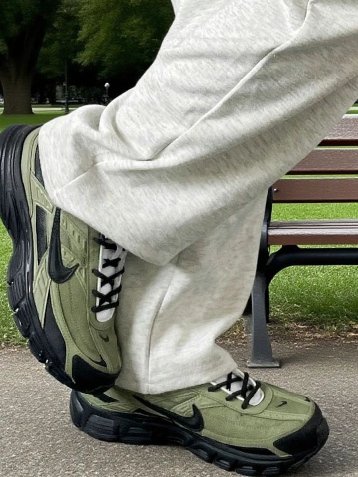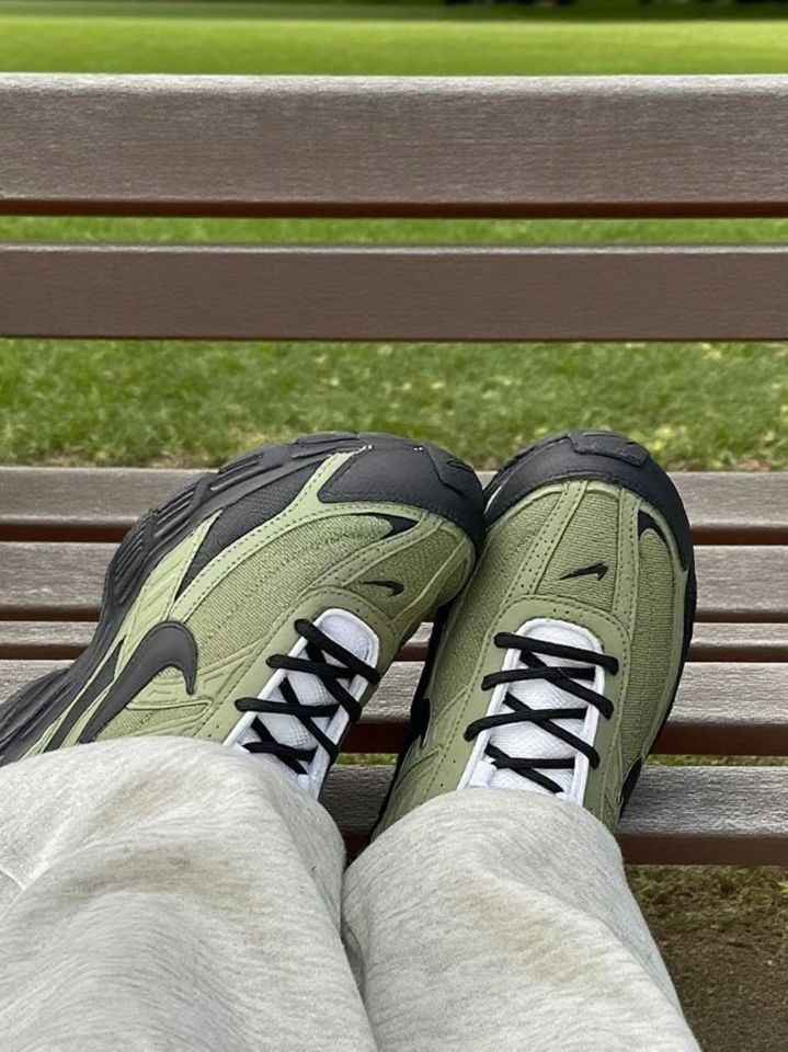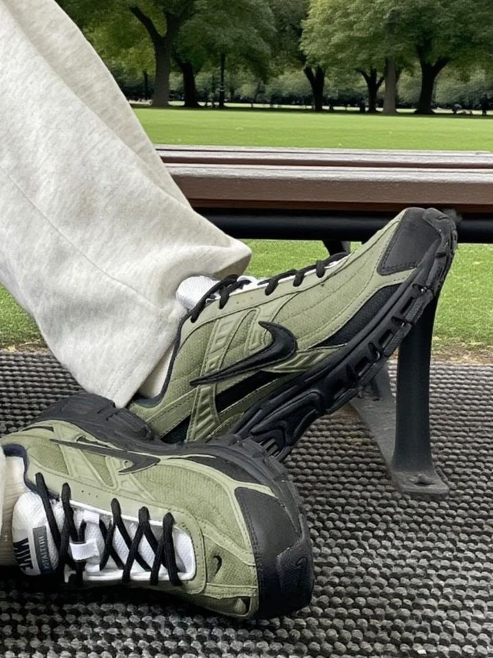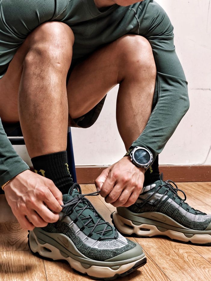 被这双运动鞋的细节吸引啦! 橄榄绿主色调,黑色线条和标志 鞋面材质透气,夏天穿应该还行 上脚包裹性不错,脚在里面稳稳的 鞋带长度也刚好~ 暴走5k脚感依旧在线