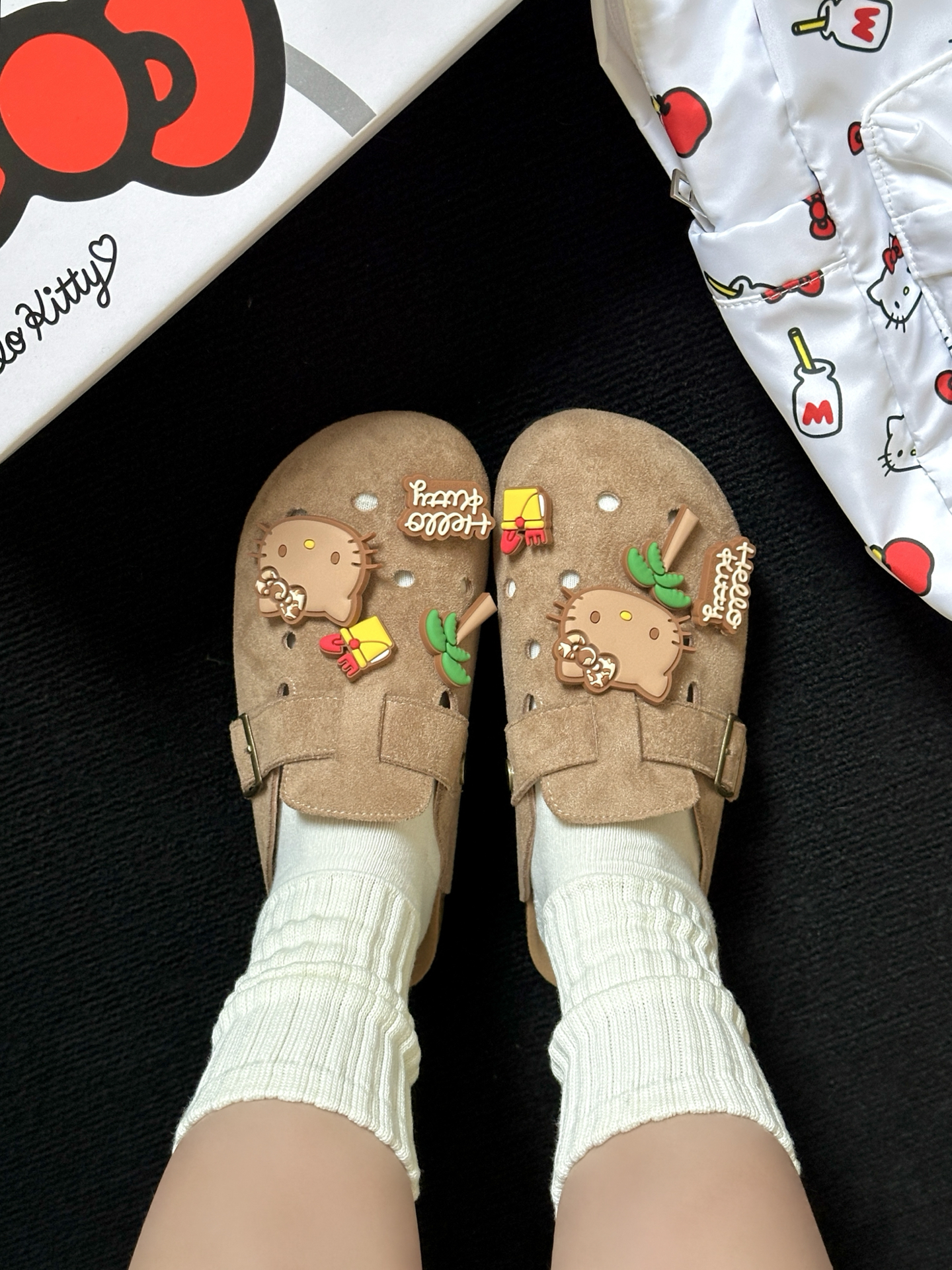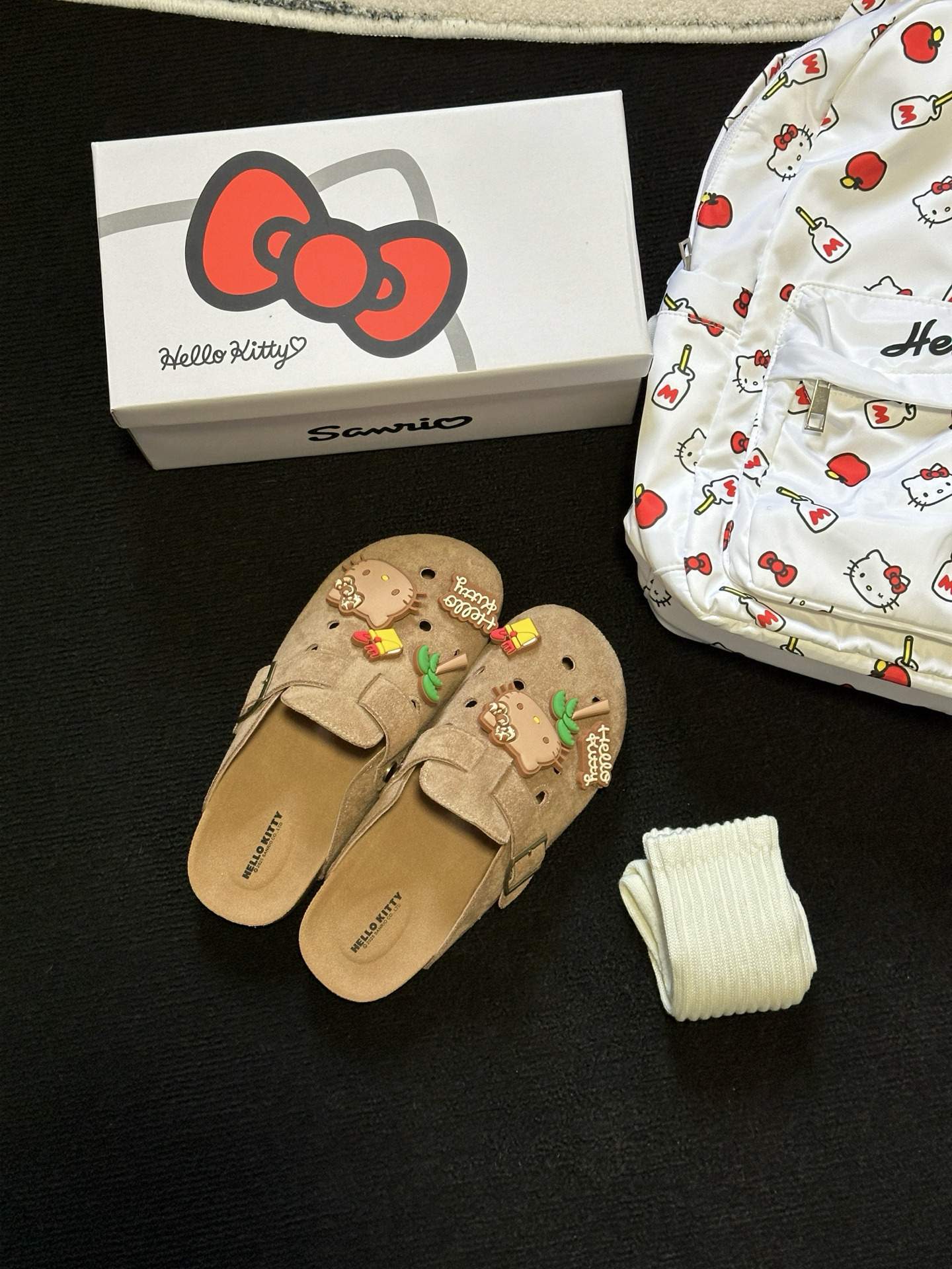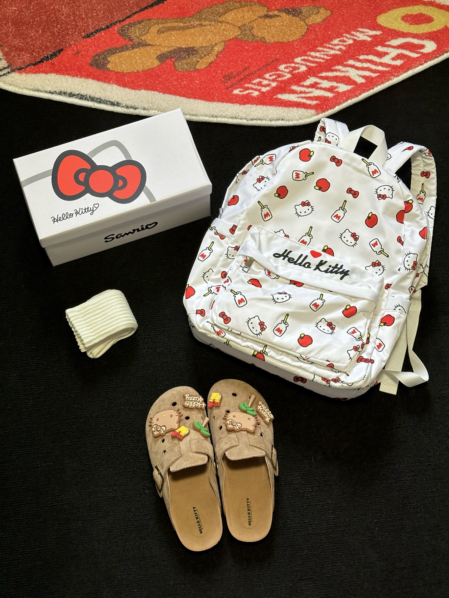 最近不要太爱Hello kitty噢~真的是越看越可爱☺️正版凯蒂猫还得是 #三丽鸥 !正版联名还价廉物美😱😱😱 就拿我这双勃肯鞋来说吧~才两位数!麂皮材质超级舒服😌鞋头不挤脚,穿脱方便!送的小配件也超可爱,diy鞋面很有趣,松弛感通勤美鞋look☺️ 同时包包也很nice👌双肩包大容量!尼龙面料超结实!背着上学也可以很时尚☺️跟鞋子好般配‼️以后我还要收集更多Hello kitty可爱单品...