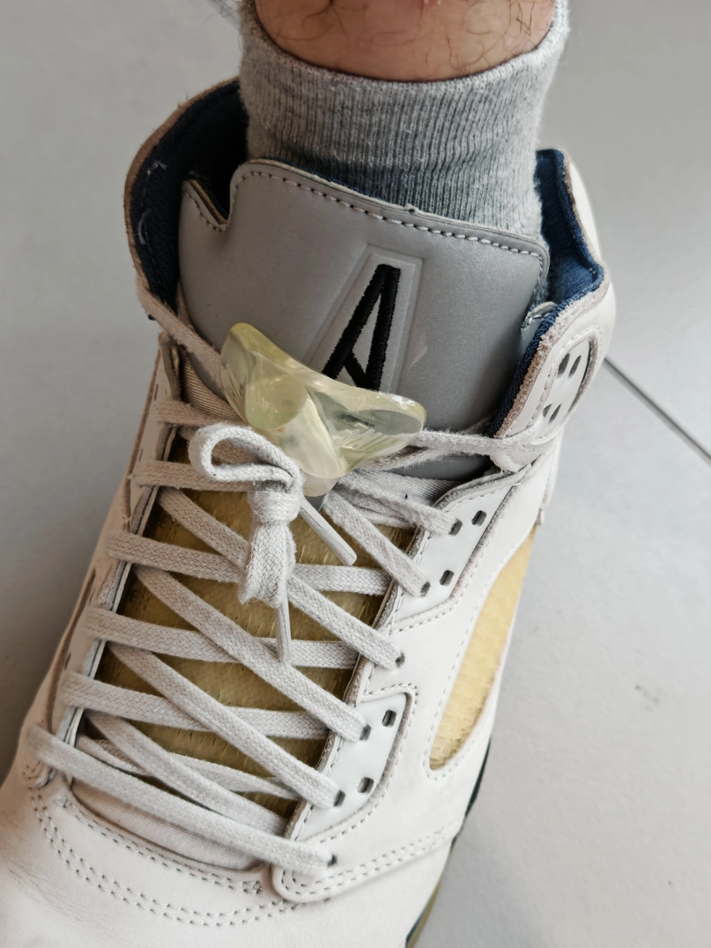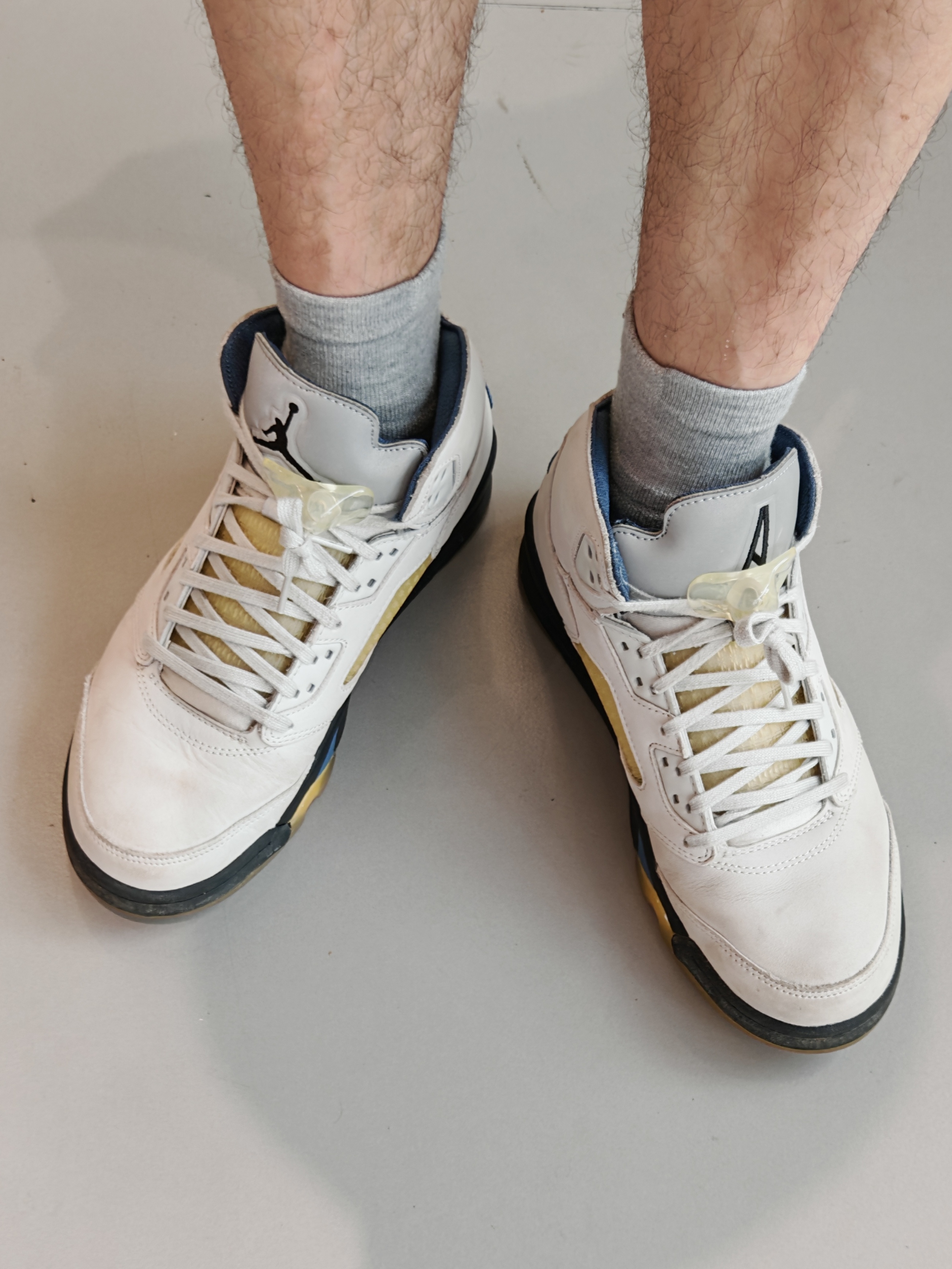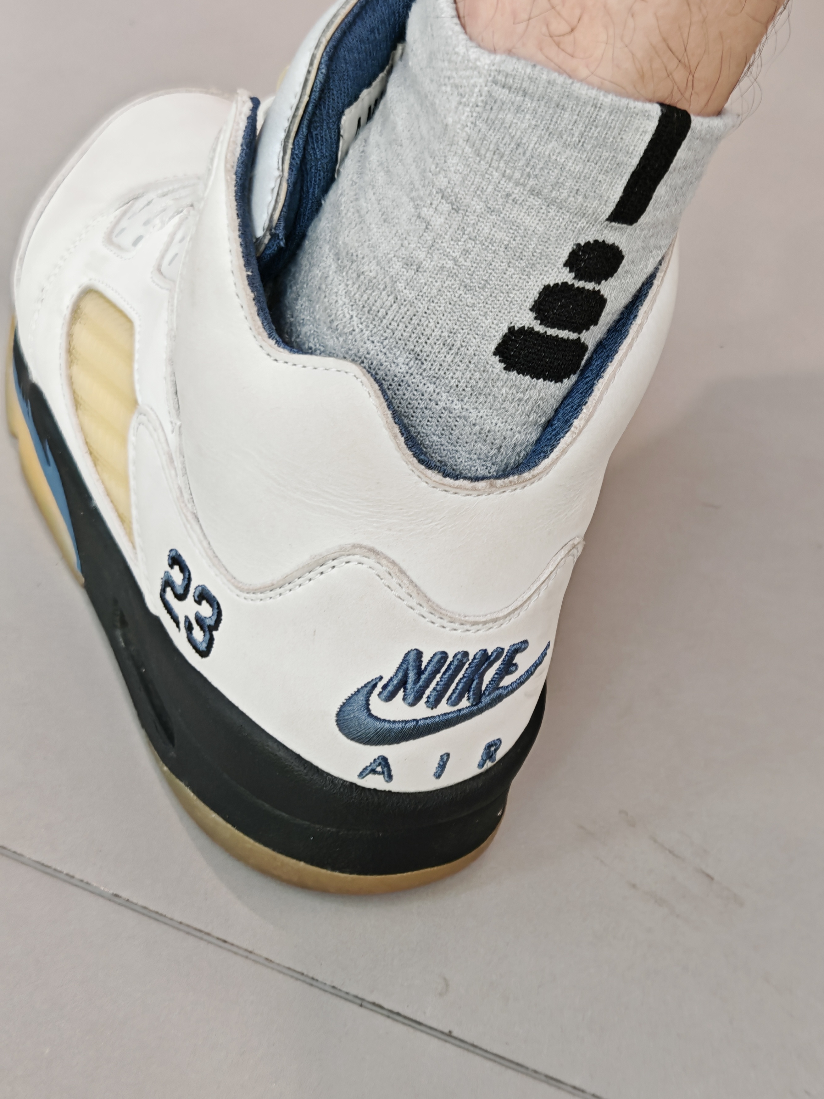 联名的Aj5,配色比一般的Aj5更高雅、更复古,皮质也很软,挺舒服的,但这种材质确实很难打理,没多久就脏了!得有耐心去保养它。 #静默复古穿搭公式 #AJ5联名 #球鞋上脚 #球鞋真心话 #ammaj5
