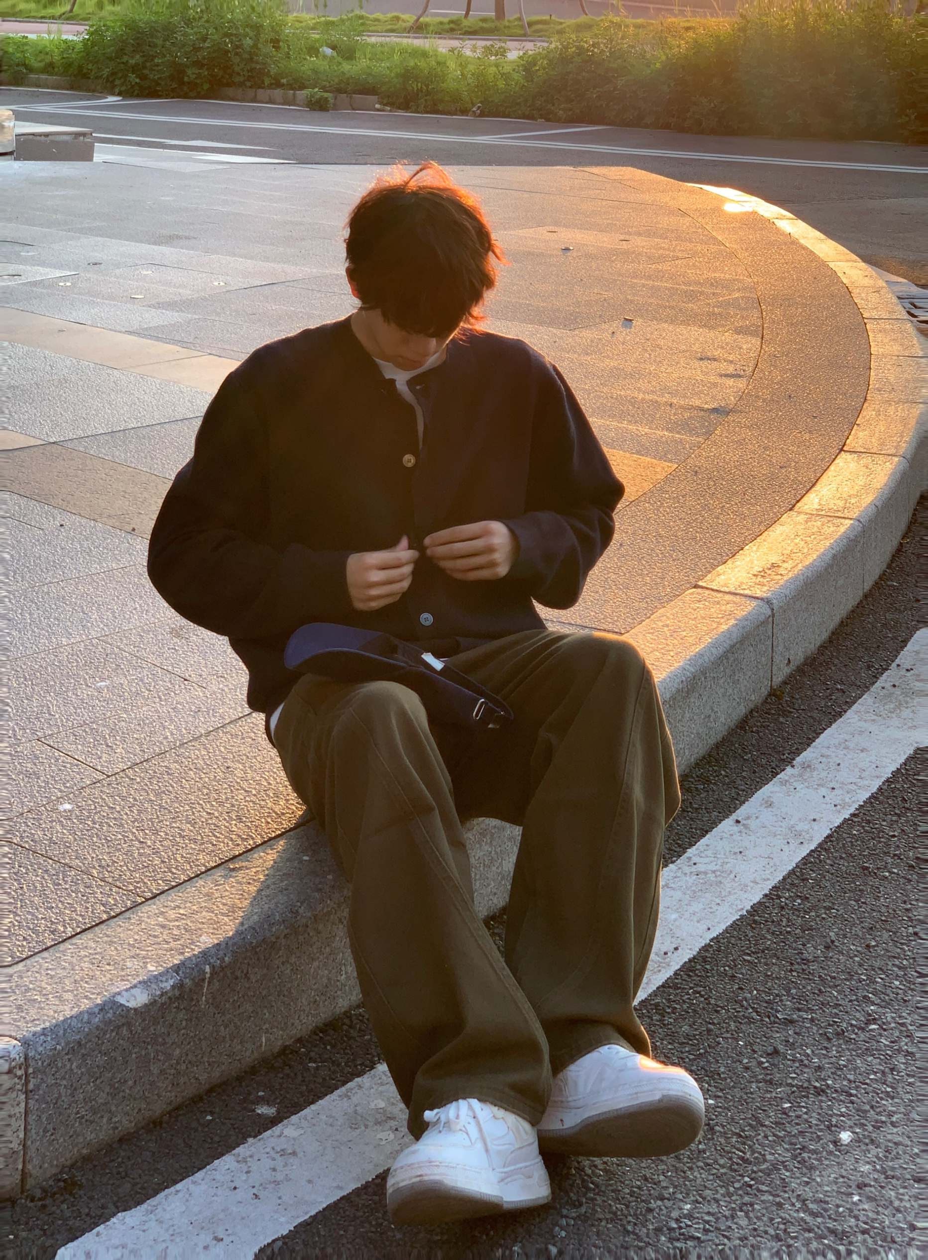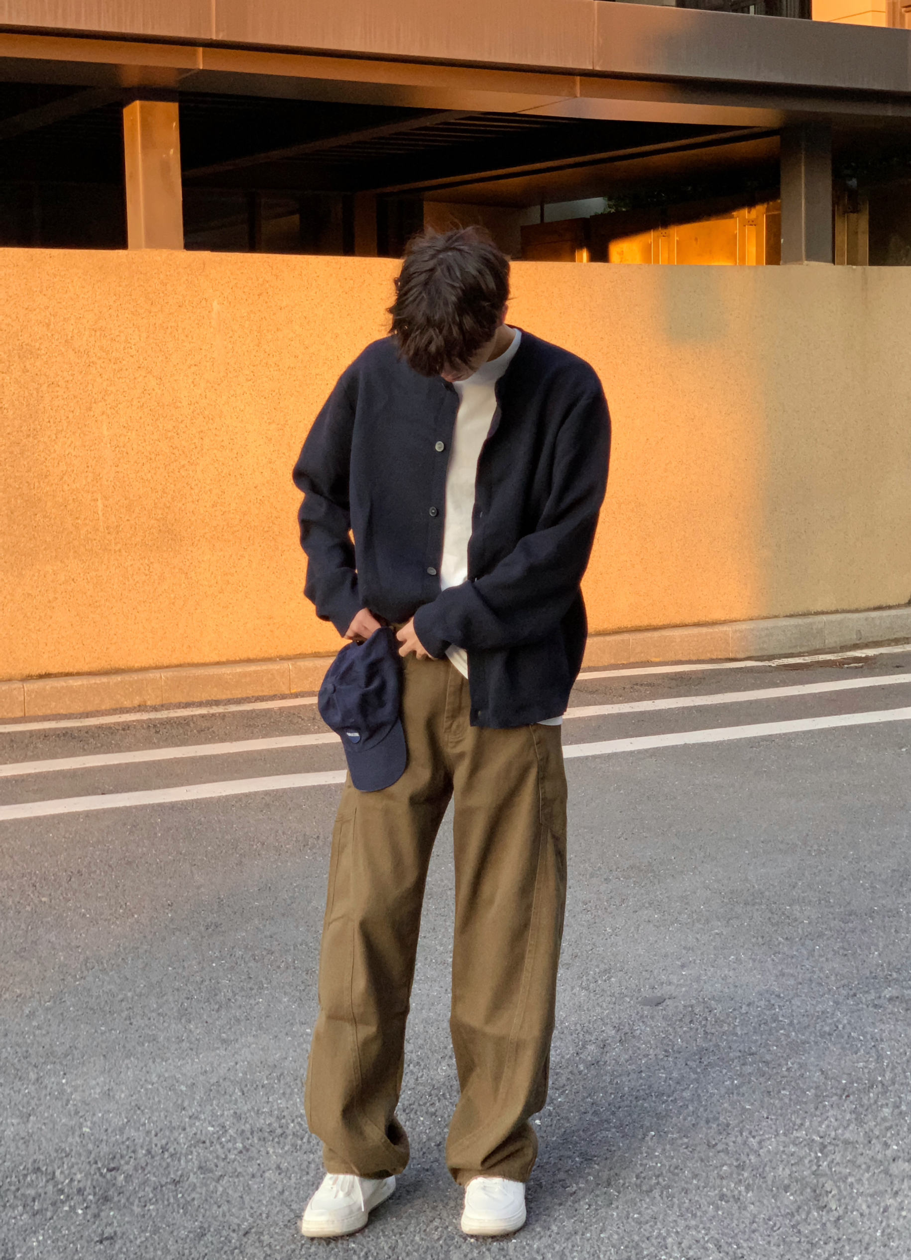 藏青毛衣+绿牛仔裤撞色也太绝了! 软糯针织质感遇上复古绿调牛仔 慵懒里带点小痞帅~ 👔:weere 👖:uxgr