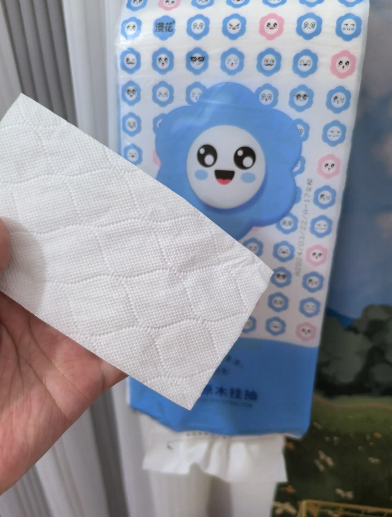 又又又又来回购漫花了 一直以来都是漫花的忠实用户 满满满一箱6大包,每包都是足足的 一如既往的好用,4层加厚,湿水了也不会破柔软,自然无香的,日期也是比较新的还送了挂钩,挂哪里都方便包装也很好看,非常适用性价比很高的一款纸巾了.图源网络侵删