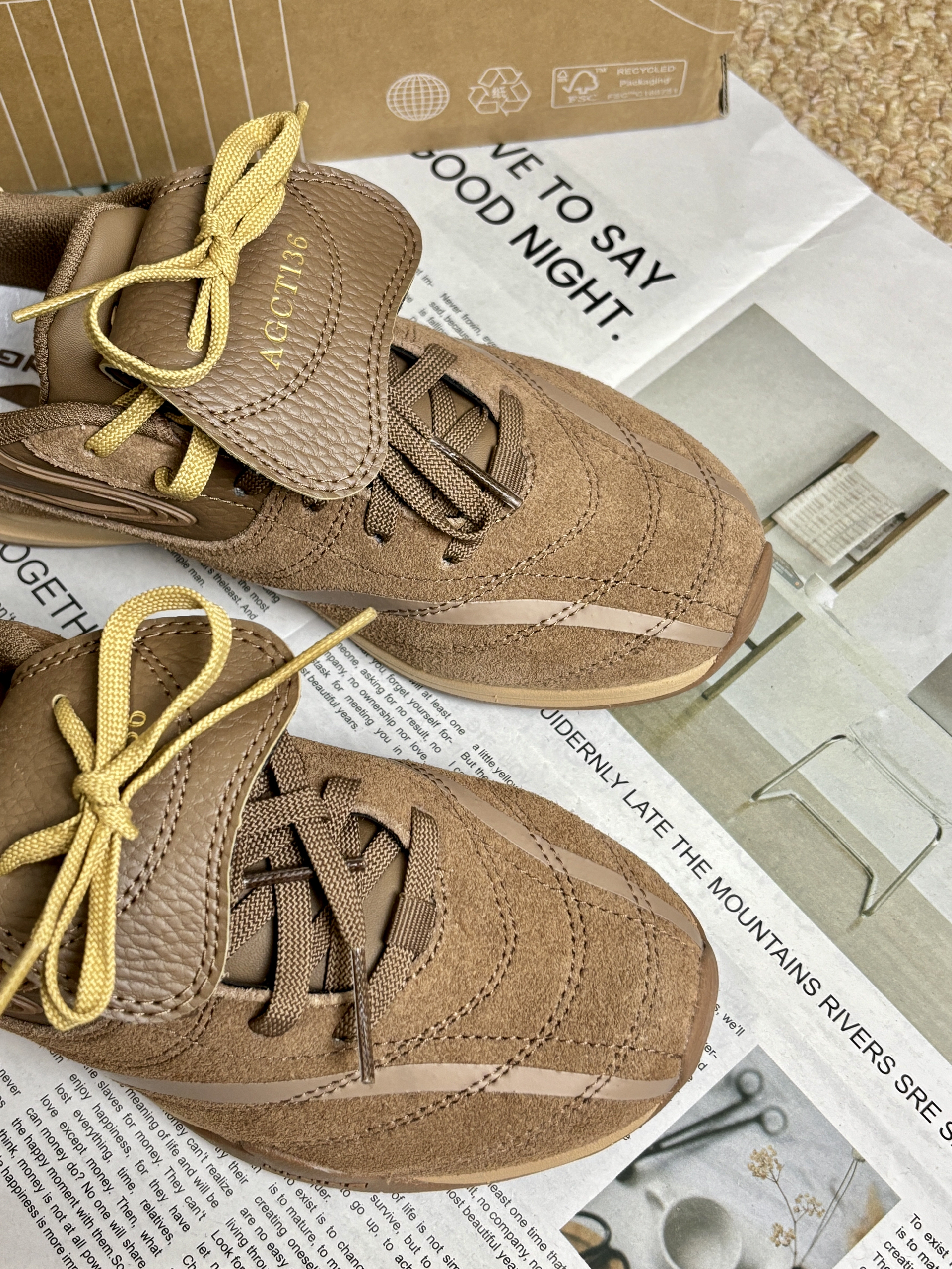 麂皮质感的卡其棕,自带温暖滤镜,不管是搭配工装裤走街头潮酷风,还是配针织裙走复古温柔风,都能完美适配💥鞋身的线条设计很有层次感,细节处的质感拉满,而且“AGCT136”的专属标识,让每一步都像在走专属时尚秀场~😌