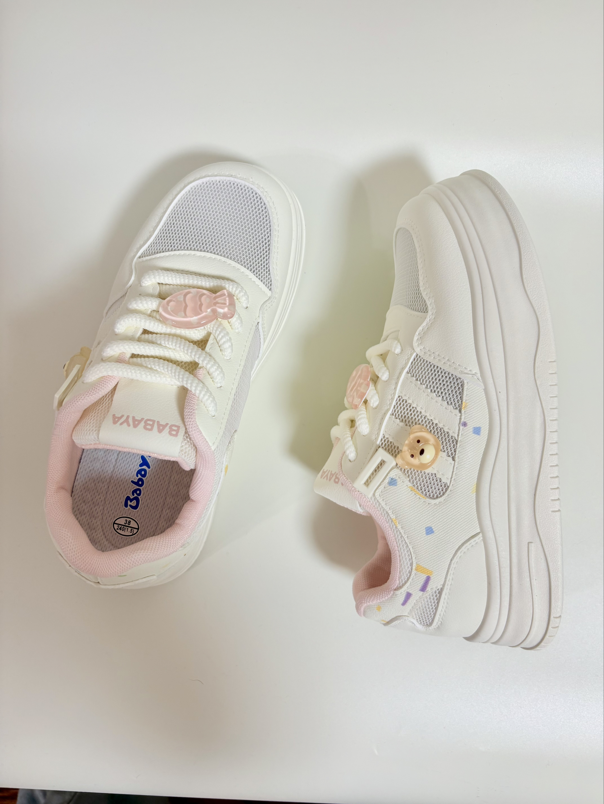 芭芭鸭的这双板鞋挺好看的,价钱还便宜,鞋面是网孔的,很透气,夏天穿就很合适,而且价格也不贵,两杯奶茶🧋的钱就可以买了,而且现在消费降级,感觉平价的鞋子穿着也不错😊鞋底也不硬,脚感还挺好的👌🏻