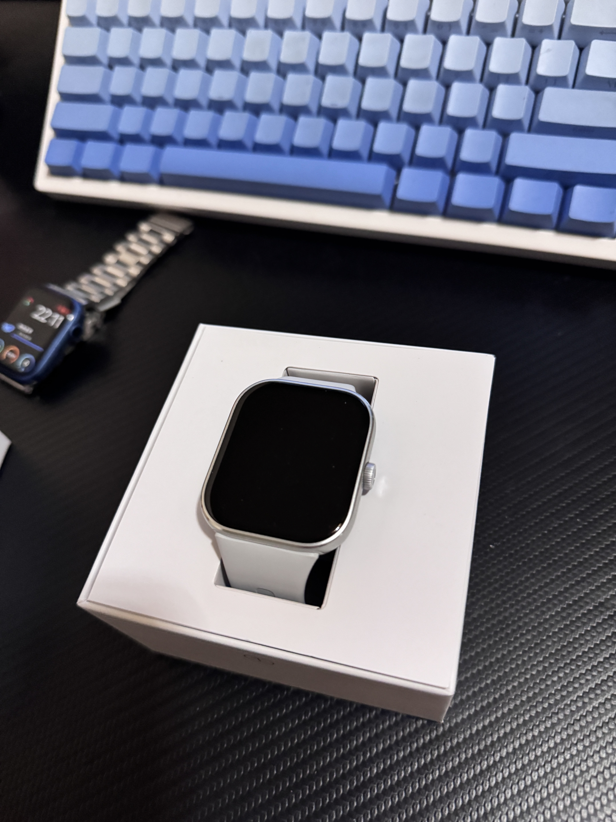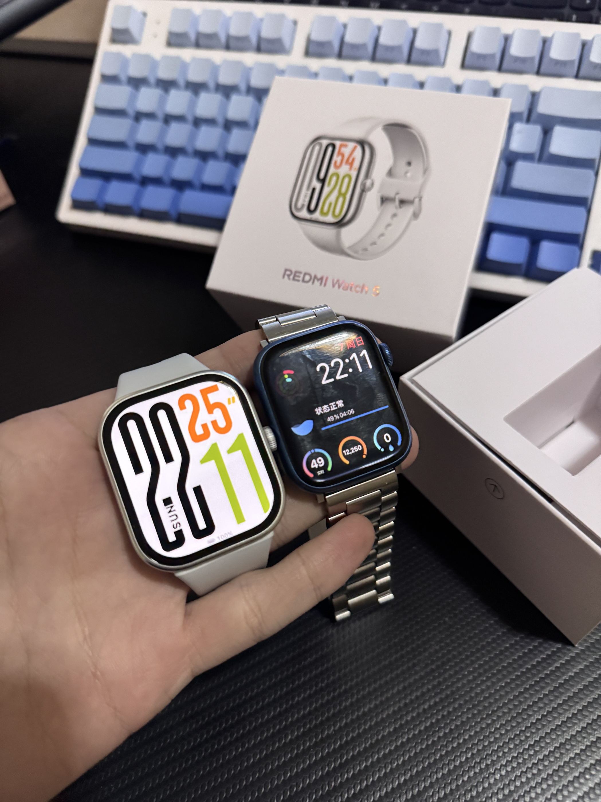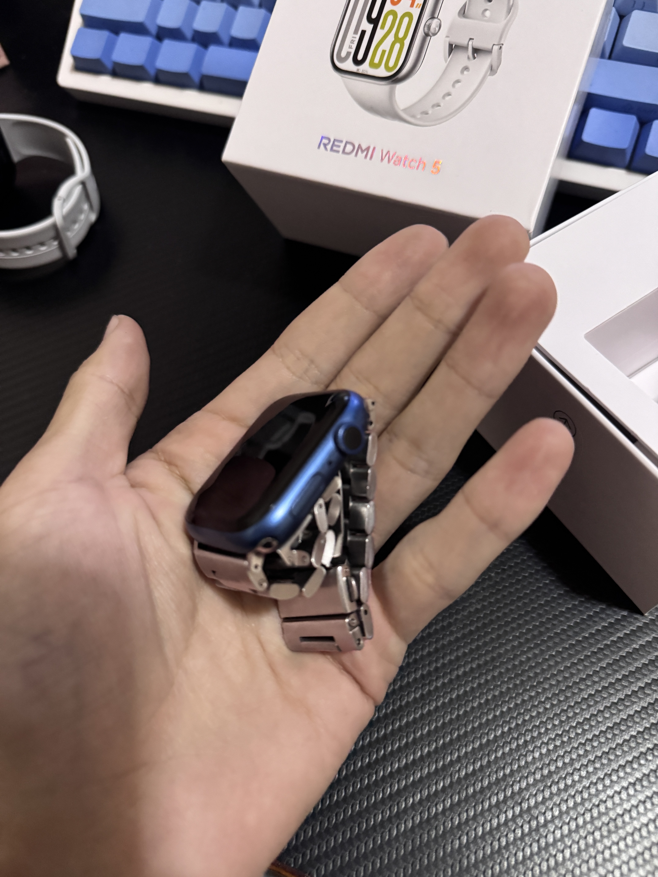 今天换了一个新手表,他的表盘感觉比我的s7竟然还要大🫡 我当时买的s7可是45mm的,而且现实也很清晰,但是流畅度的话感觉流畅度方面比苹果稍微差一点,这可能是我老将苹果s7少数不多的优胜点了✅ 然后就是说一下他的这个佩戴的感觉,表带我感觉很轻,不是那种很舒服呀的硅胶,可能是我带习惯了s7那种铁的,换一个表带应该就OK 总体的体验还是很OK的,并且大家很关注的watch5回微信我也没有接到版本更...