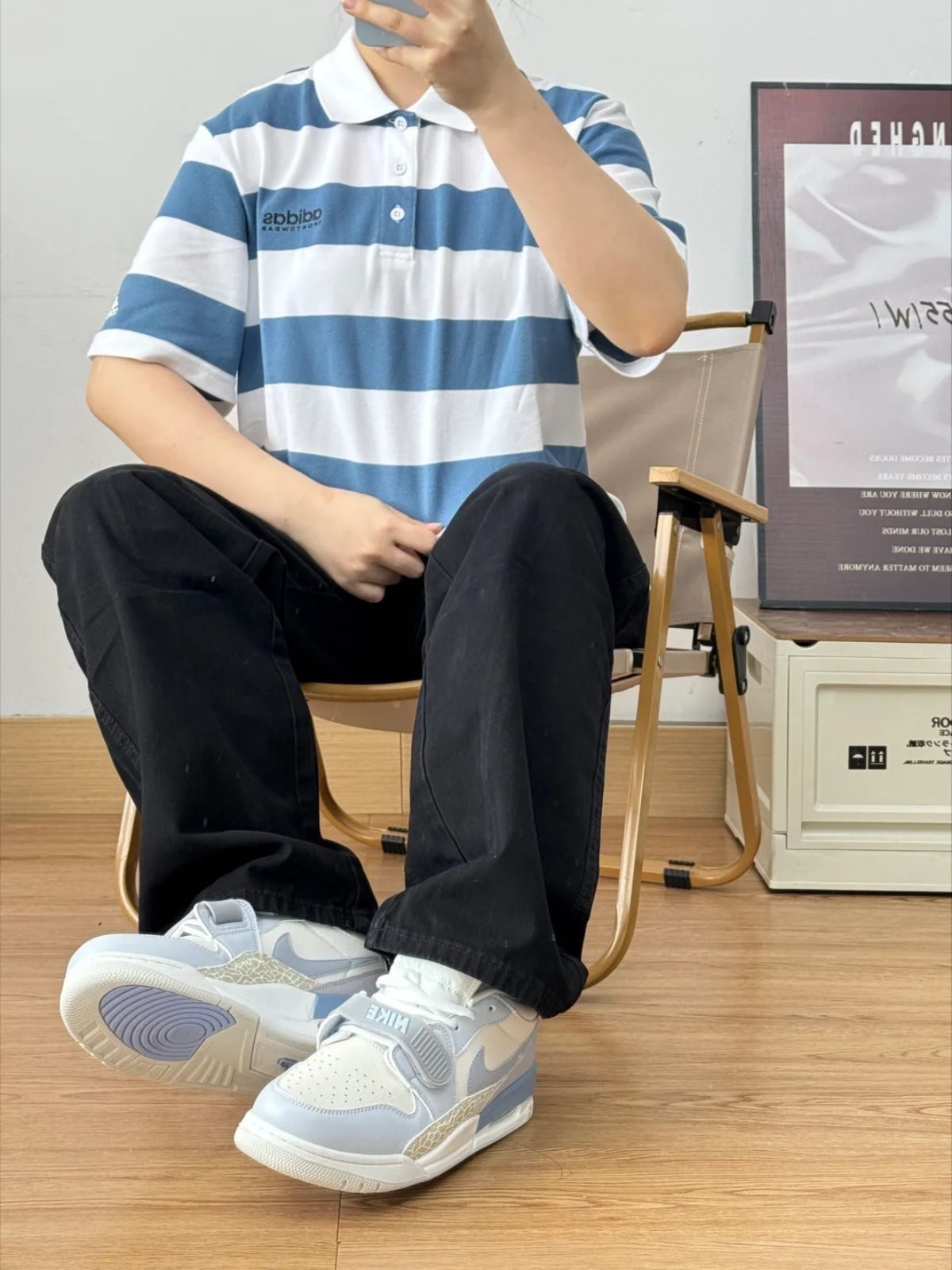 日常通勤这样穿真的好好看耶 这个条纹体恤搭配休闲裤 裤子的版型还挺正的直筒 不管是上班或者周末出去玩搭配都不错