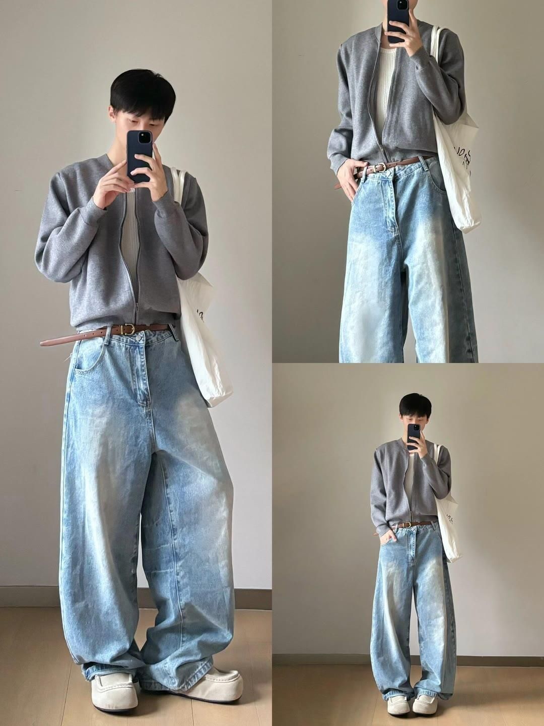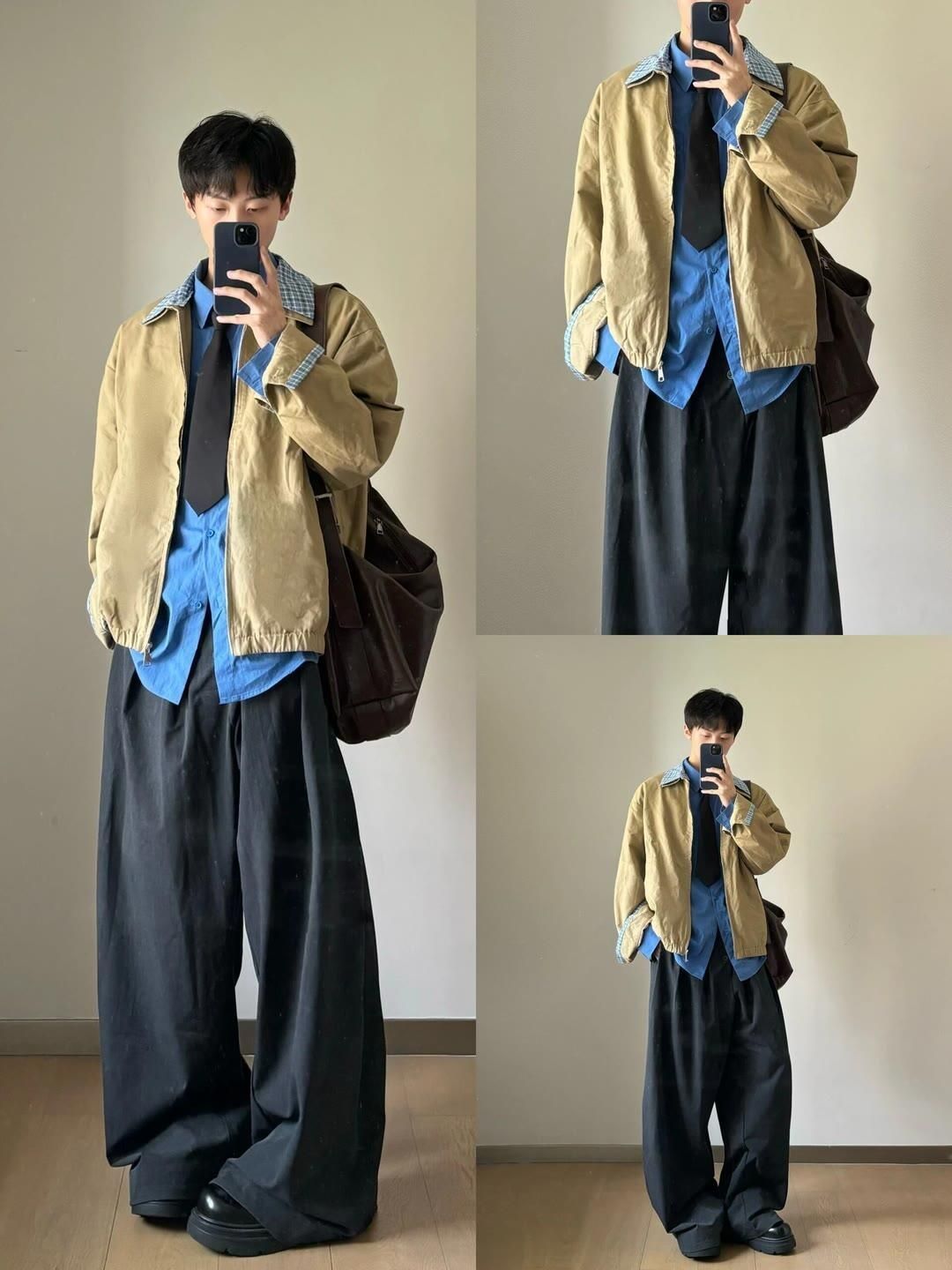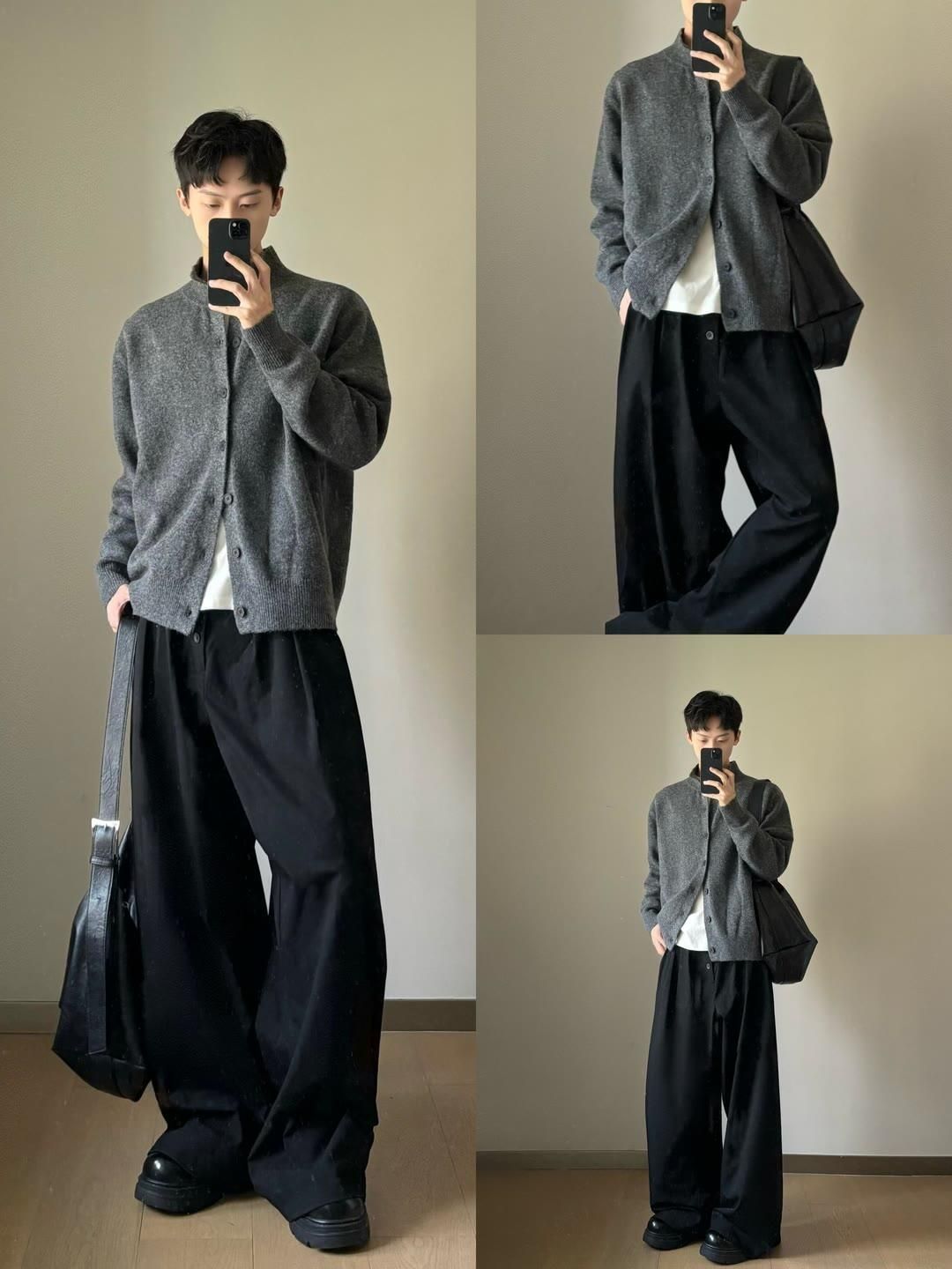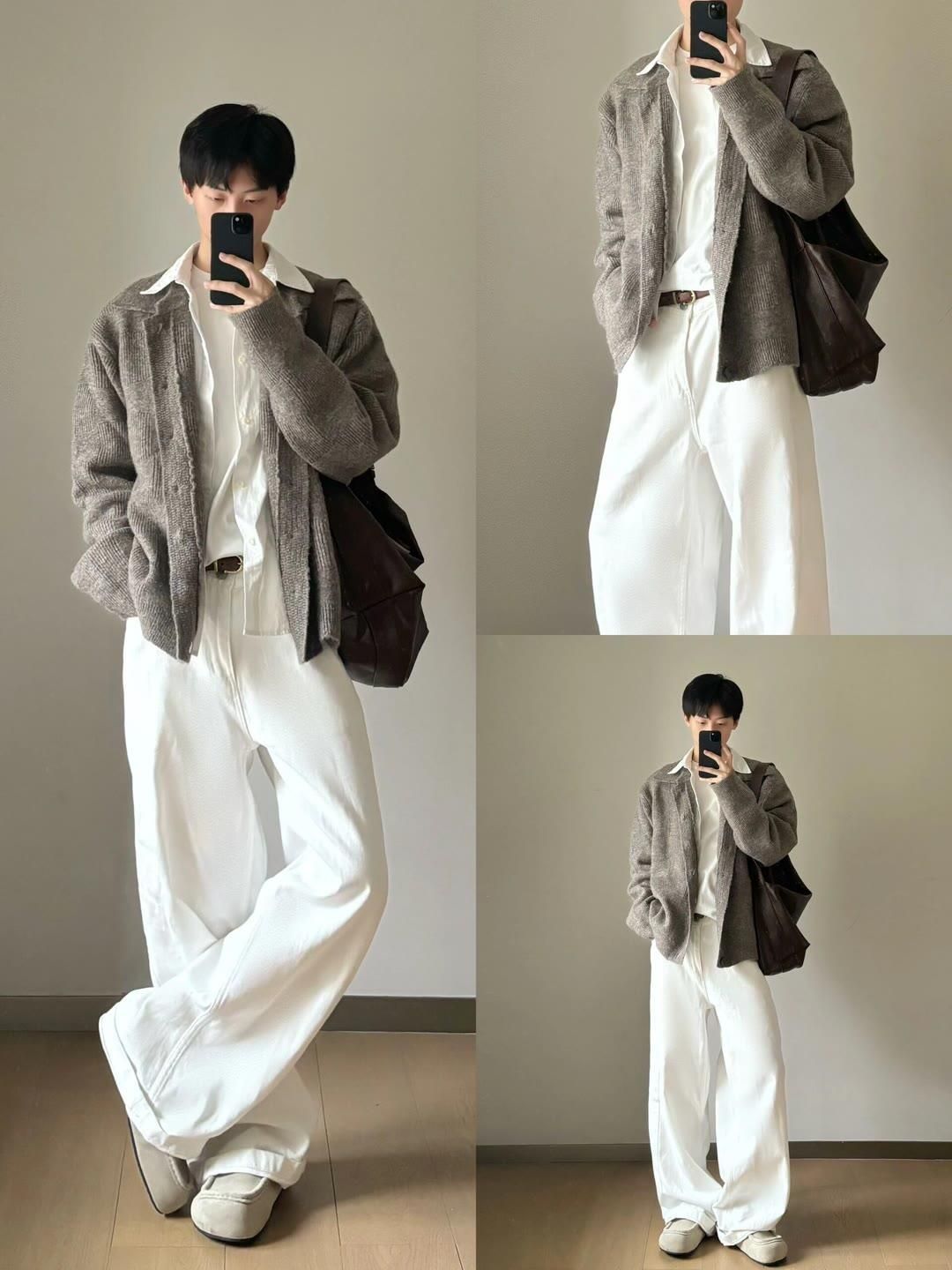 今天给大家分享8套痞帅感十足的潮男穿搭,轻松拿捏氛围感,让你在街头成为焦点~ 🌈Look 1:浅灰色针织开衫内搭白色衬衫,下身搭配白色阔腿裤,再挎上棕色包包 。温柔又随性,简约中透着高级感。 🌈Look 2:灰色毛衣单穿,搭配黑色阔腿裤,垂坠感十足。整体造型慵懒又不失格调,很适合日常出街。 🌈Look 3:卡其色工装外套搭配蓝色牛仔衬衫和领带,下身是黑色阔腿裤,再背上棕色大包 。工装风...