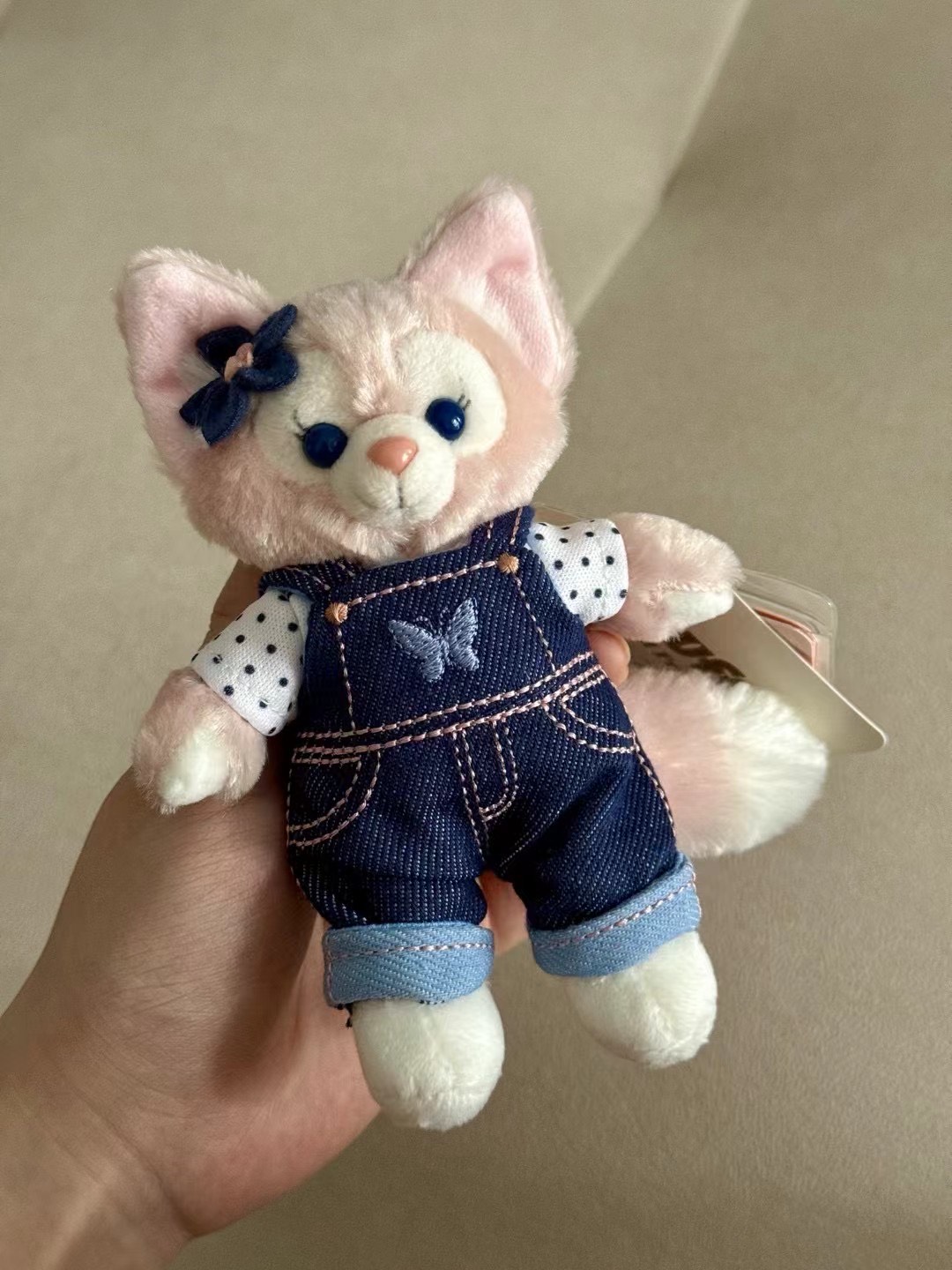 男朋友送的这个小挂饰好乖!牛仔背带配波点内搭,头上蝴蝶结也精致~挂包包上走路时小耳朵跟着晃,就是牛仔布偶尔怕勾线。爱玲娜贝儿的姐妹看到会走不动道吧✨