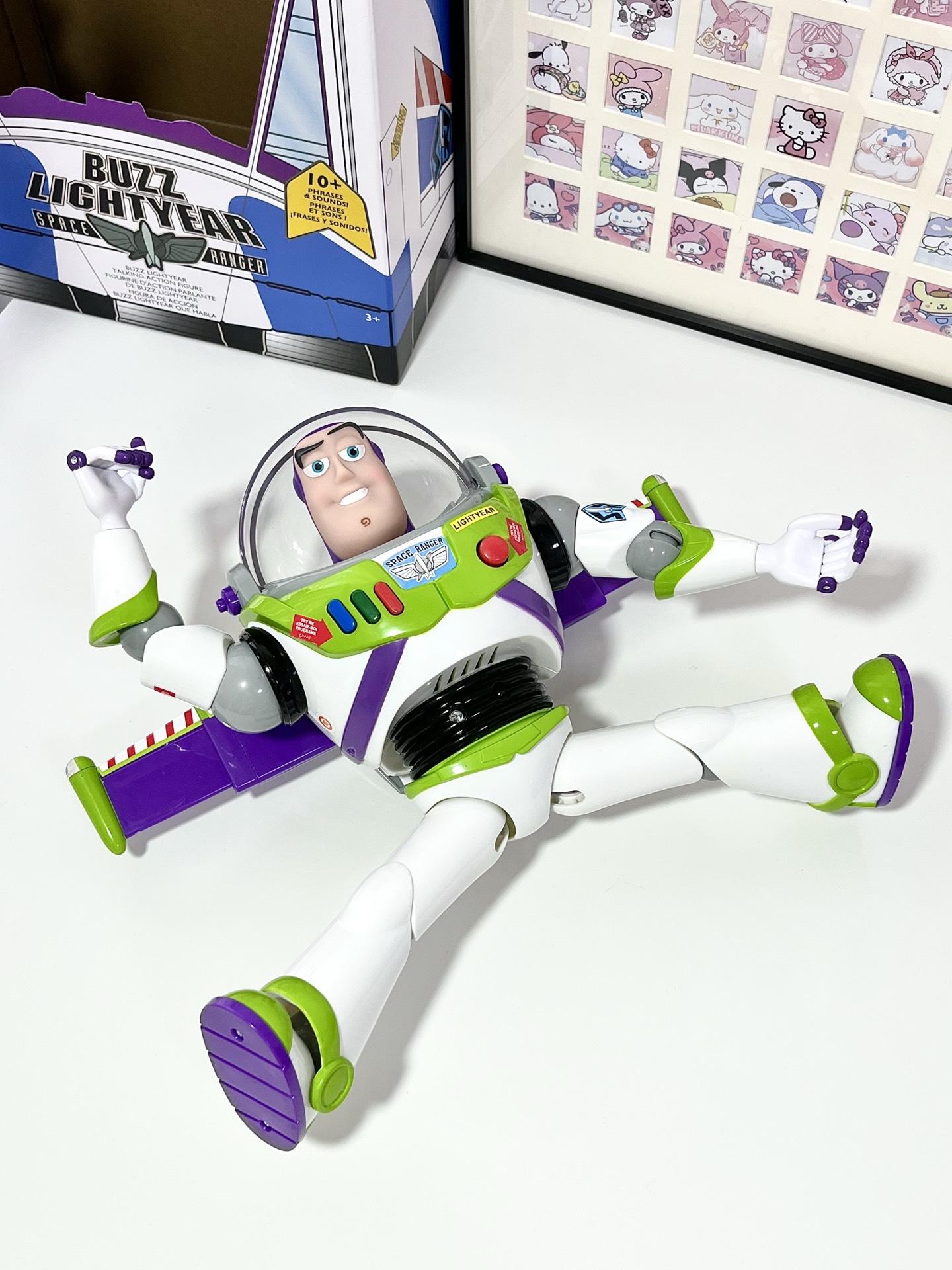 是迪士尼的巴斯光年手办耶 手臂跟脚关节都是可以自行扣动作 飞行器可伸缩也可以发出激光 酷酷的巴斯光年送给酷酷的男朋友 礼盒包装仪式感满满滴~ 收到也hin开心🥳🎉🎊