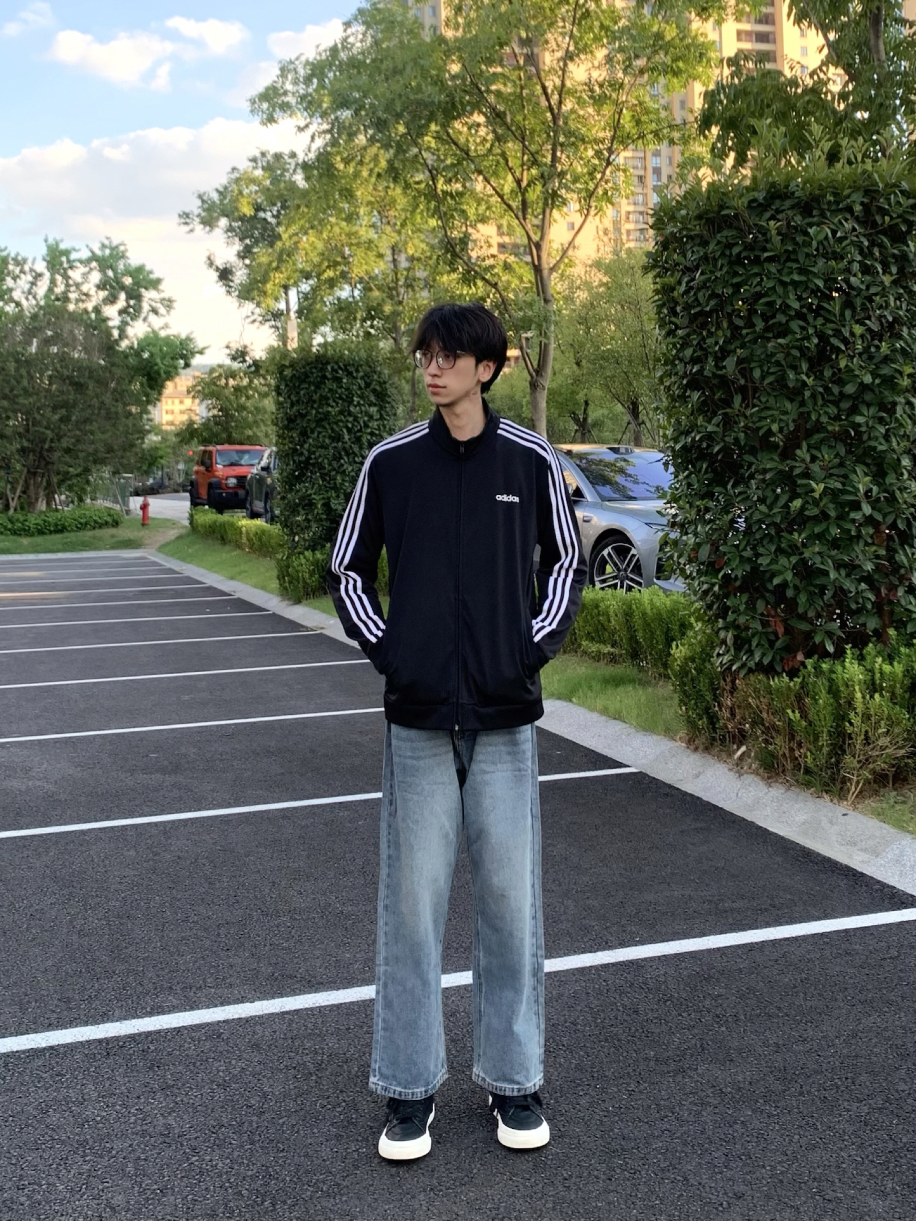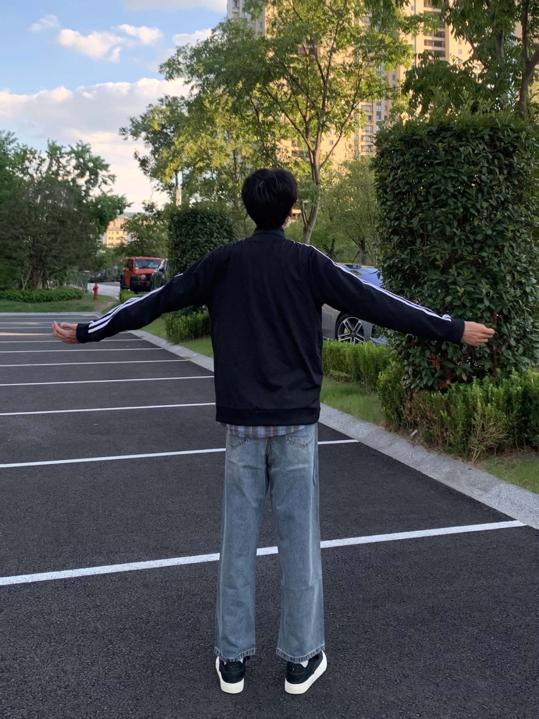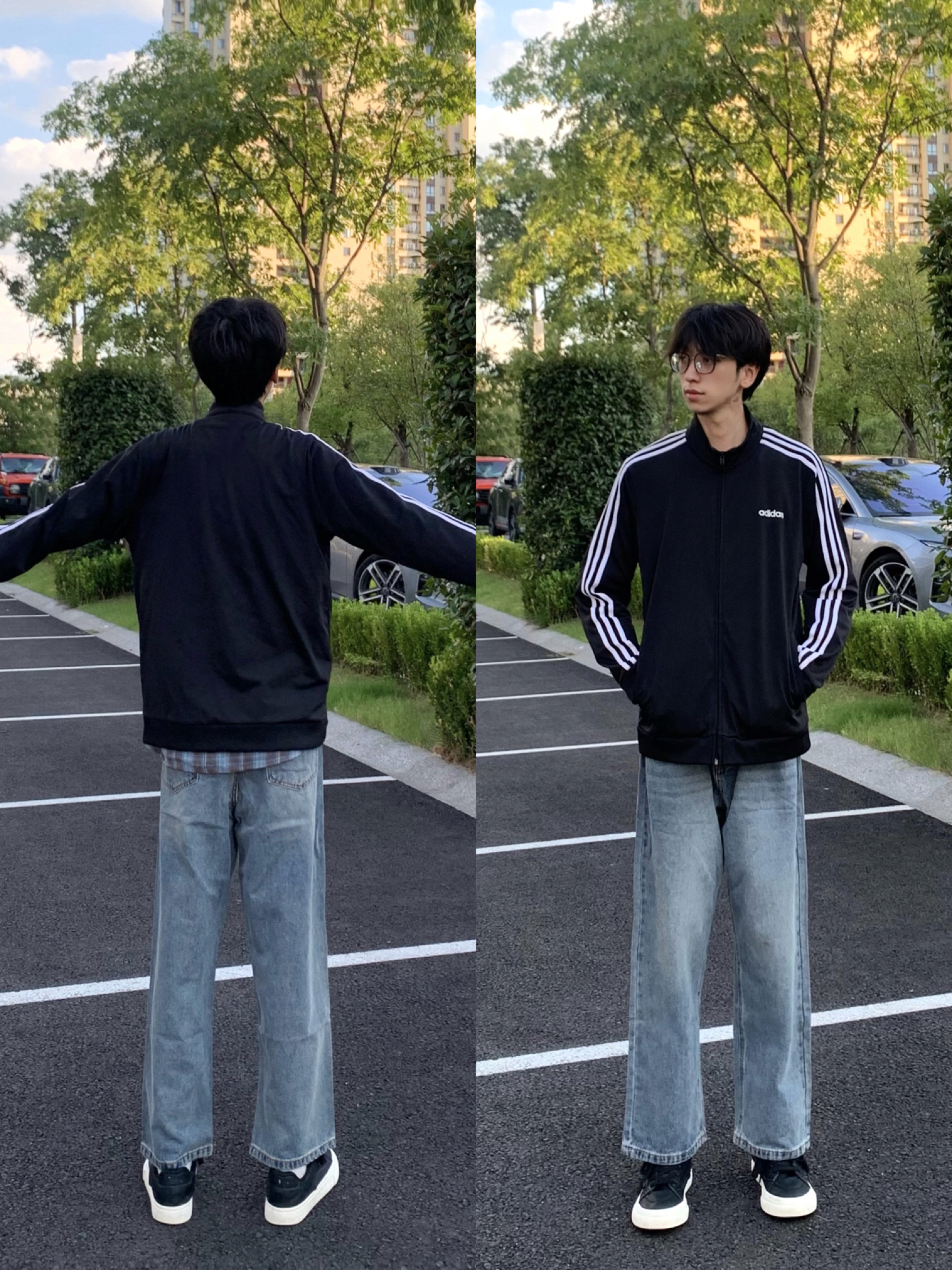 今日分享 黑色条纹外套 少年感十足~ 搭配蓝色直筒牛仔裤! 上身贴肤舒适 直筒修饰腿型也很帅!
