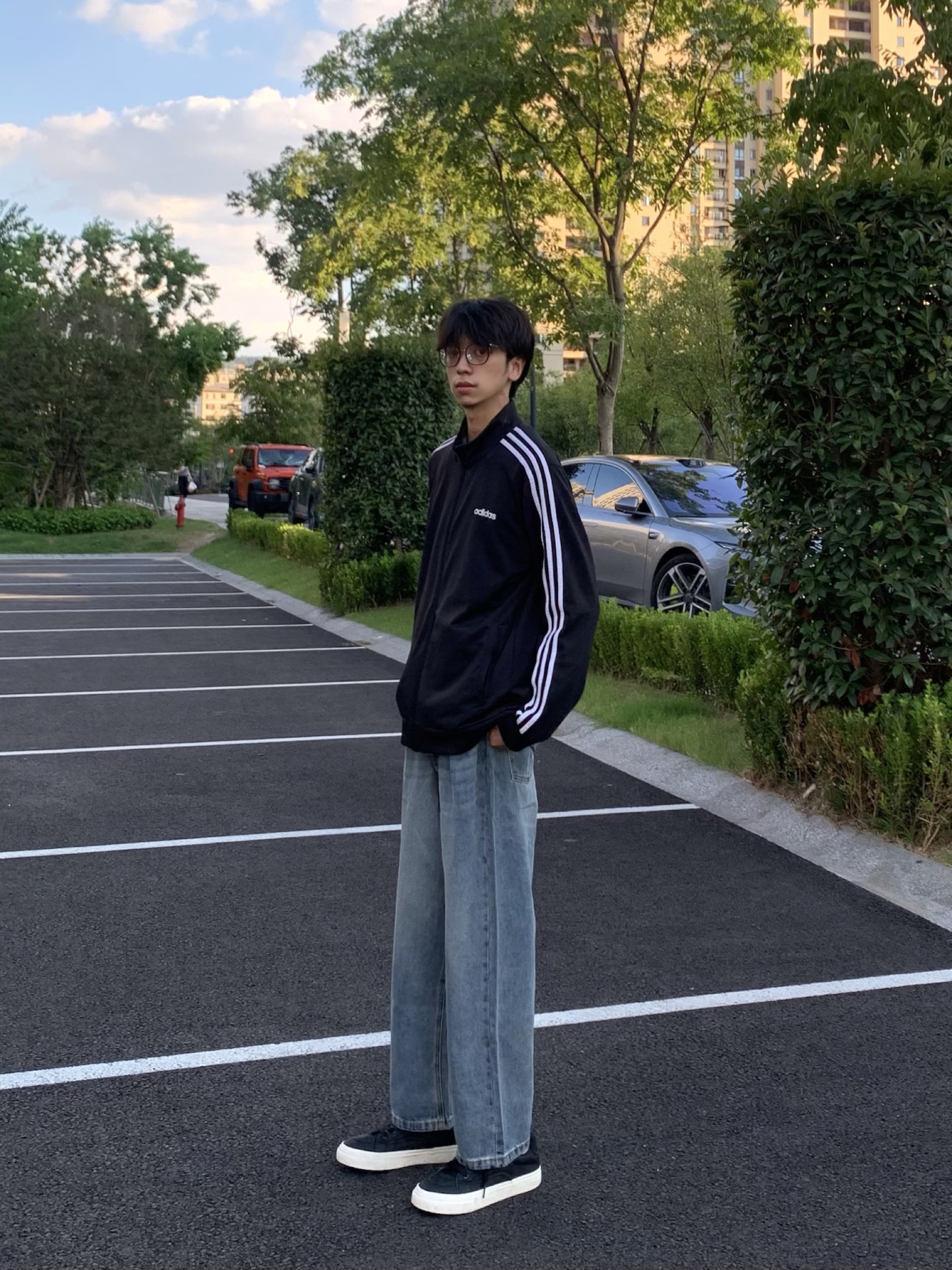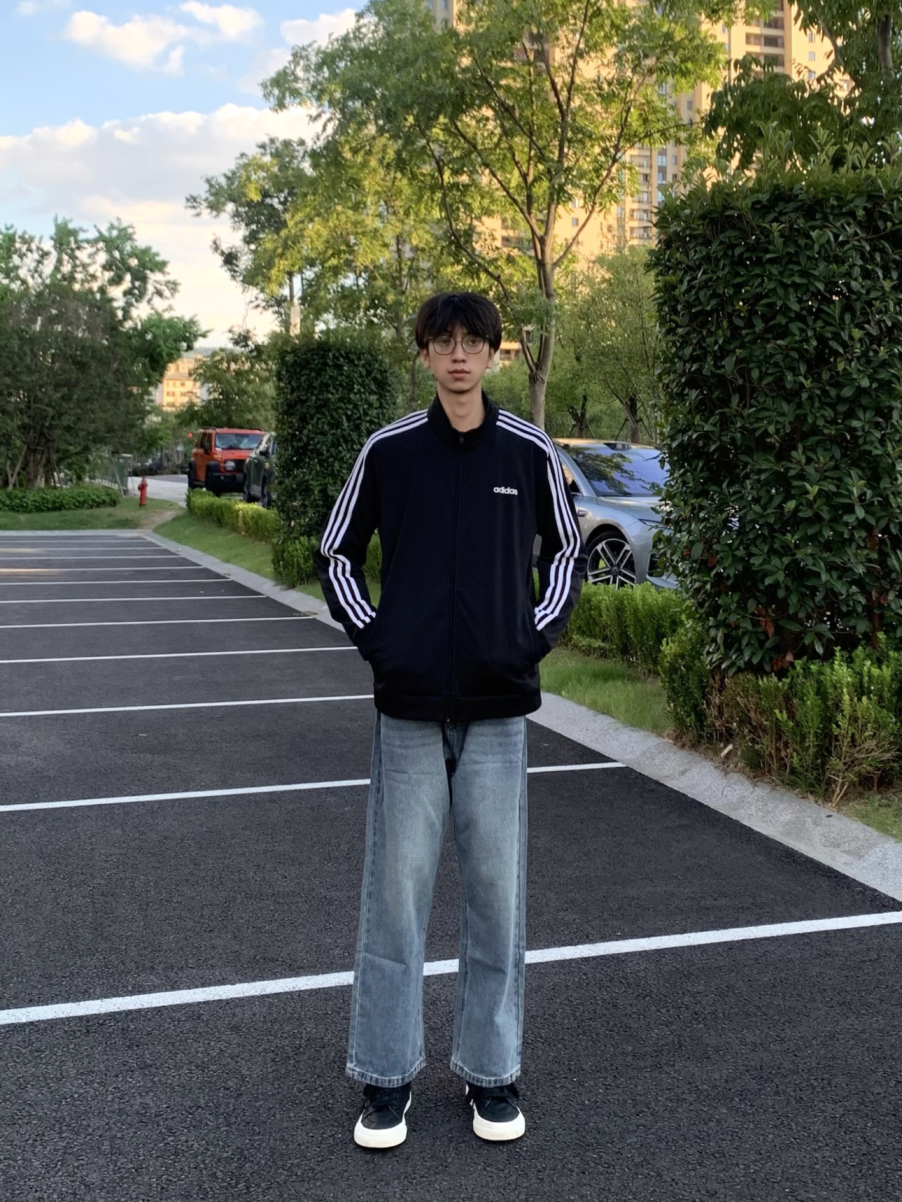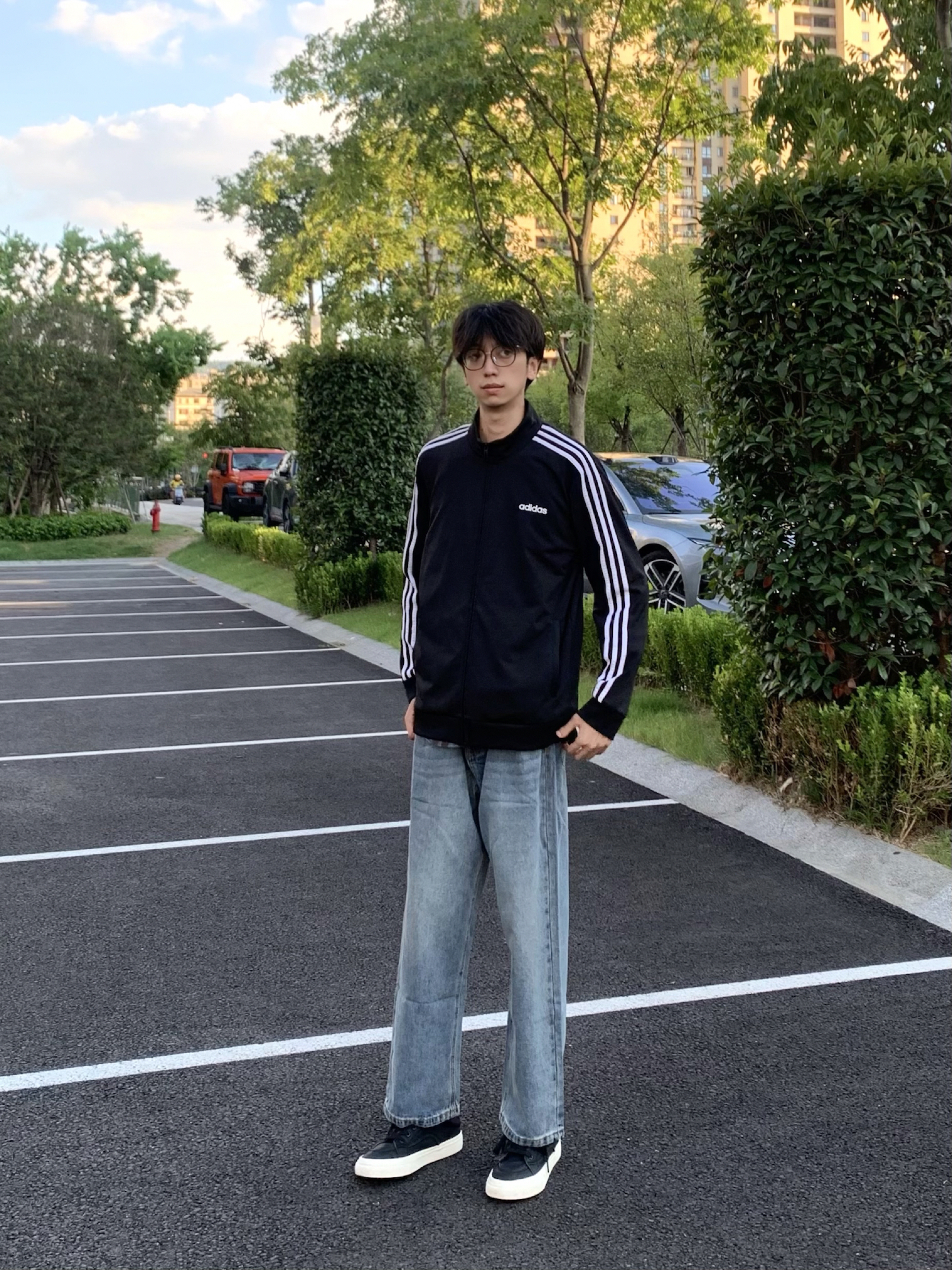 今日分享 黑色条纹外套 少年感十足~ 搭配蓝色直筒牛仔裤! 上身贴肤舒适 直筒修饰腿型也很帅!
