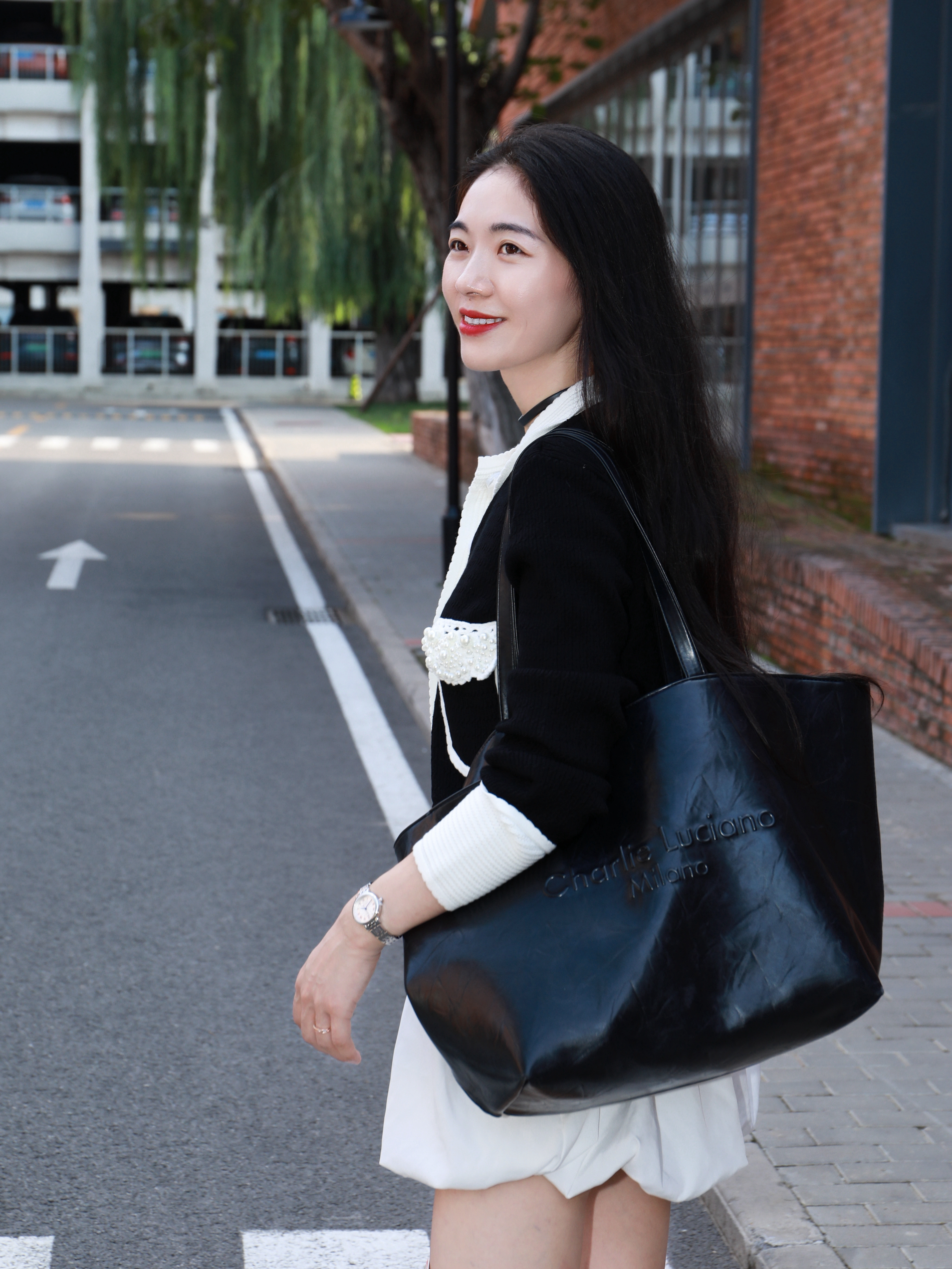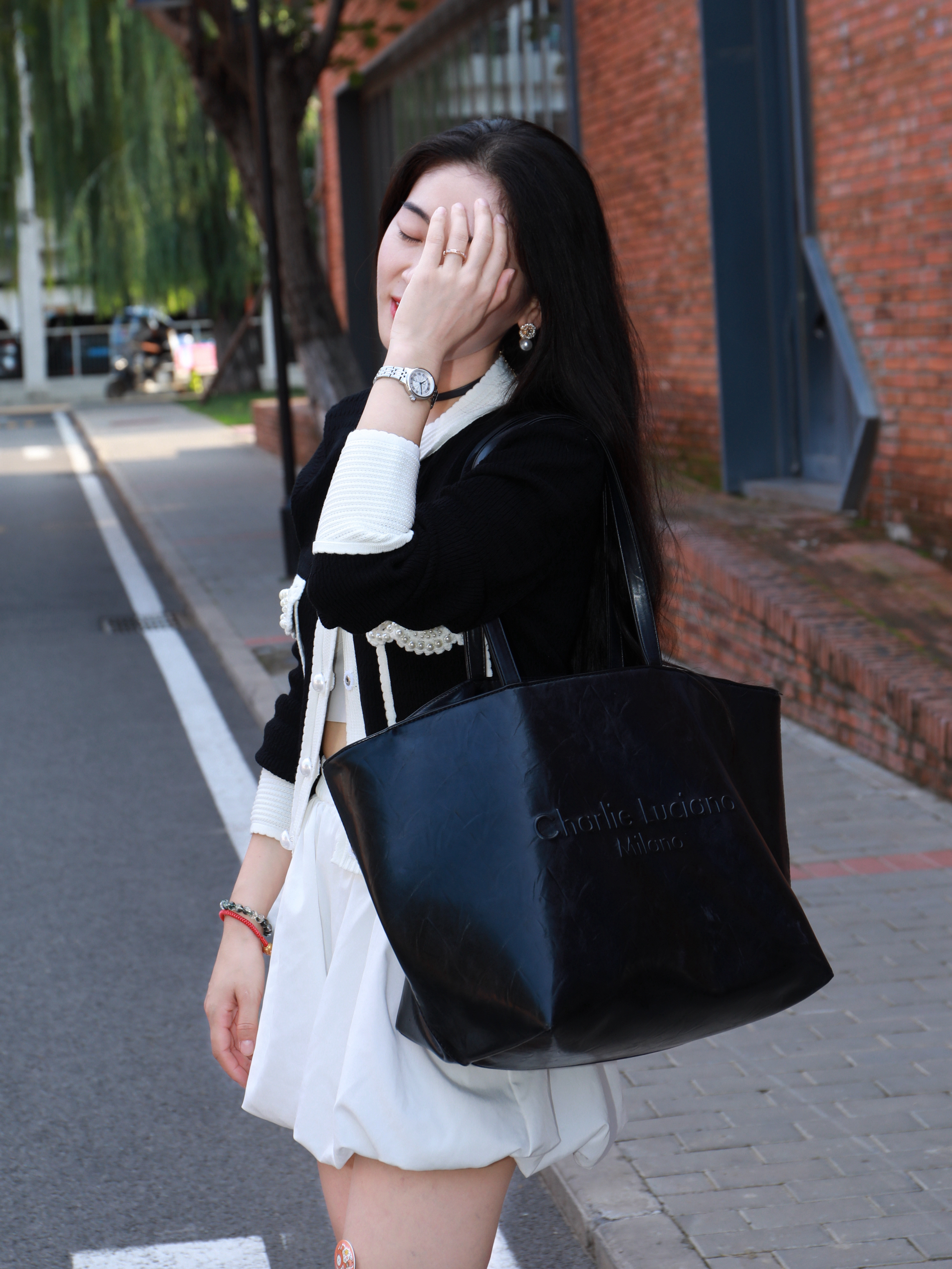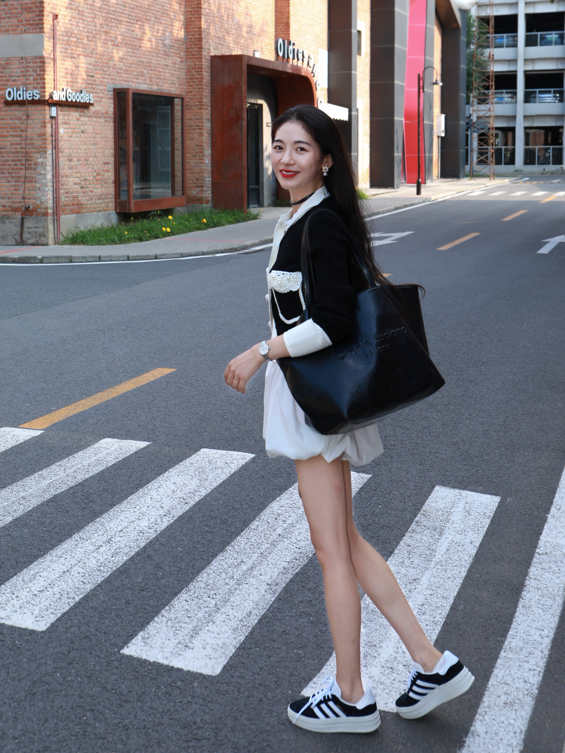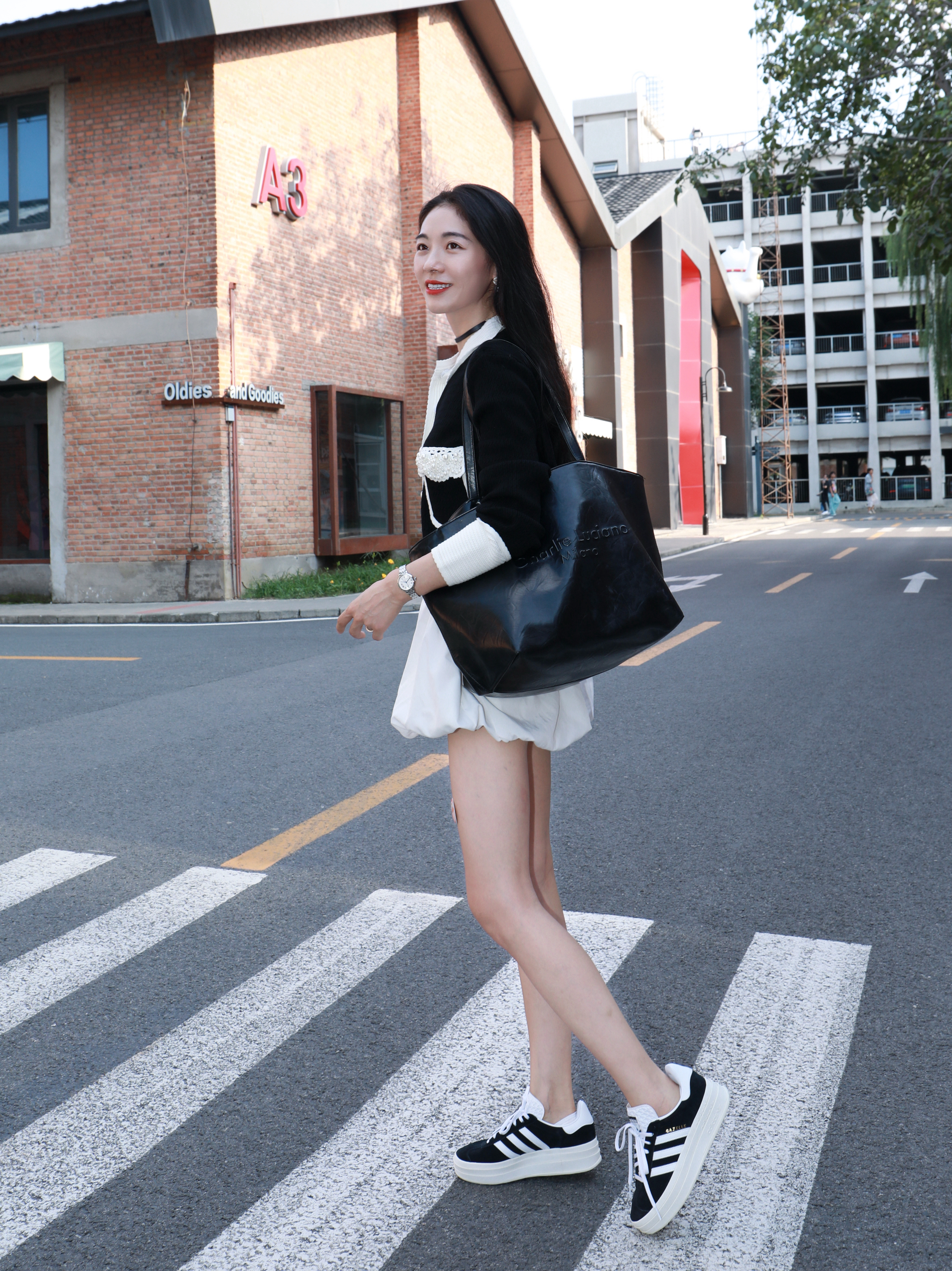 当我不知道怎么穿的时候 就应该混搭了😘 今天是法式精致再加一点俏皮感 细节藏在手腕里 喜欢海鸥新款腕表⌚️ 钢带设计,带上冰冰凉凉的 表盘小小的,格外有精致大女主的感觉 黑色上衣搭配白色短裙 一整个法式女主✌️