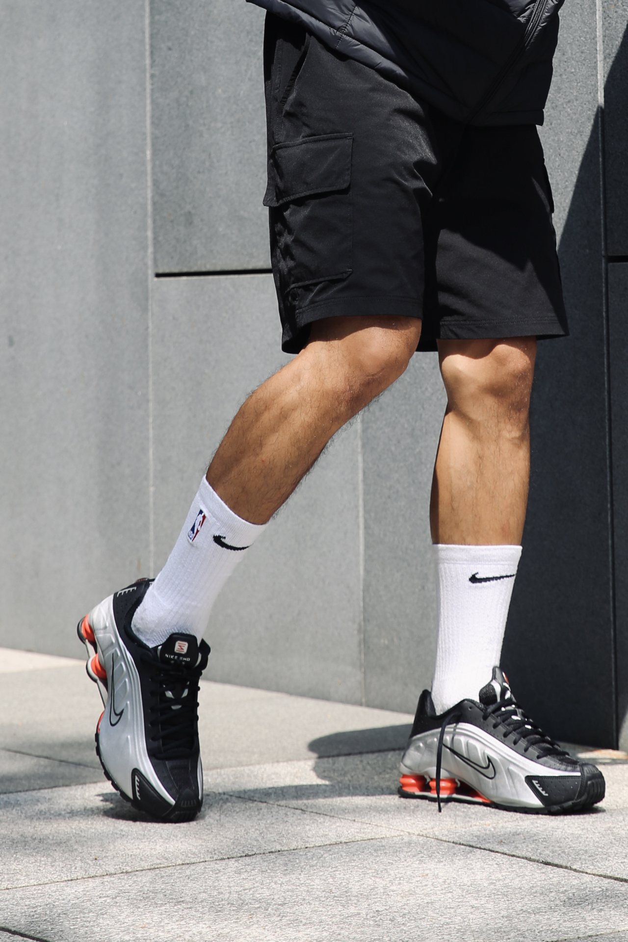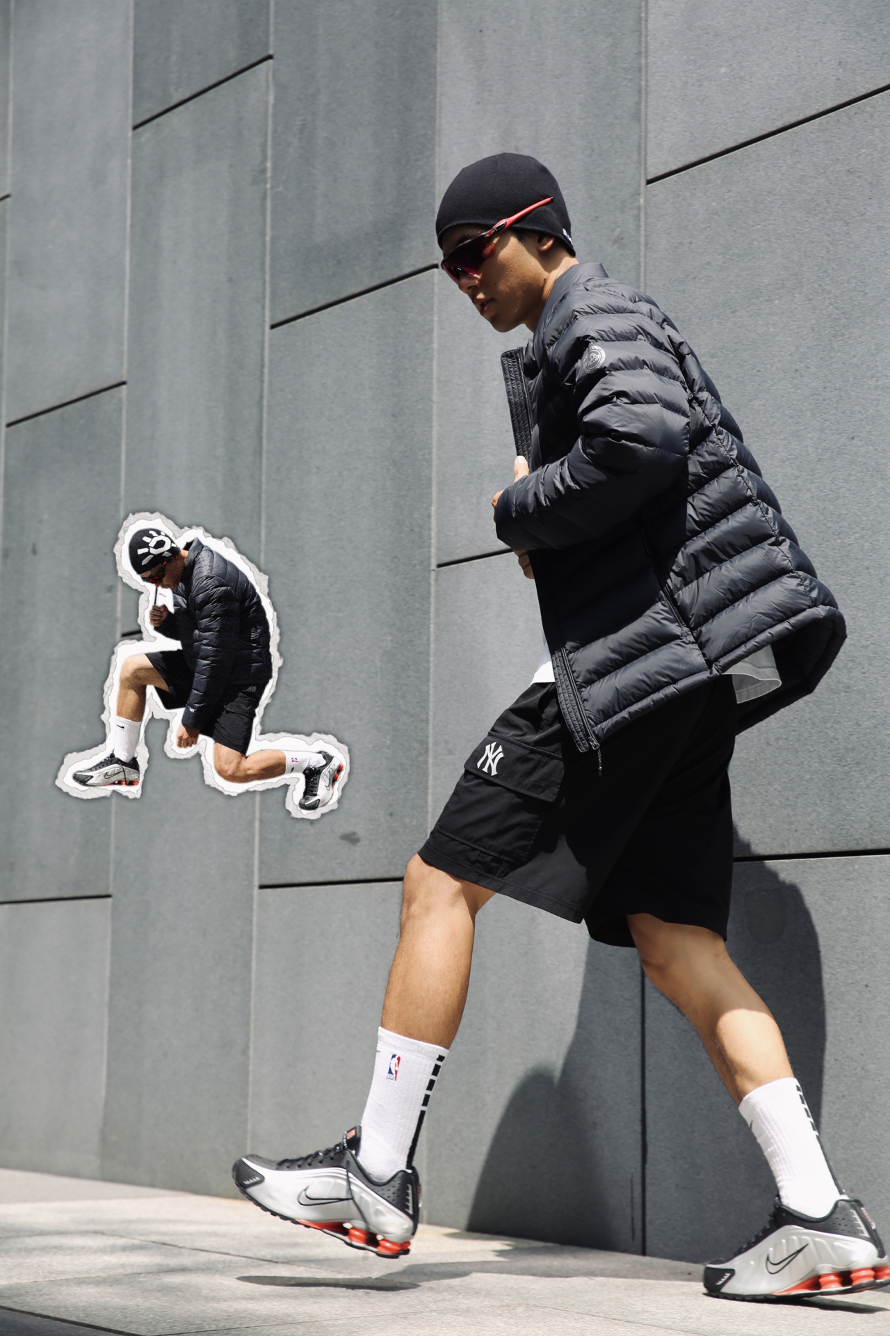 👕 白T打底套上黑色羽绒服,面包廓形让上身更有型。红色镜片撞色点缀,加满街头气场。 🩳 下身工装短裤轻松透气,把羽绒的厚重感中和掉,露出腿部更显层次感,街头感直接拉满。 👟 脚上的 NIKE Shox R4 经典又抢眼,后跟气柱与红色镜片相呼应,形成强烈的视觉冲击,走路就是稳稳的焦点。 ✨ 谁说羽绒服只能臃肿?搭配对了,街头vibe一样拿捏! #街头vibe包帅的
