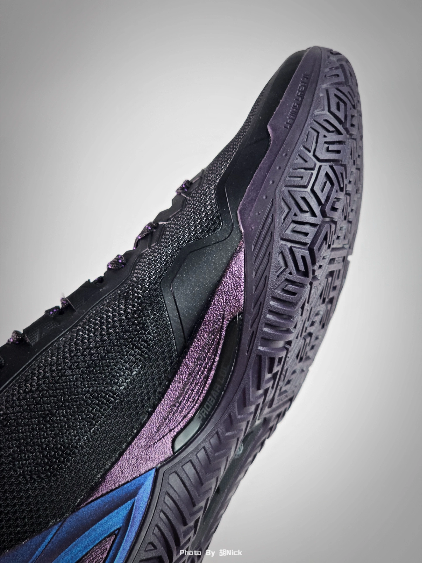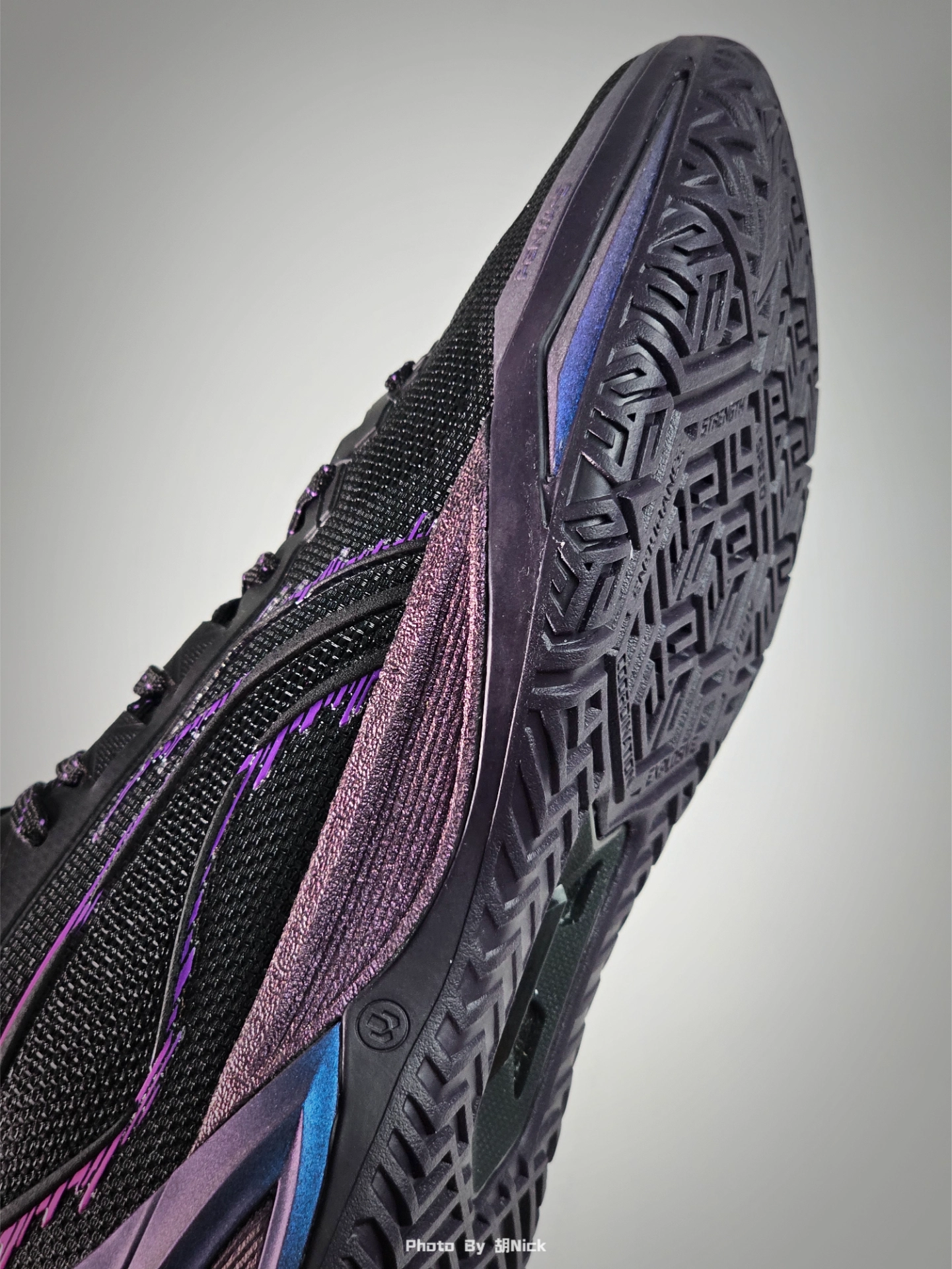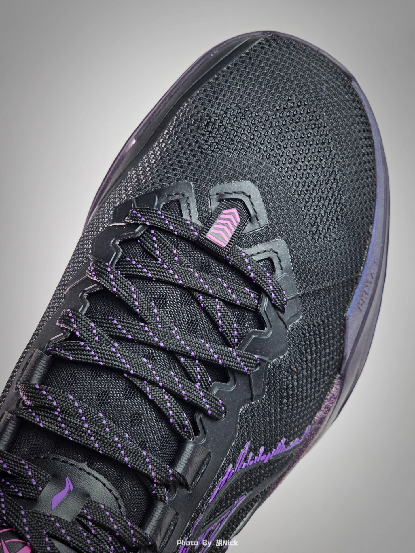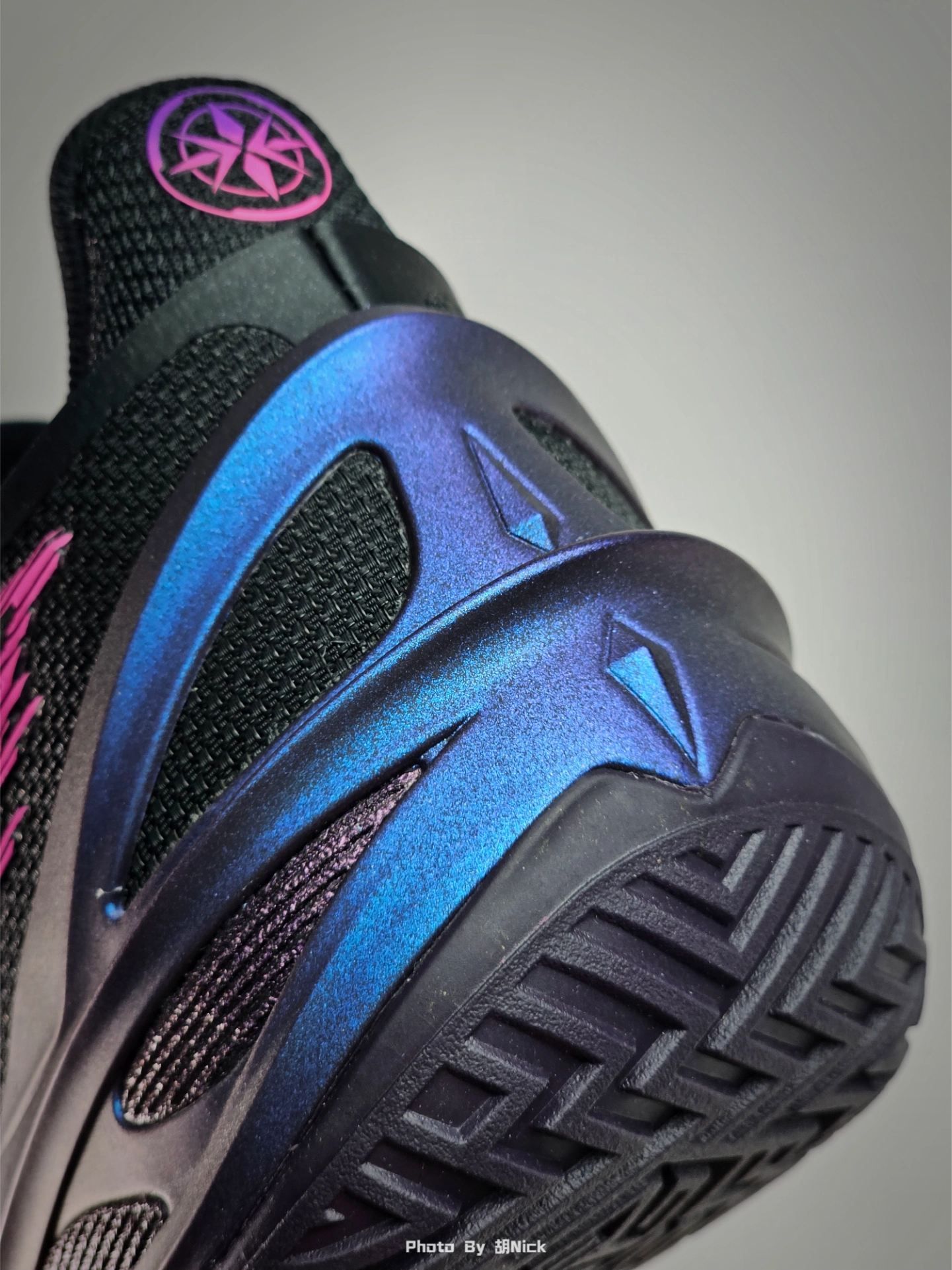 利刃系列的每一次迭代升级,对实战党来说可能都算是一次“球鞋盛宴”,这次利刃6首发的三个配色,我觉得这双暗色系的紫萤石更对我的胃口,深色系渐变紫色的鞋身颜值很高而且这个色系还会比较耐脏。 脚感方面我觉得这次䨻科技的调校依旧在线,后掌因为取消PEBAX板材延伸,缓震更好一些,前掌的启动反馈非常迅速,加宽跖趾关节核心发力区后,回弹体感也很强。得益于全新的PENTA-S支撑系统,整体横移、变向的反馈也非常...