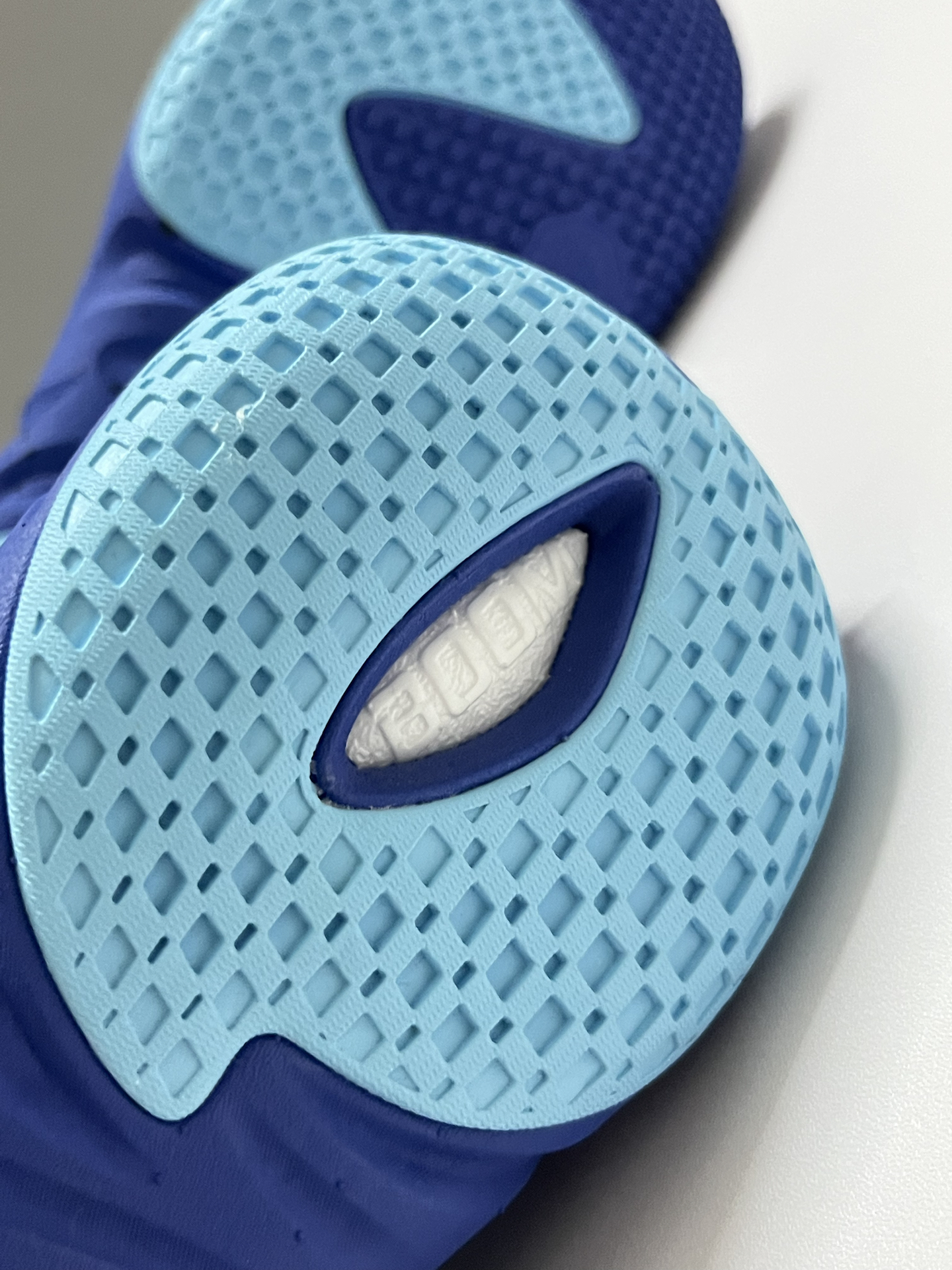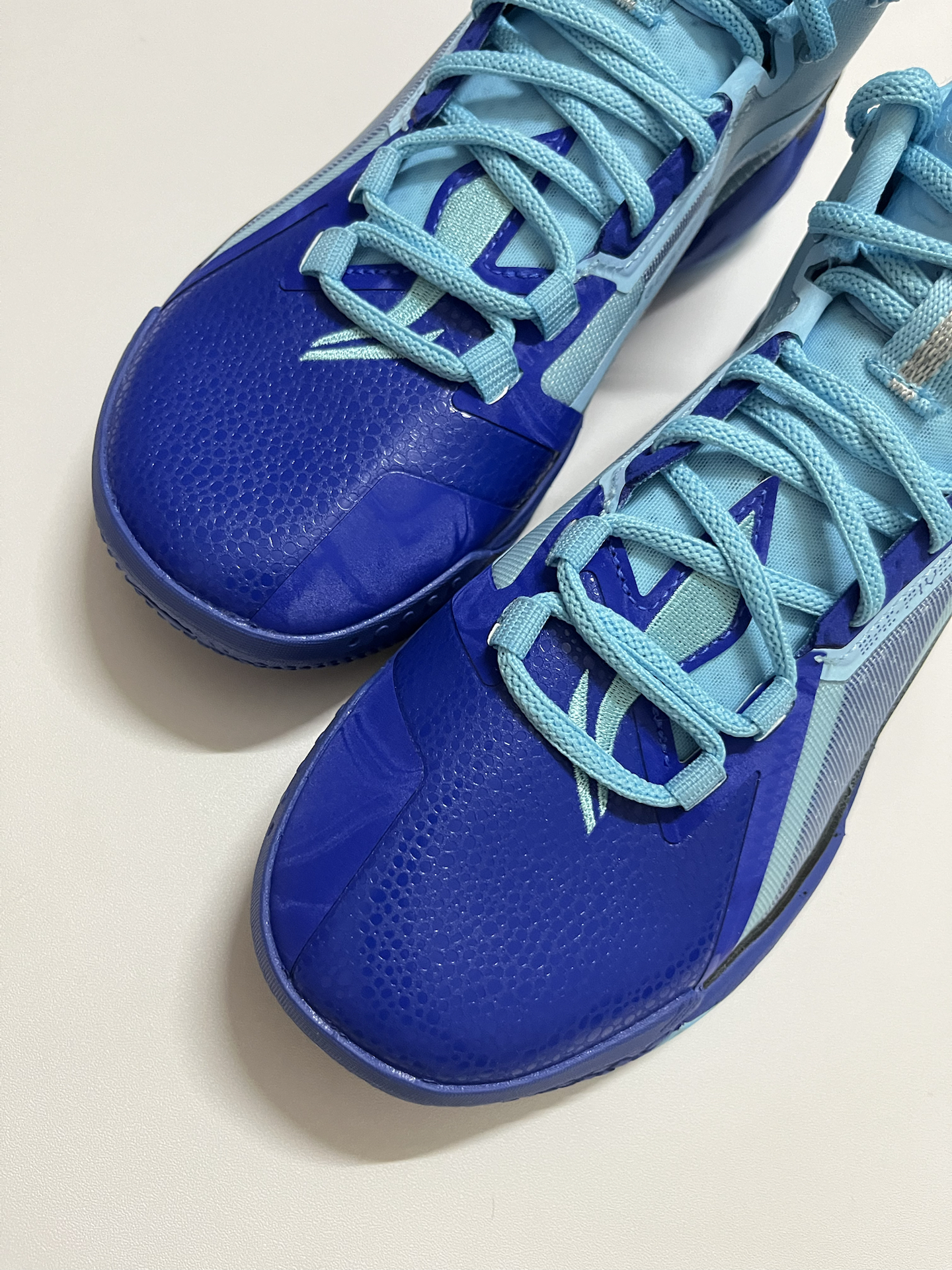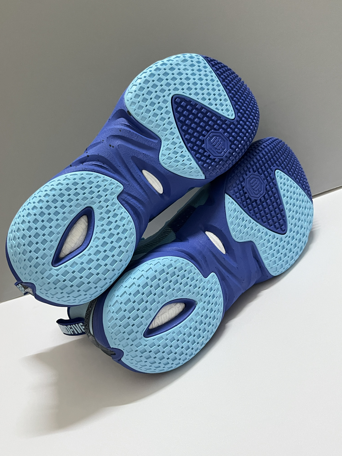 都说反伍4抗扭转性能差,但是除此之外,其他性能可谓拉满,厚实的䨻科技,脚感舒适澎湃,皮革加轻薄的鞋面,兼顾强度和透气性。主要虽然是高帮鞋但是重量控制很不错,单只42码重量只有350克左右哦!梦幻蓝的配色,也是非常好看的。 #一种很新的秀鞋方式 #一脚蹬进秋天 #球鞋真心话 #2025年中球鞋大盘点 #七夕恋爱Buff加满