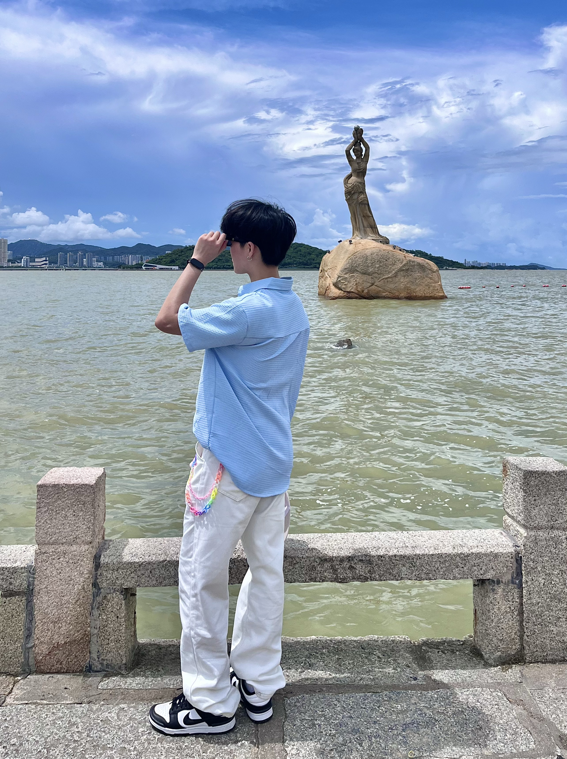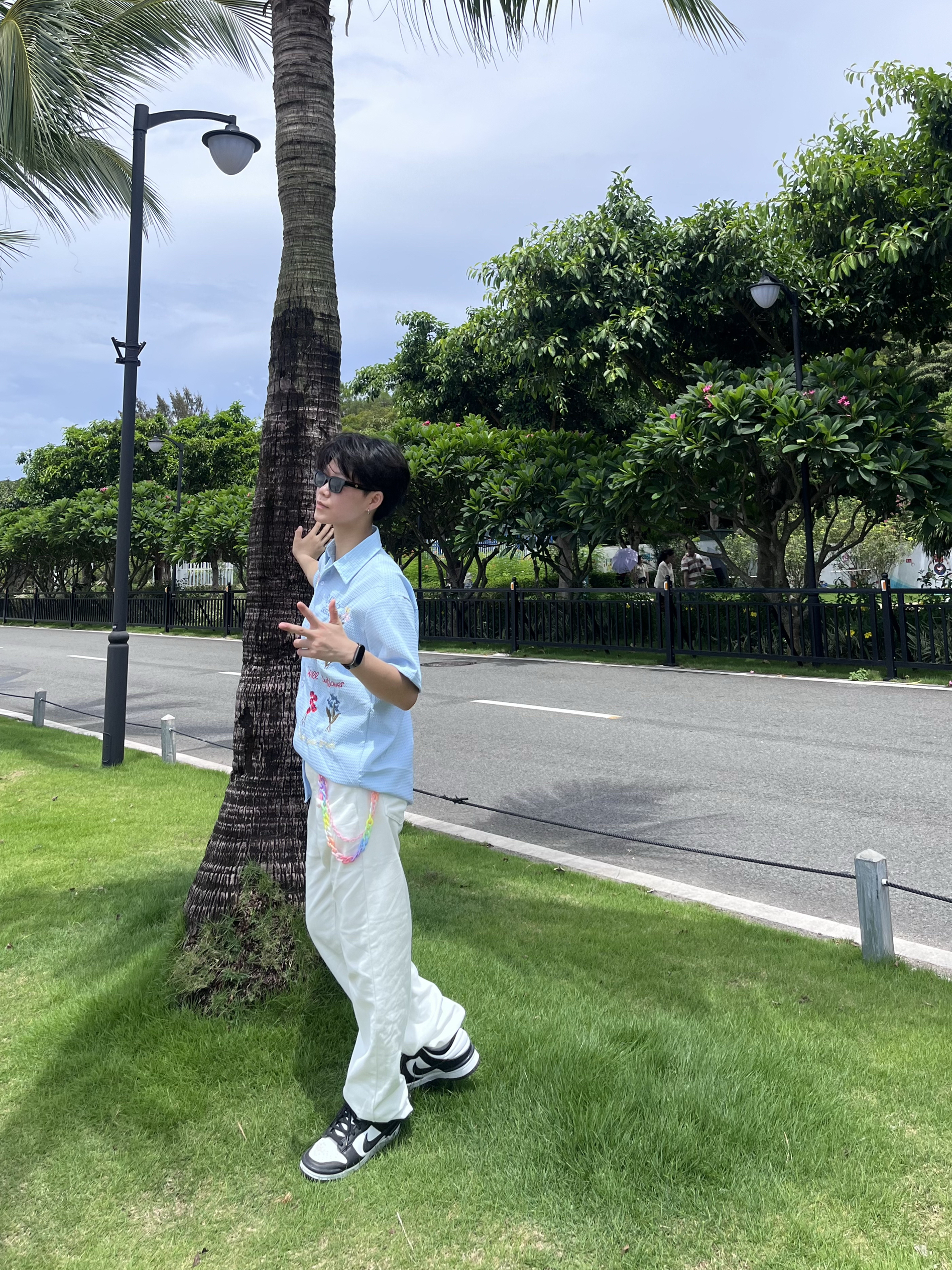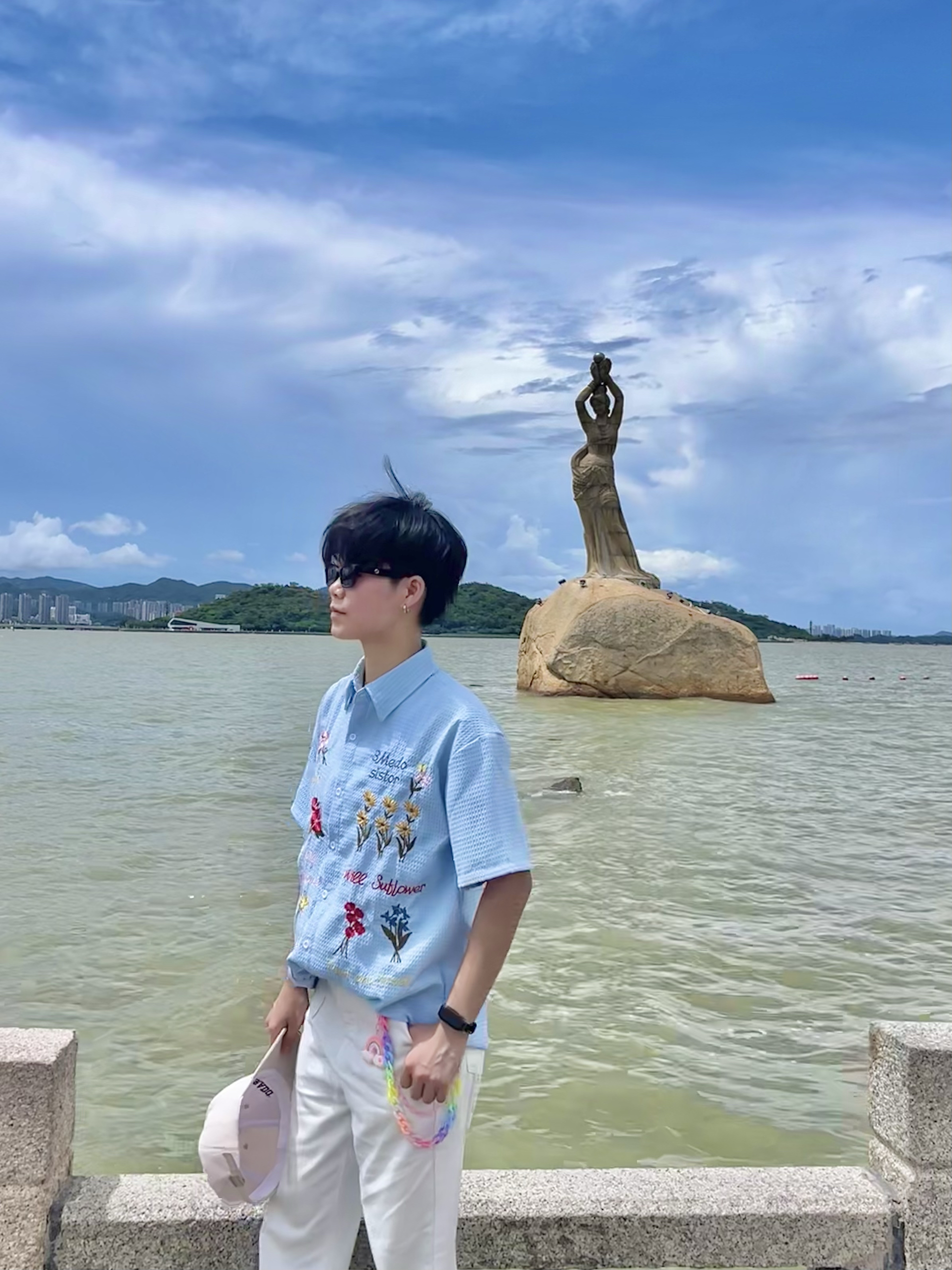 谁说穿搭要分男女?这套「海盐汽水」配色组合,才是夏日海边的正确打开方式!清爽、出片、不挑人,关键性价比巨高! · 👕配色无敌:低饱和度蓝底+白色花卉印花,黄黑皮友好,显白效果一绝,与蓝天大海背景完美融合。 · 版型关键:选择宽松落肩版型(Unisex),男女都能穿出随性慵懒感 · 👖版型选择:直筒是最不挑身材的万能裤型,无论什么腿型都能修饰得笔直。选择有弹力的薄款,活动方便不闷热...