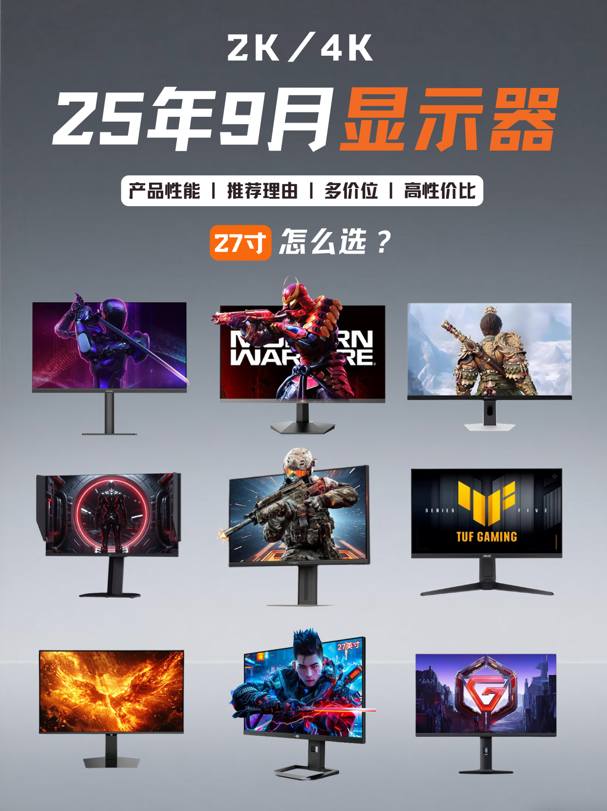 📅 9月显示器选购指南来啦! 高性价比+高性能的真香显示器,游戏党、设计党、观影党都能找到心动款👇 🔆 SANC G72Max 增强版:同级越级的500尼特亮度、面板均匀性极佳,猫头鹰视野功能+全程DC调光+硬件低蓝光,游戏用户福音! ⚡ HKC G27H2 Max:超频220Hz高刷、亮度表现优秀、色准色温都准,响应仅3.05ms,轻度设计工作也能hold住。 🎨 KTC 大师27M1:标...