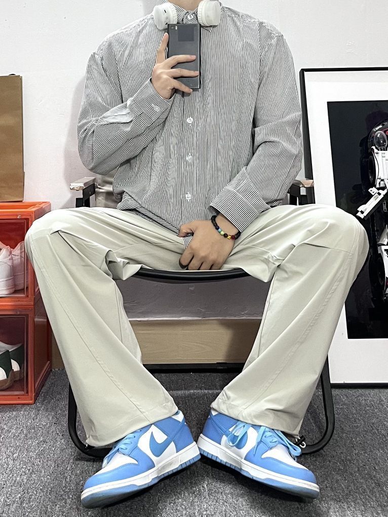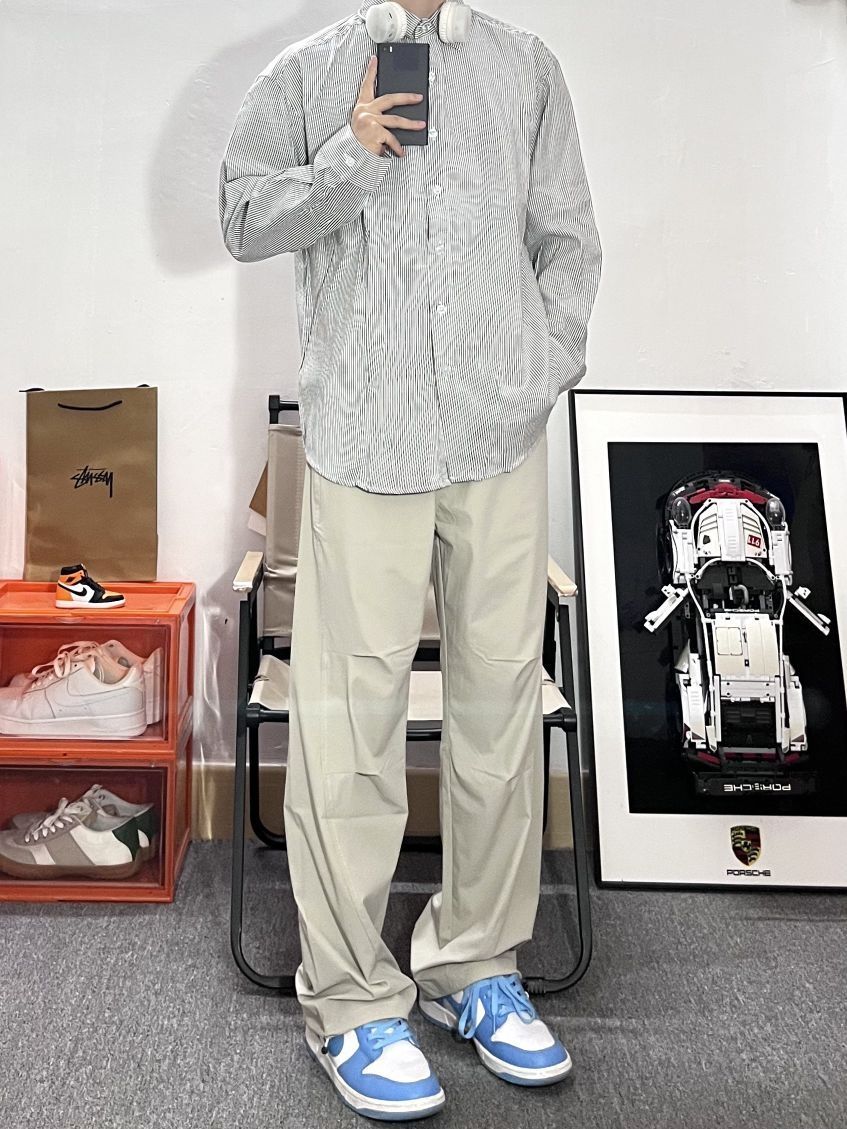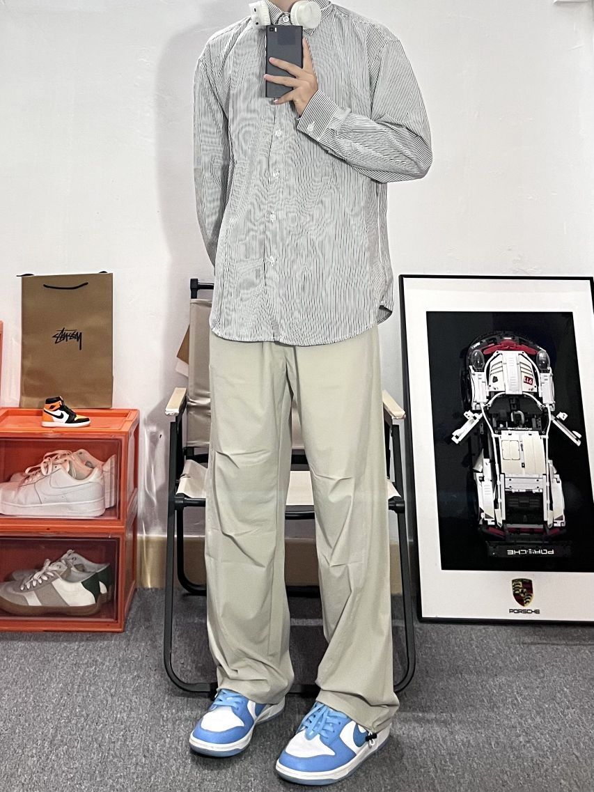 哈喽这里是pupu同鞋🏄🏻♂️ ——————————— · 👔: 成为干净的男大只需要一件黑白衬衫 宽松的版型百搭不挑人cityboy既视感 · 👖: 搭配一条米白色的冲锋裤也是干干净净 自然的错落堆叠感很有街头vibe · 👟:dunk ——————————— 💁🏻♂️:170/115 以上都是个人观点🍟欢迎讨论