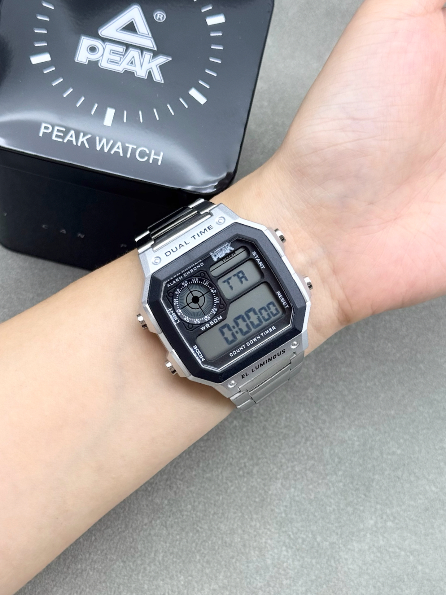 本篇笔记关联了Peak/匹克 经典复古系列 50米防水金属不锈钢表壳初高中防摔小方块电子男女同款手表 银色等商品,为用户提供真实的使用体验和购买参考。