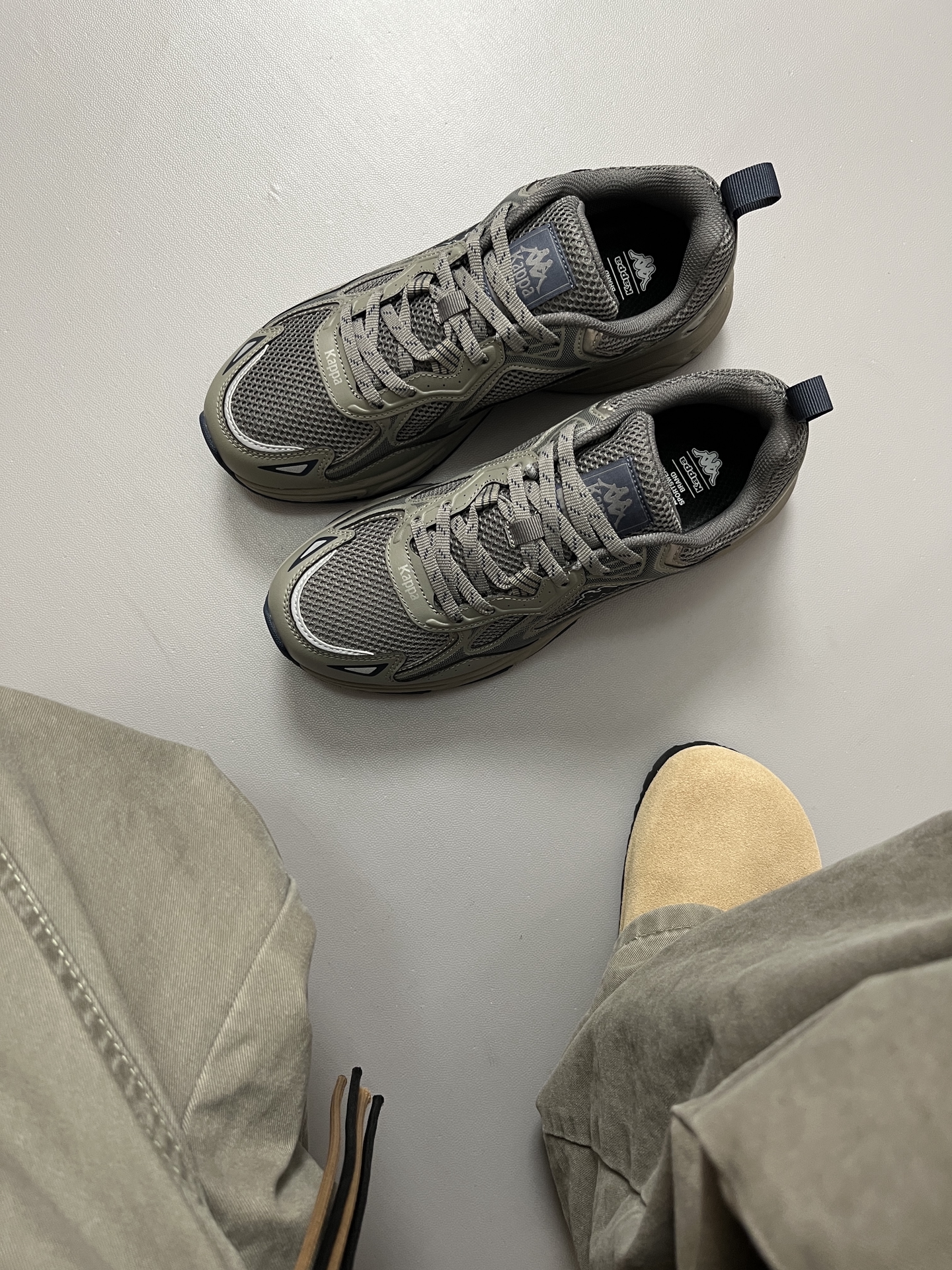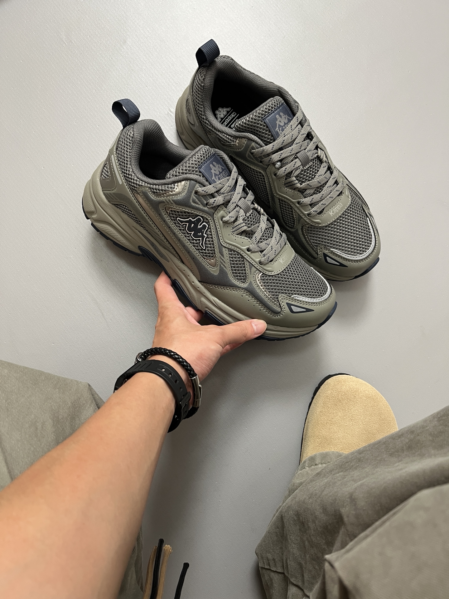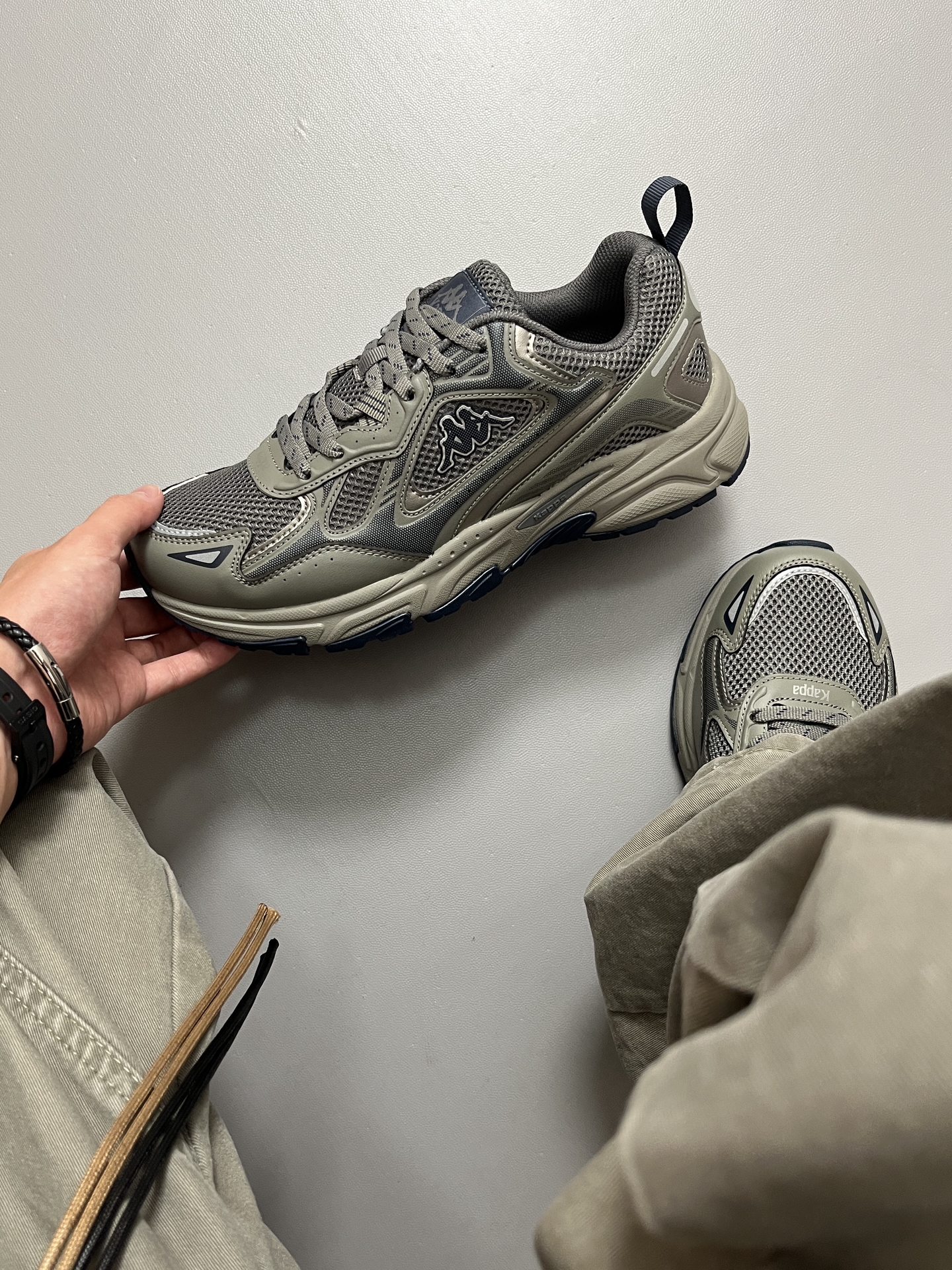 最近被问爆的 #Kappa 背靠背 老爹鞋!🔥 香根草绿🍃这个颜色真的绝,不挑人还自带秋日氛围感,配牛仔裤、工装裤或者运动套装复古感拉满!! ✅鞋面是网布+皮革拼接,透气性没得说,厚底设计悄悄拉长腿型,上脚瞬间增高2cm既视感。 ✅鞋垫软乎乎的,走久了也不累脚,橡胶大底抓地力强,雨天☁️出门也不打滑。 最戳我的是细节——背靠背Kappa logo低调又有辨识度,羽翼元素🍬让整双鞋多了点复古街...