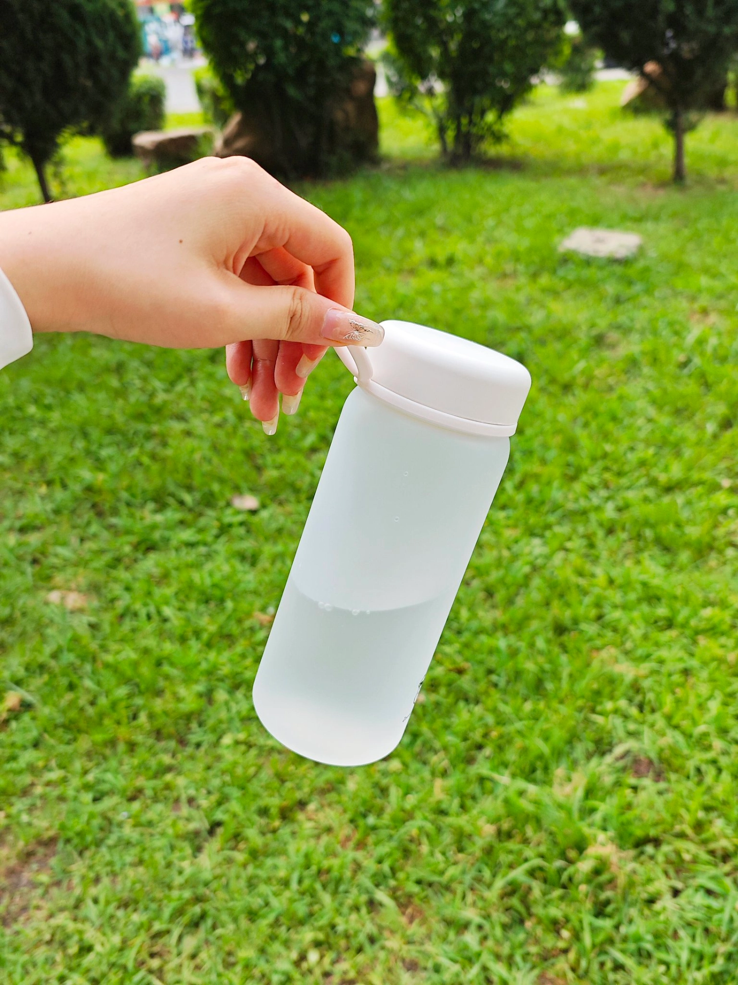 我挖到个手感像撸猫的磨砂水杯!奶白磨砂壳摸起来丝滑细腻,拿手里总想盘它~带提手出门拎着好方便,茶漏网超细,泡茶时茶叶根本不跑出来!夏天装果茶冷萃都好适配~唯一小遗憾是磨砂面容易留指纹,但看在颜值和实用性上我忍啦🥹