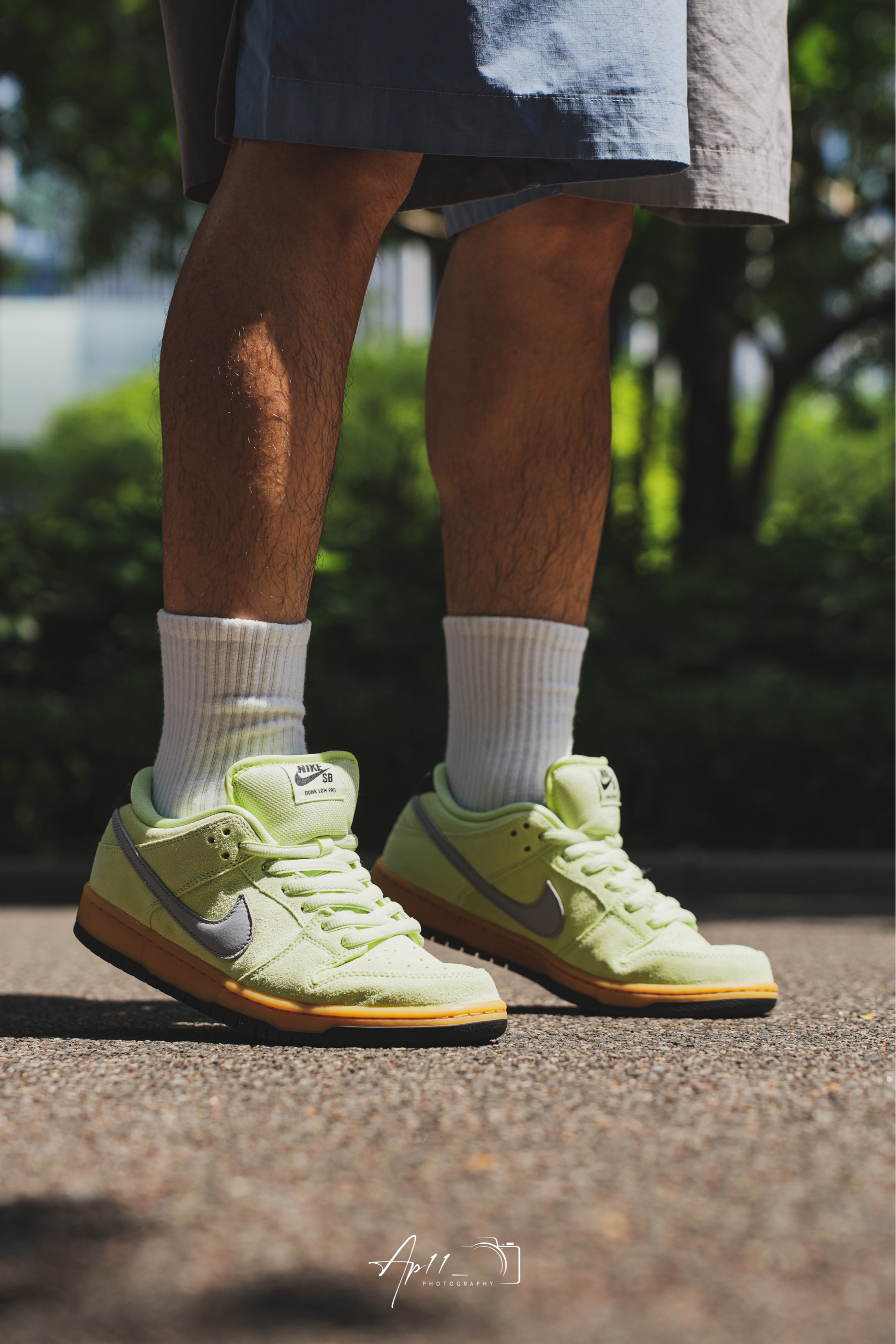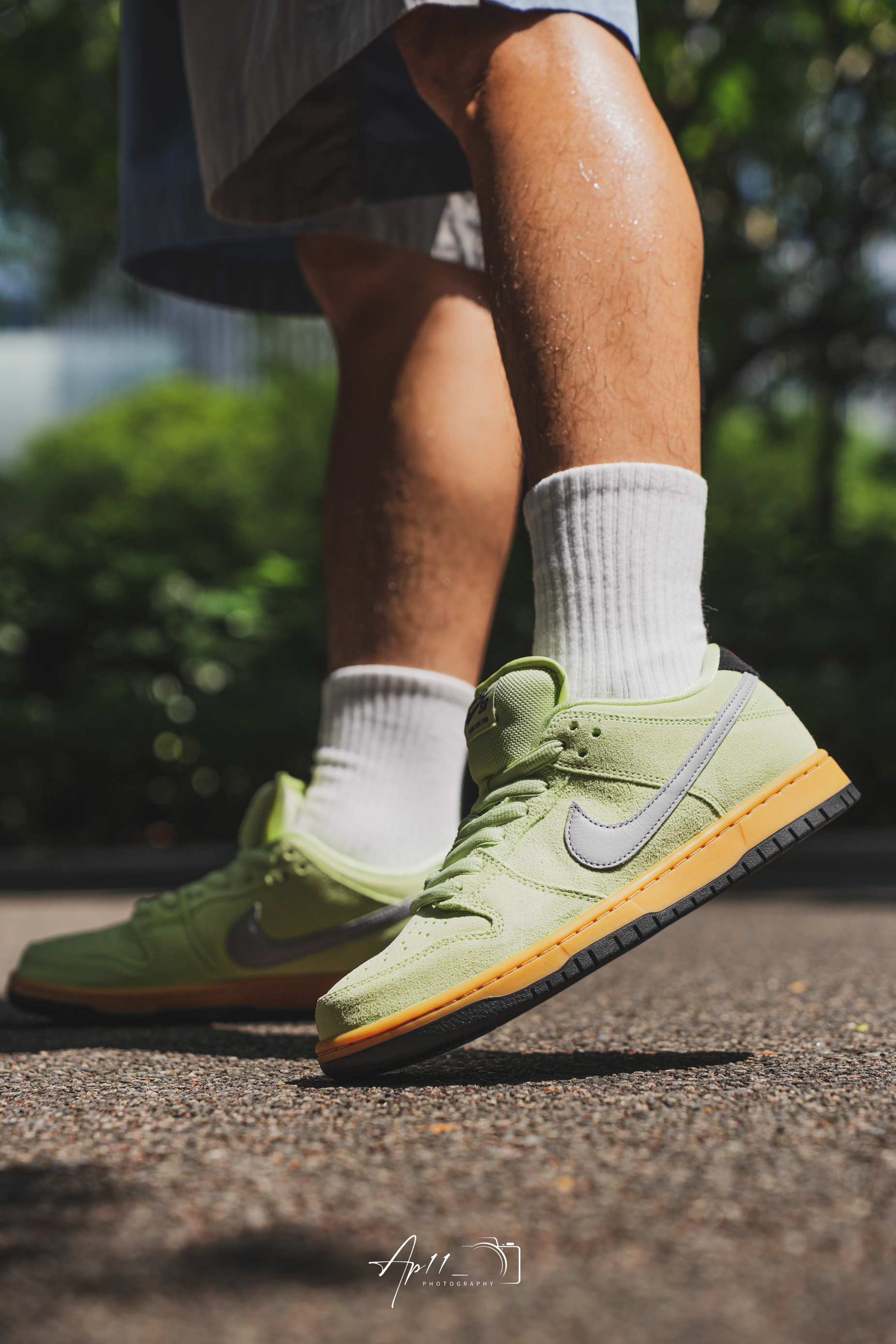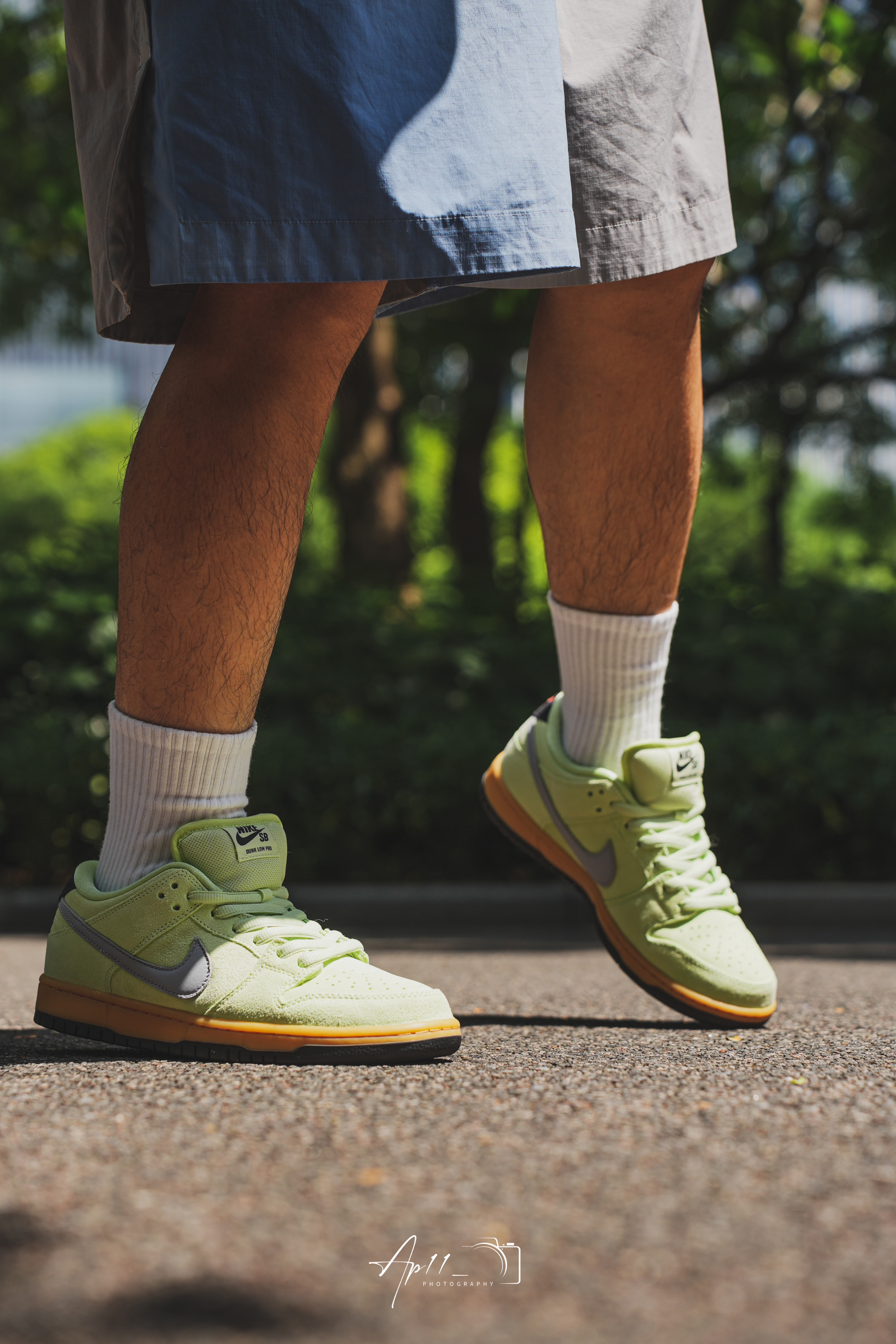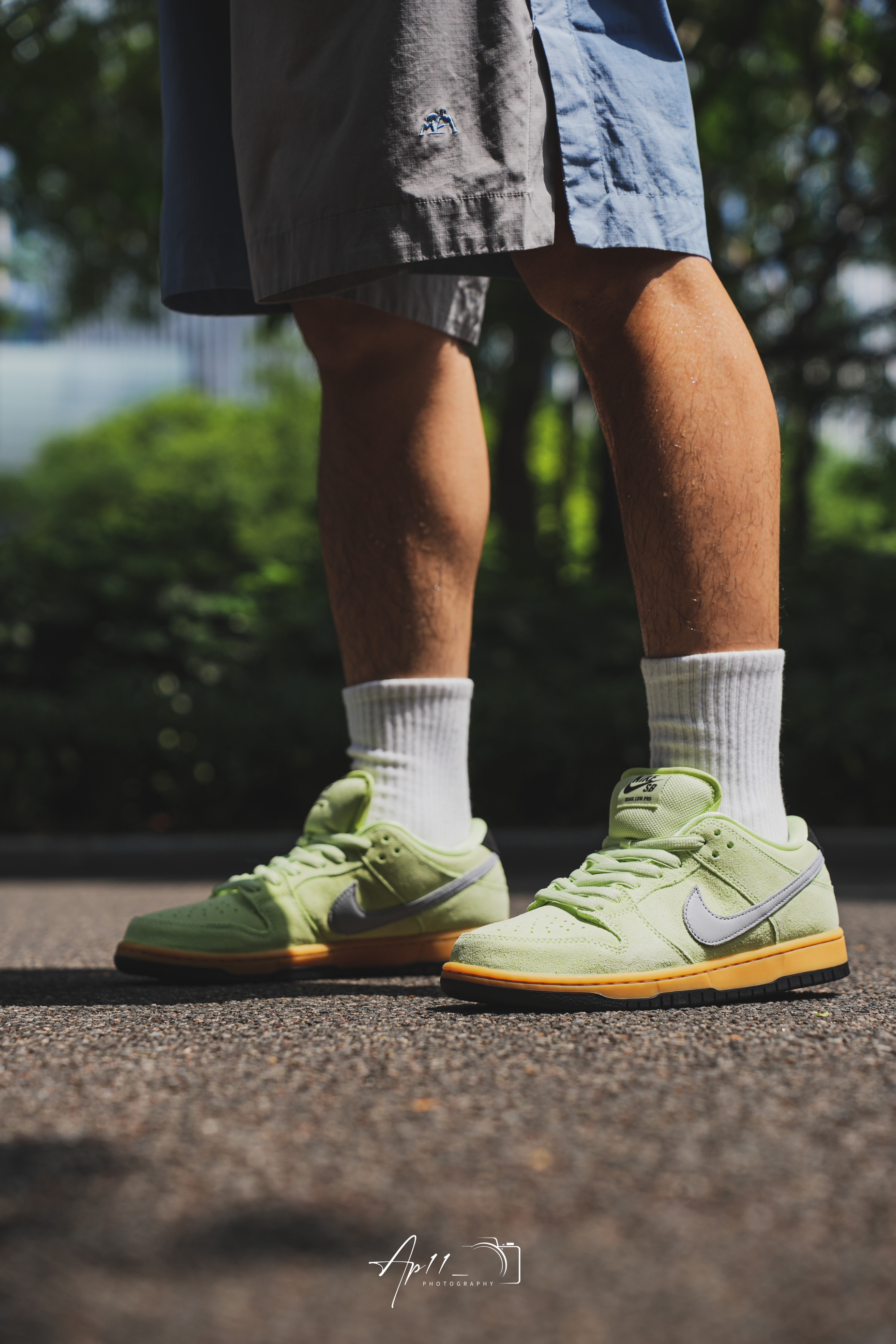 今天上脚的这双SB Dunk以开心果绿鞋面为主打,设计的一大亮点在于其独特的鞋舌标签设计,搭配浅色系的短裤,或休闲裤上脚还是比较清新亮眼的。