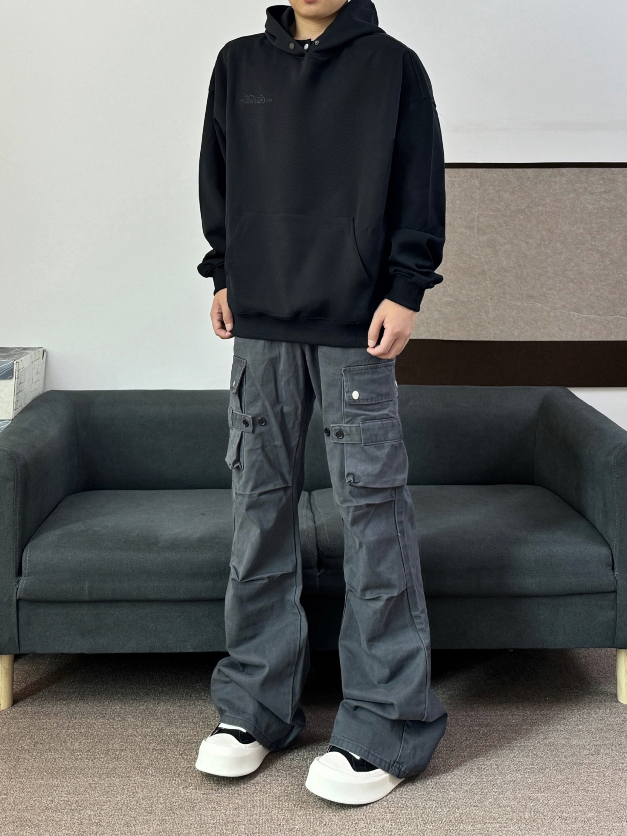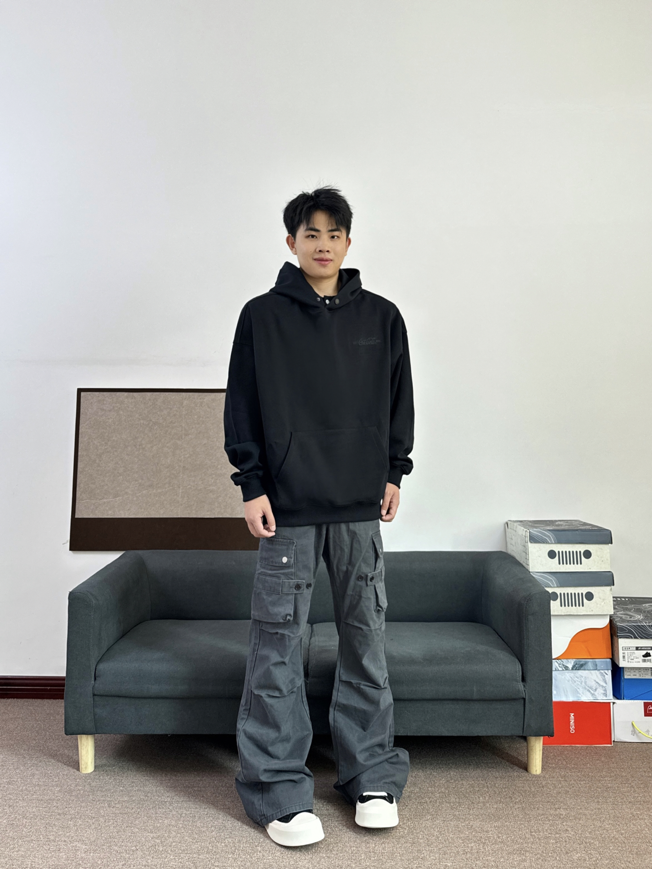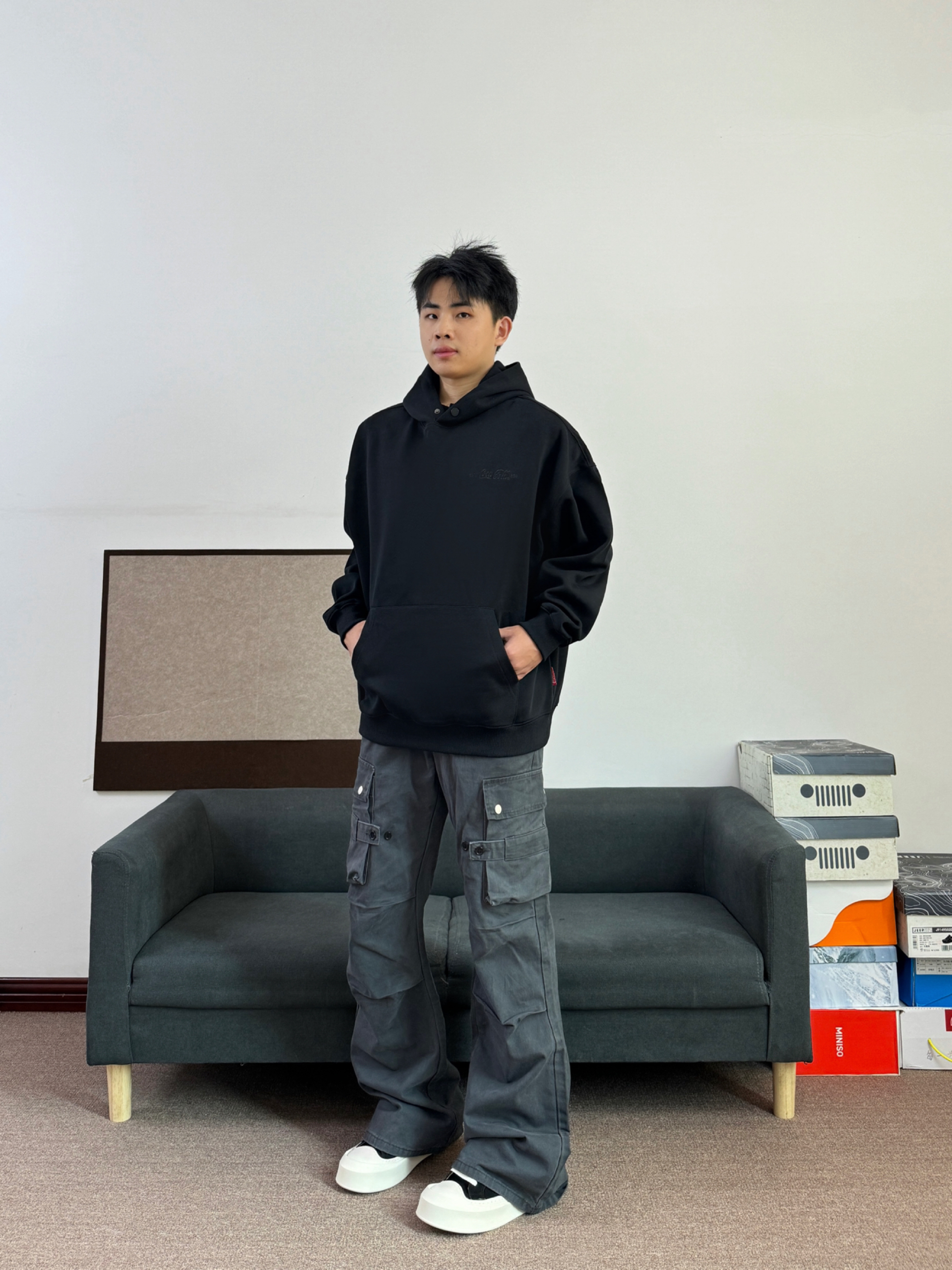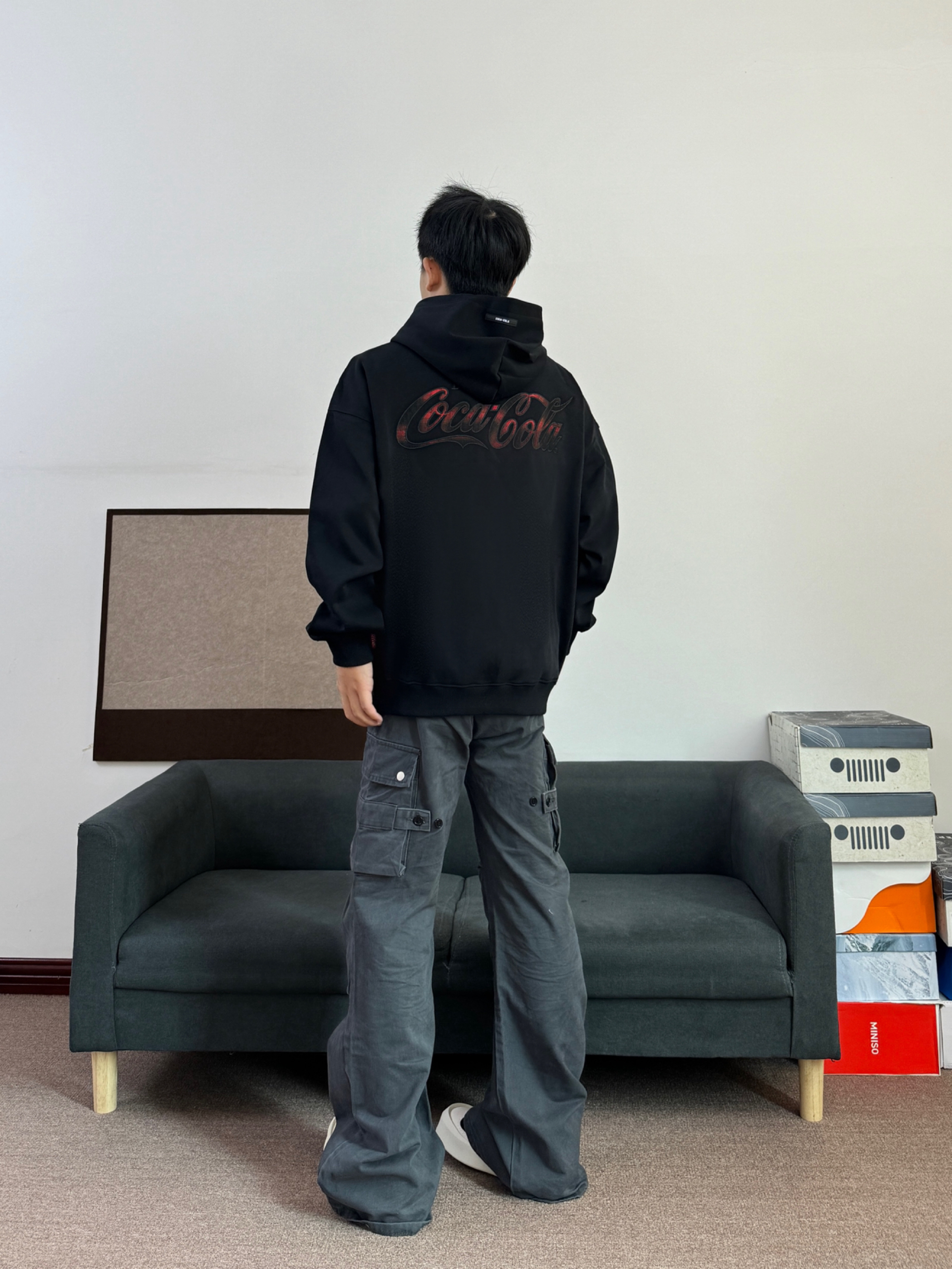 🔘搭配一件 Coca Cola 黑色连帽卫衣 后面的贴布刺绣感觉挺好看蛮有质感 上身版型会比较偏宽松挺好搭配出门 🔘裤子搭配一条深灰色工装裤 面料和版型都是我比较喜欢的风格 厚度感觉适中早秋穿刚刚好 上身是M码(身高170 体重110)