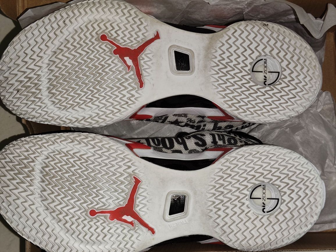 4.其他:重量很轻,体感很轻。非常透气,鞋垫也有透气孔,虽然脚趾会踩进孔里面,袜子薄的话会留下印子,不过好像有点用,感觉整体确实比鞋面更透气的aj37透气一点。一定要试穿,我买过42的黑红配色和43的,42上强度小拇指会磨,43又感觉太大了没包裹,这个配色鞋面密更高一点,透气性有一点点差。另外黑红配色鞋面弯折多了黑色线会磨损漏出白色底色,很难看。鞋口处的皮很容易刮花。因为有鞋舌装饰,调整鞋带比较麻烦。鞋帮处总感觉系不紧鞋带。全掌气垫感觉气压一般,穿久了也容易软。