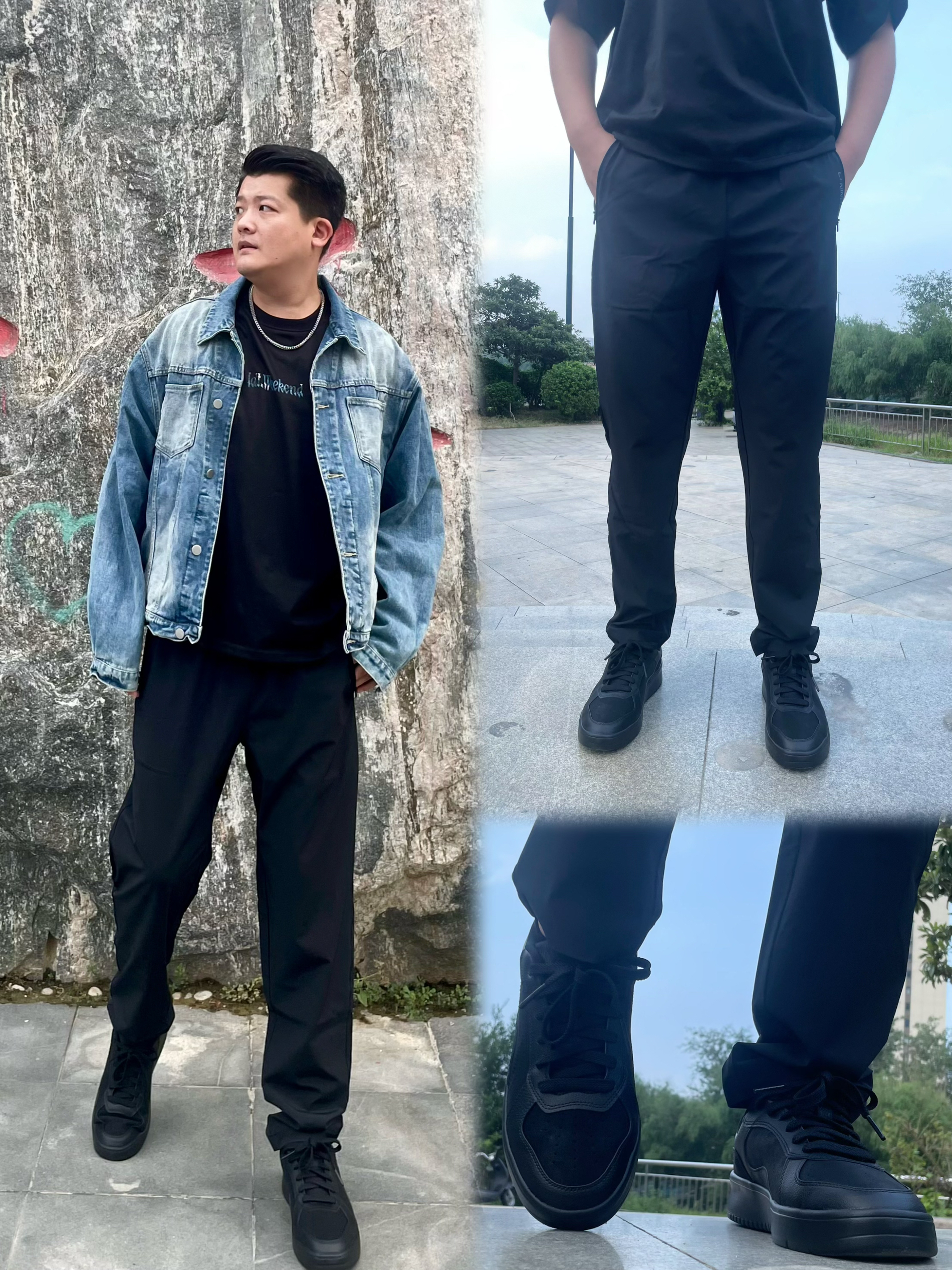 今天这一身穿搭可以横跨夏秋~ 身高:186cm 体重:90kg 尺码:3XL 🩳:李宁绅适裤 👟:李宁穗岁板鞋 裤子直筒设计,健身穿,或者商务通勤穿也都可以,我穿着透气性还行,胖的话记得选择大一码,这款裤子比较修身 再搭配黑色板鞋,鞋底不算硬,耐脏好打理,和这款黑色裤子搭配起来感觉还不错 最后来一个黑色上衣,一整个商务风,如果想要休闲也可外搭牛仔外套