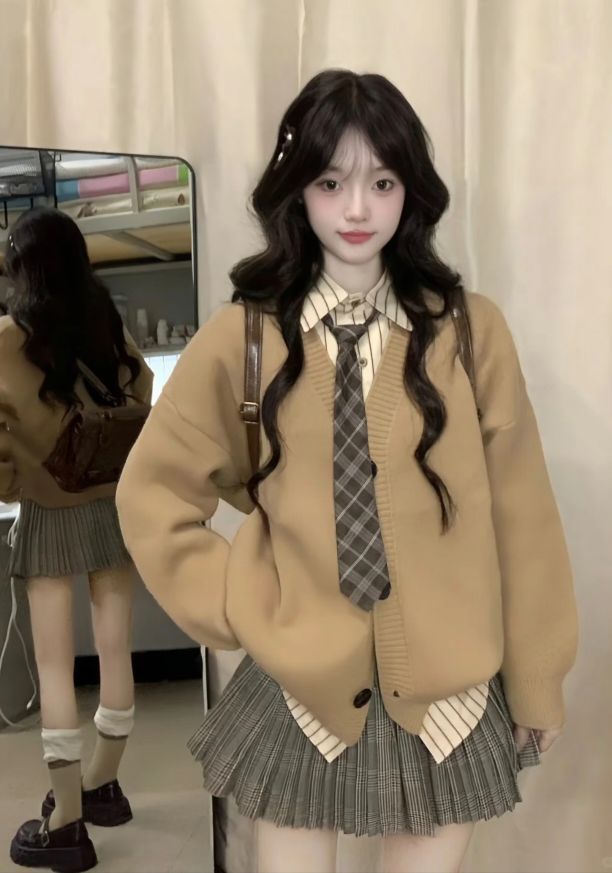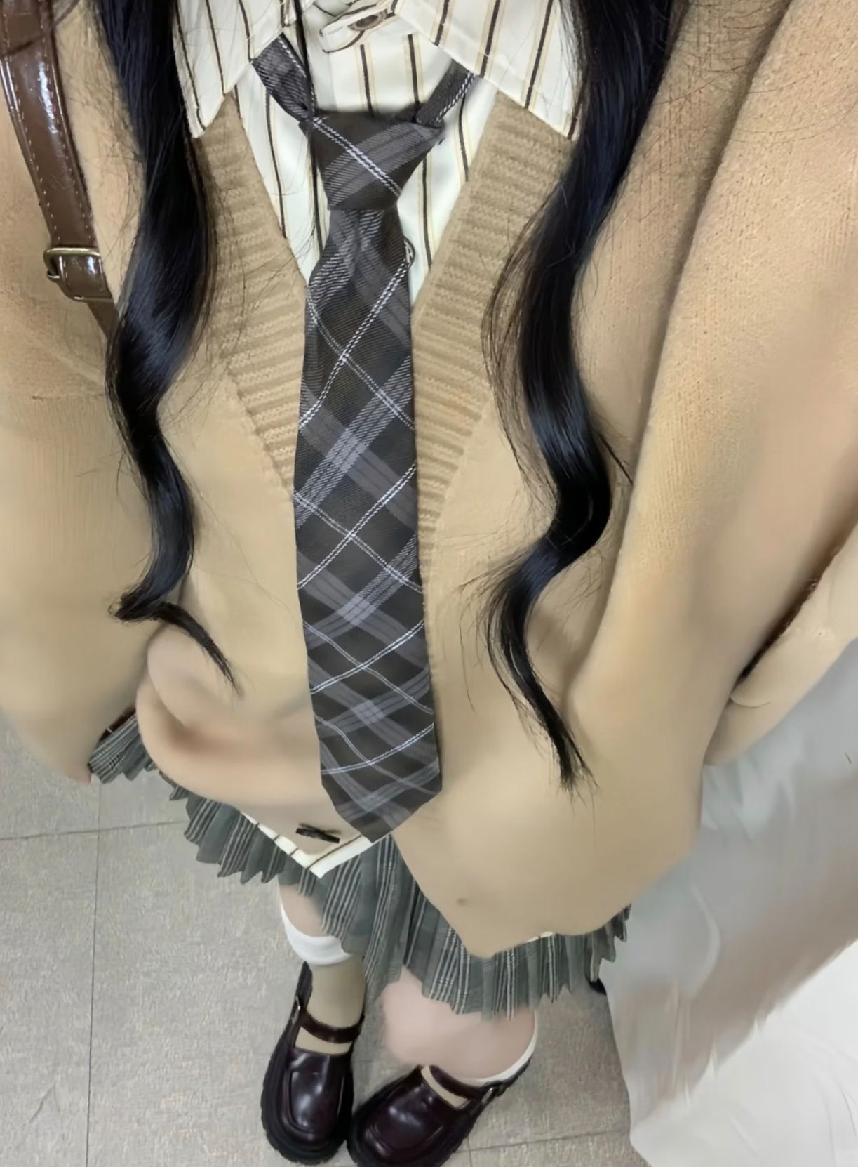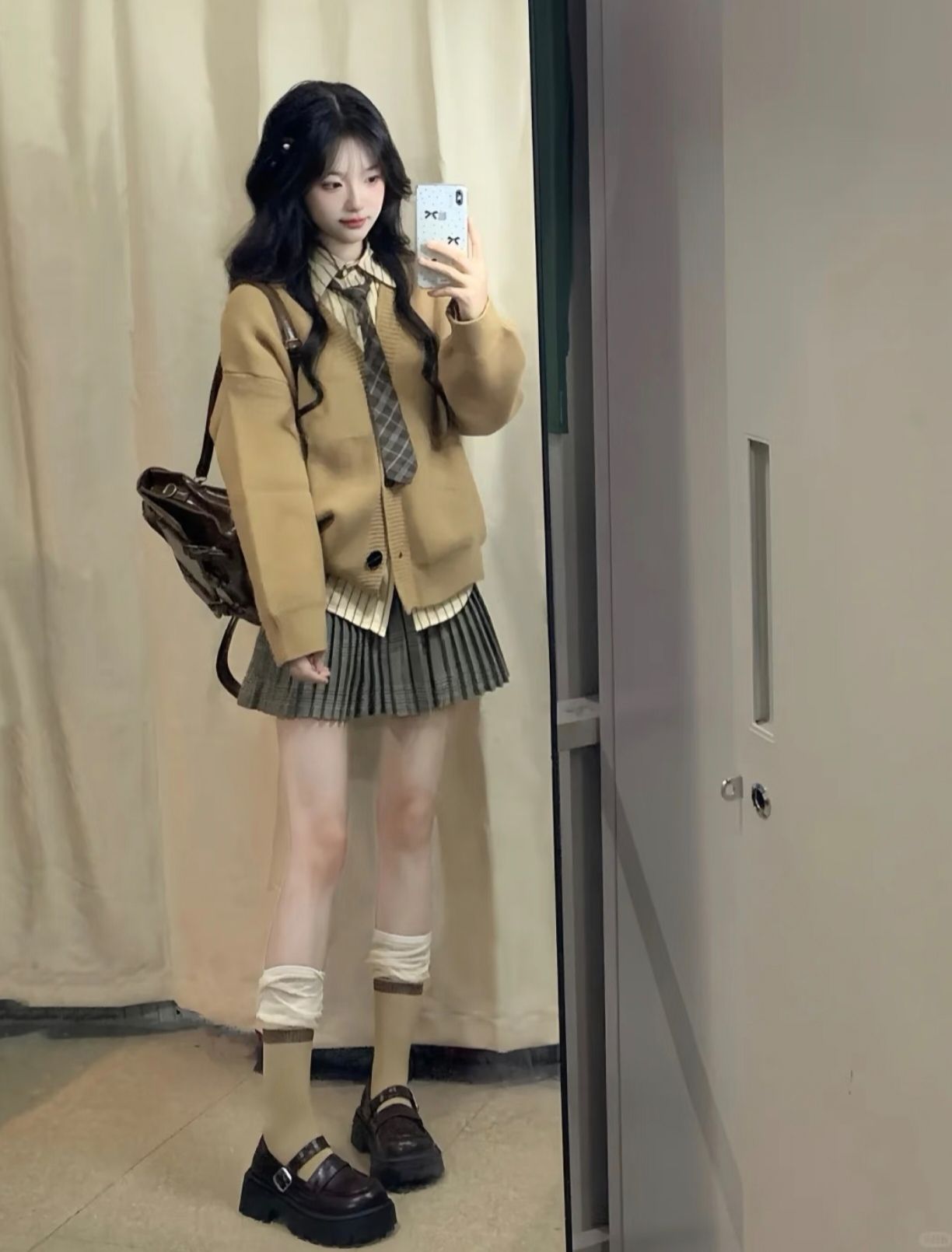 谁说学院风只能乖乖牌?这套穿搭把建筑感剪裁和校园感玩出了新花样~卡其色棒球服外套打破刻板印象,搭配格纹领带和百褶裙,既有学生气的灵动,又有不规则设计的小个性✨