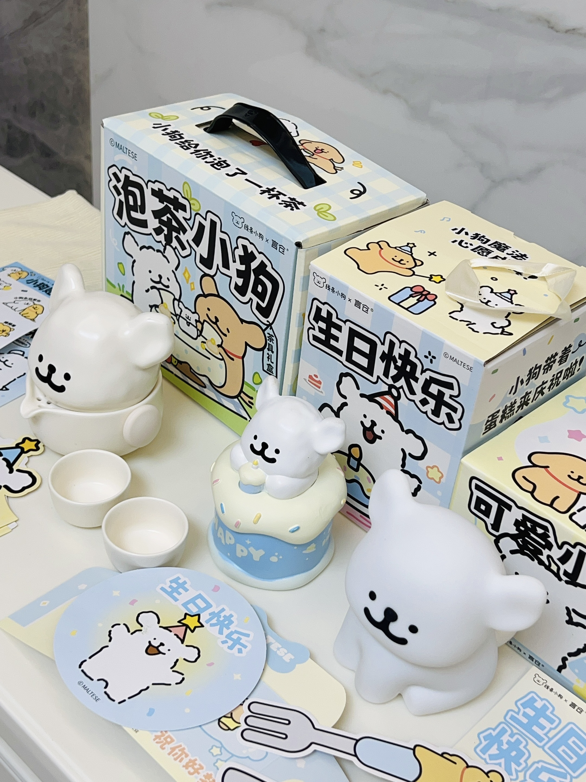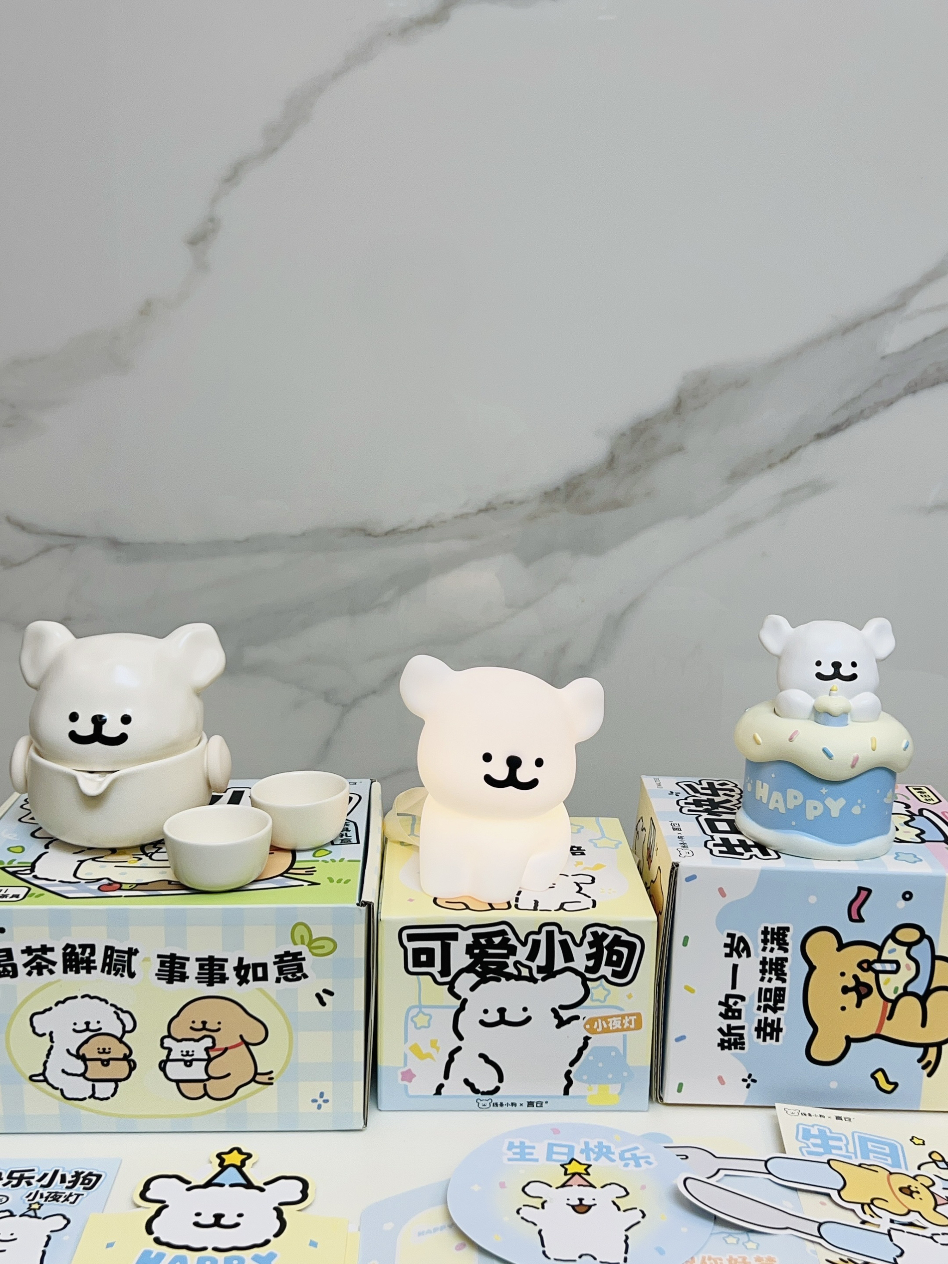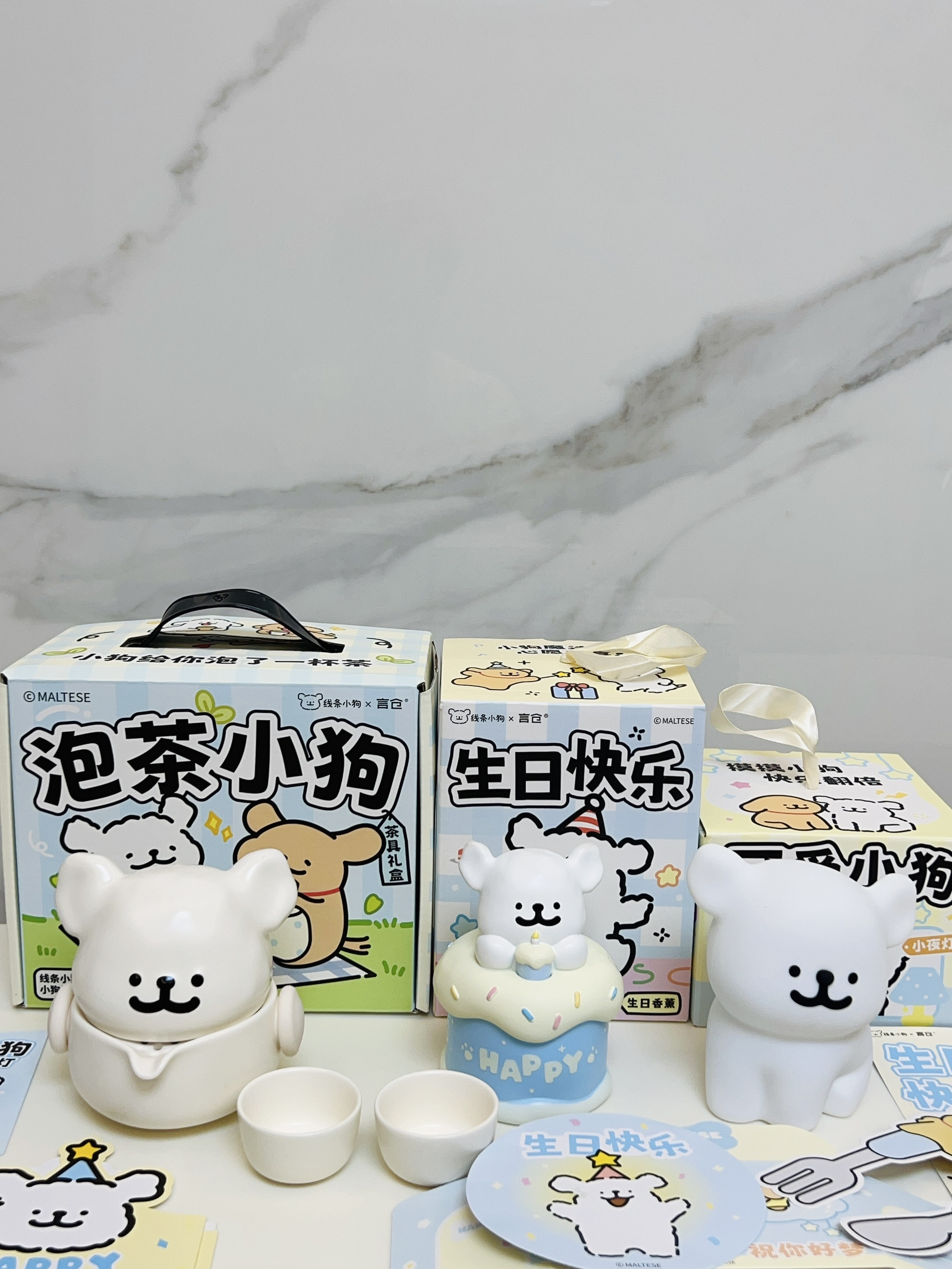 是我喜欢的言仓×线条小狗联名礼盒 有一个泡茶的茶具:茶壶和两个小茶杯 还有拍拍灯:轻轻一拍就会亮灯 半夜起来上厕所方便 最后还有一个香薰蜡烛🕯️:味道小清新我感觉蛮好闻的 这些用来放在房间当摆饰都可以 礼盒包装精致 送人自用都可以的
