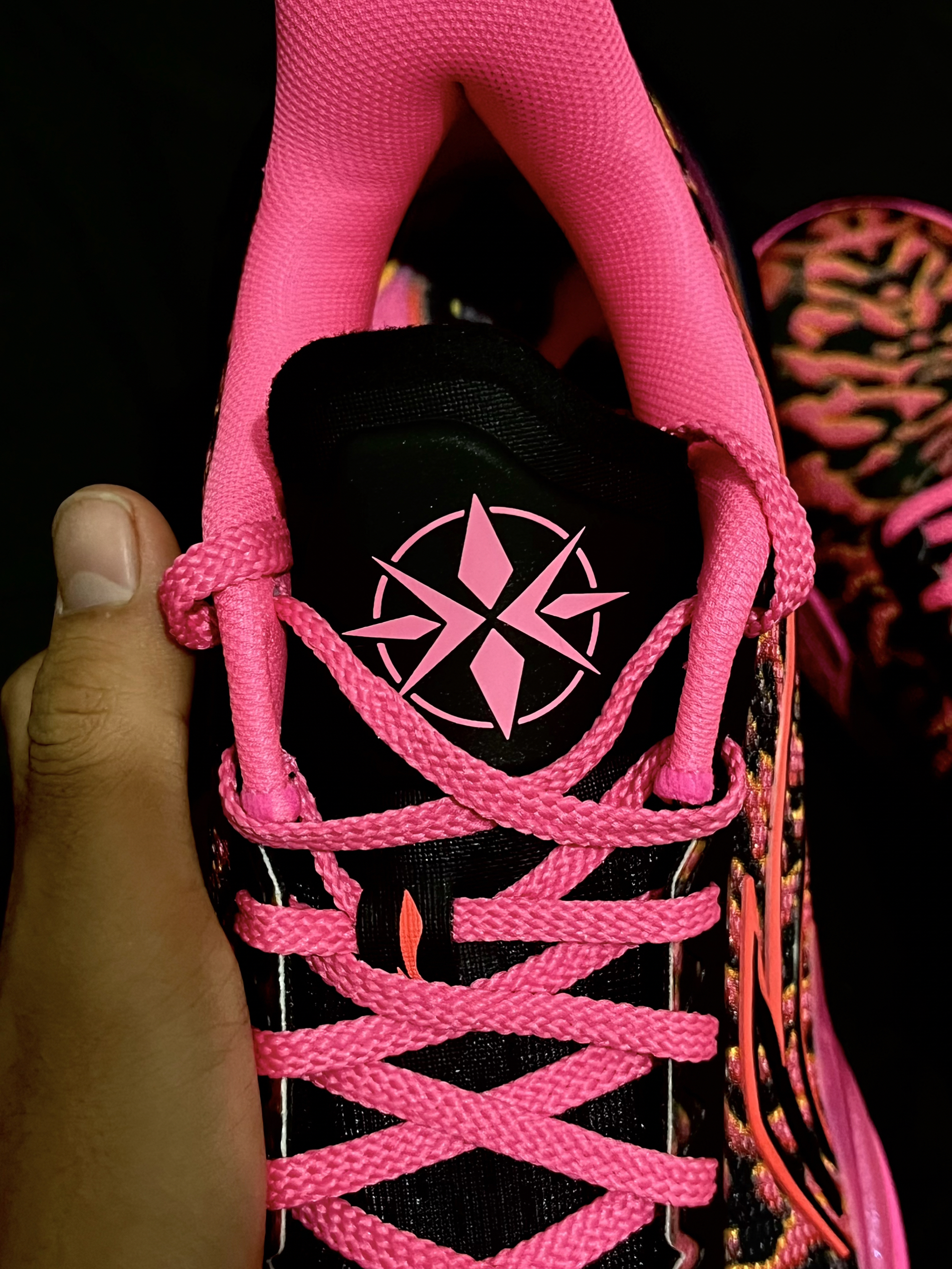 终于看到这双安踏欧文二代加强版的真面目了,他与普通班不同的是鞋身中间加了金腰带样式的绑带,鞋子全身深蓝色 整体还是很帅的。 另外还有爆出狂潮五pro有新配色,看上去真的超帅,不知道安踏官方会不会发售,可以期待一下