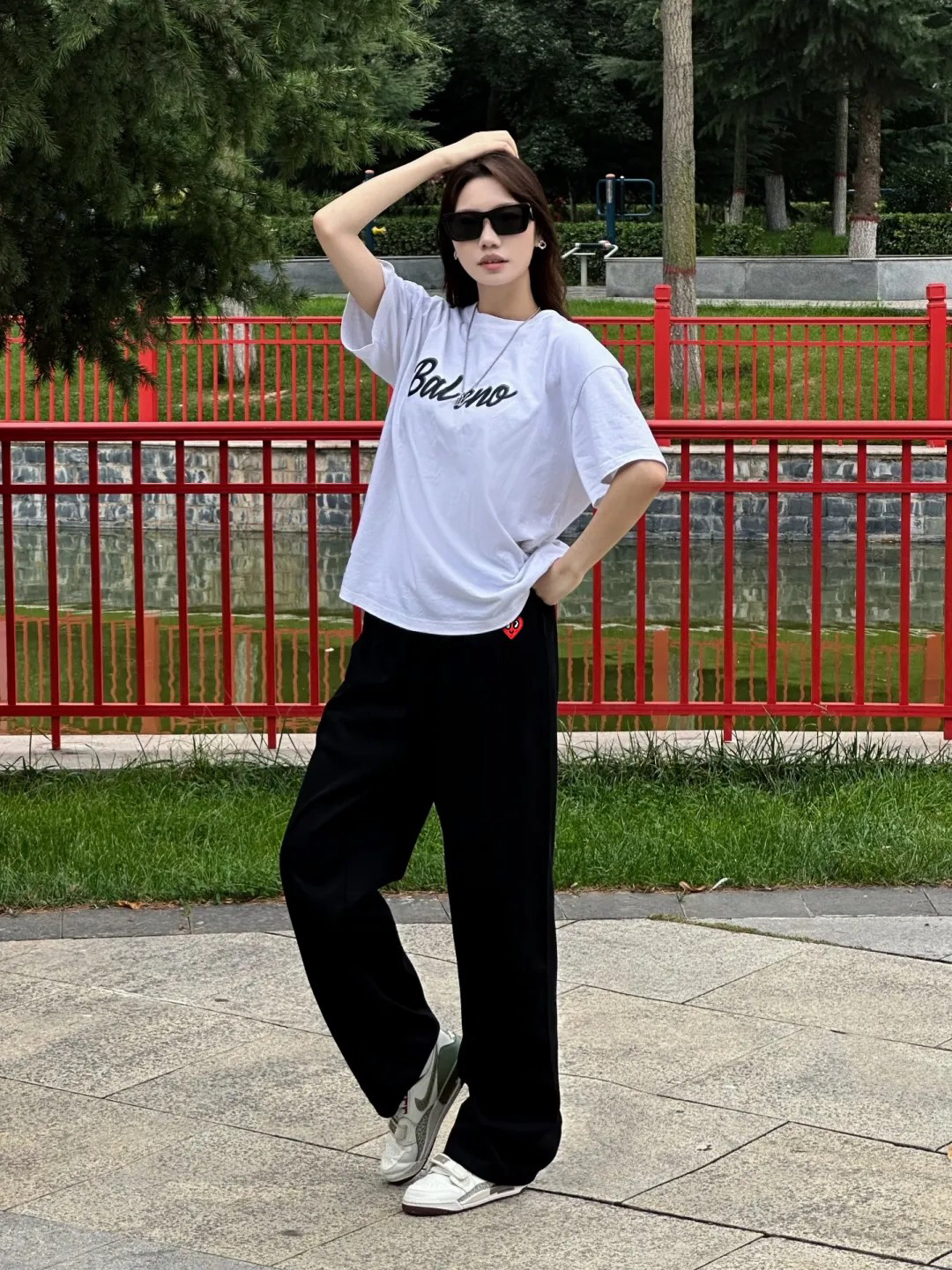 今天穿这条黑色条纹休闲裤 条纹设计拉伸腿长,视觉上就很显高 搭配长袖T恤,秋季穿再合适不过了 整体的版型好不挑腿型👌