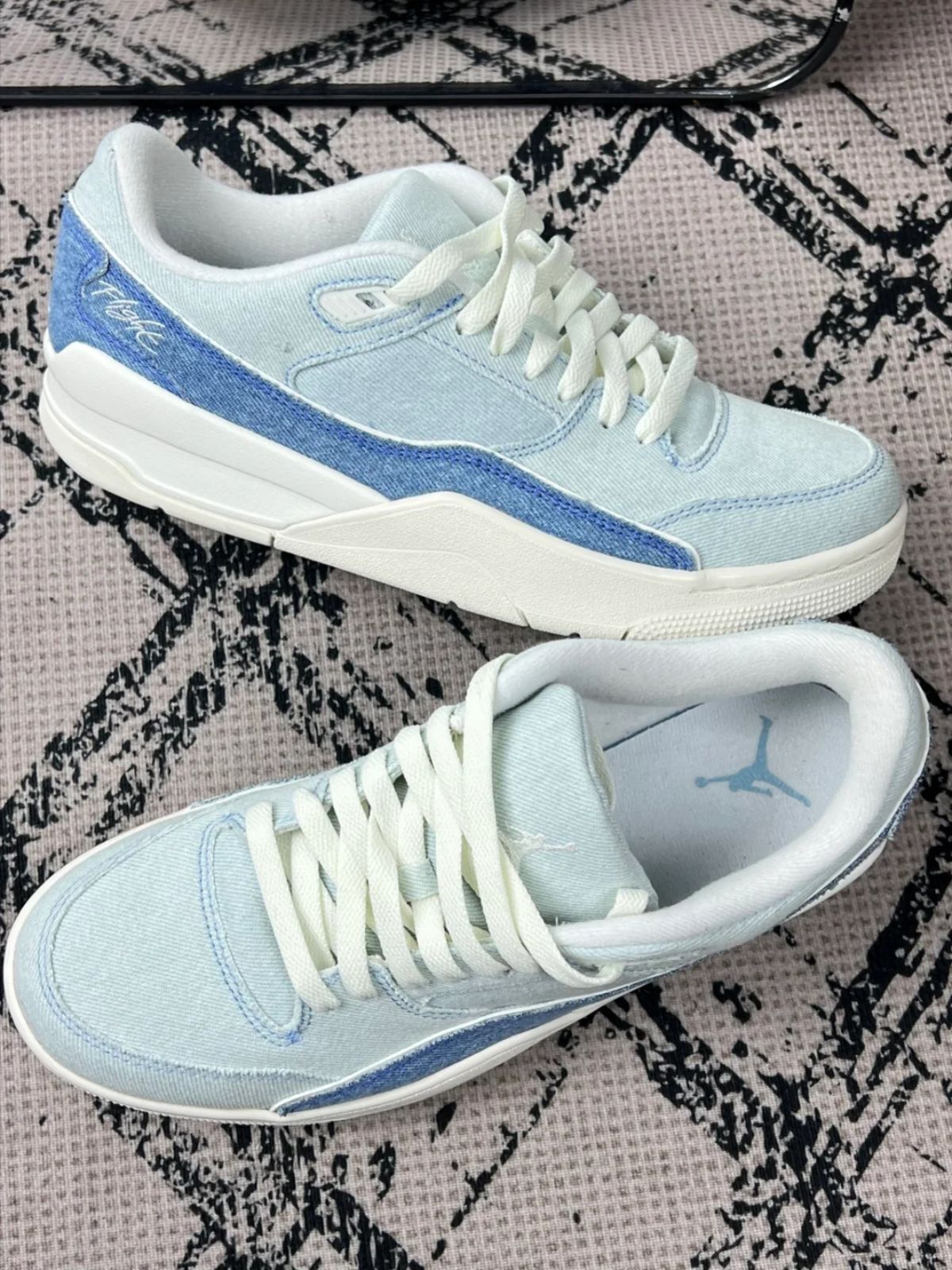 新入了这双AJ浅蓝牛仔风的鞋👟 实物和图差不多,浅蓝牛仔布拼接,配色清爽,看着挺有范儿。 上脚第一感受,鞋型对宽脚友好,不挤脚,走路时鞋底也算有回弹,日常通勤、逛街穿,舒适度能打个8分。 但缺点也得说,牛仔布材质虽特别,却不太耐脏,稍微沾点灰、溅到水,痕迹就明显,打理起来费点劲。而且浅色鞋底,穿几次就容易泛黄,强迫症可能会膈应。 整体呢,喜欢这种牛仔风格、能接受小缺点的,入了不亏;追求...