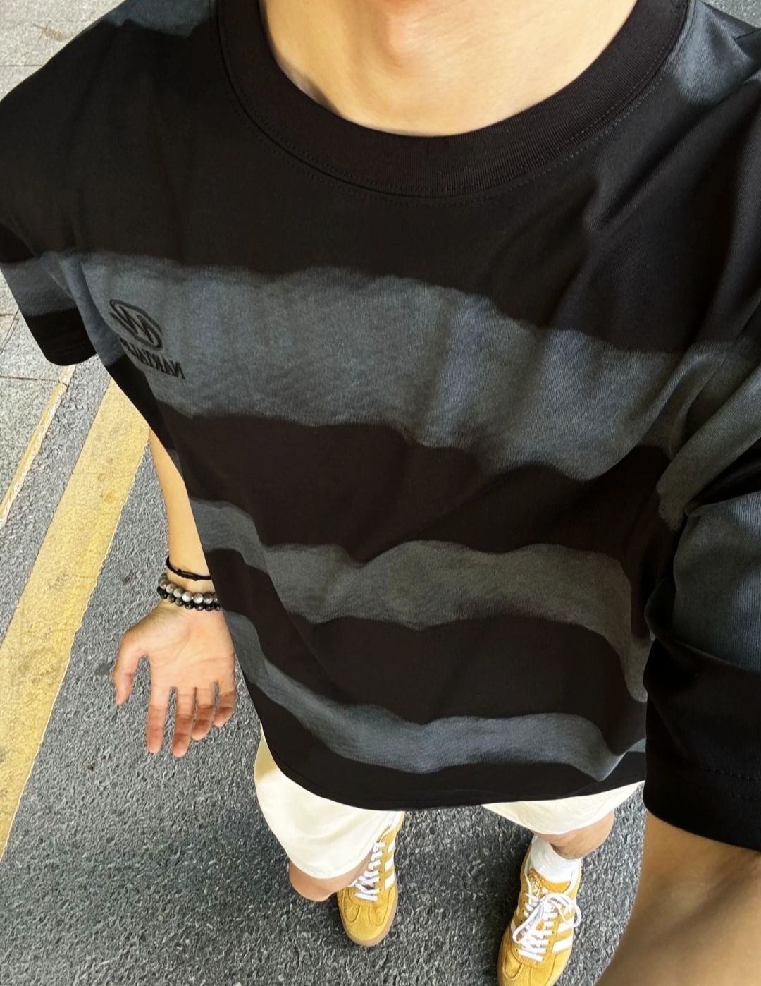 这款T恤采用简约而不失时尚的设计,黑灰相间的条纹图案,带来低调而不单调的视觉效果。无论是日常休闲还是户外活动,都能轻松驾驭。精选优质面料,触感柔软,穿着舒适透气,让你时刻保持清爽自在。宽松的版型设计,不仅适合各种身材,还能有效遮掩身材小瑕疵,让你自信满满。 搭配一条简单的迷彩裤或运动裤,即可轻松打造休闲潮流风格。无论是居家还是外出,这款T恤都是你不二的选择。赶快入手,让你的衣橱焕发新生!